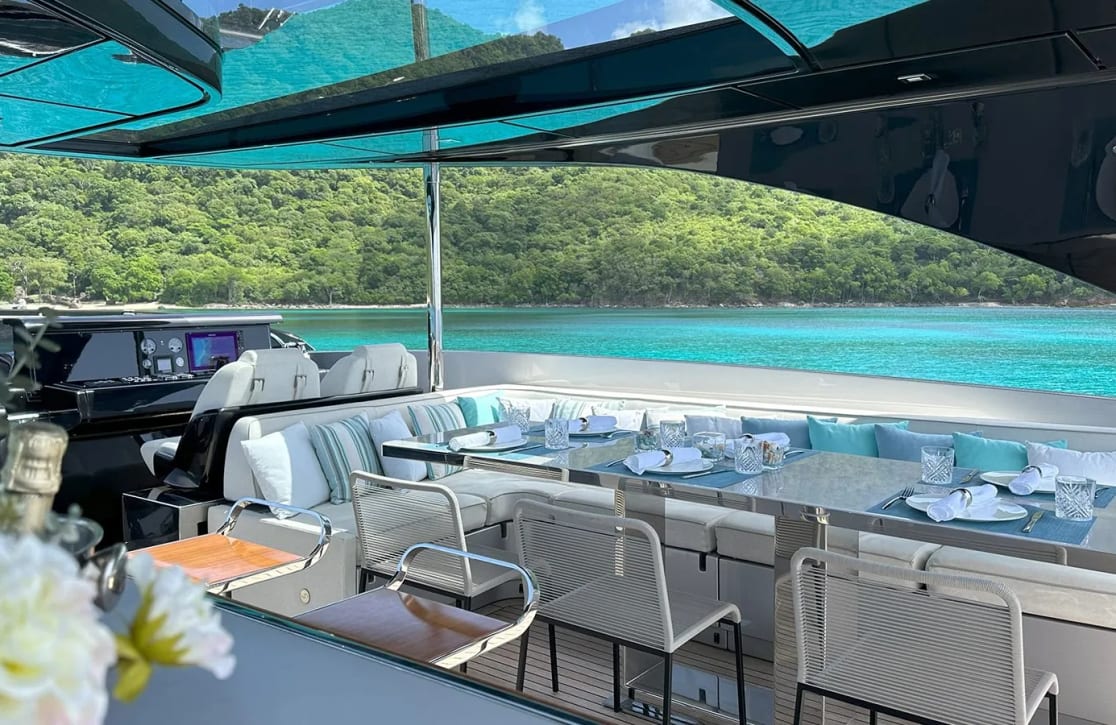 Life aboard ‘NOI’ is a symphony of comfort and style, where every detail is thoughtfully curated. Unwind in the sun-drenched embrace of the top deck, or find respite in the shaded foredeck seating as the world drifts by. With seamless Wi-Fi connectivity and air-conditioned interiors, staying connected and refreshed is effortless. As the sun sets, gather at the exterior bar for crafted cocktails, or indulge in a culinary delight prepared on the BBQ. The yacht’s swimming platform invites you to dip into crystal-clear waters, enhancing every moment of your maritime escape.