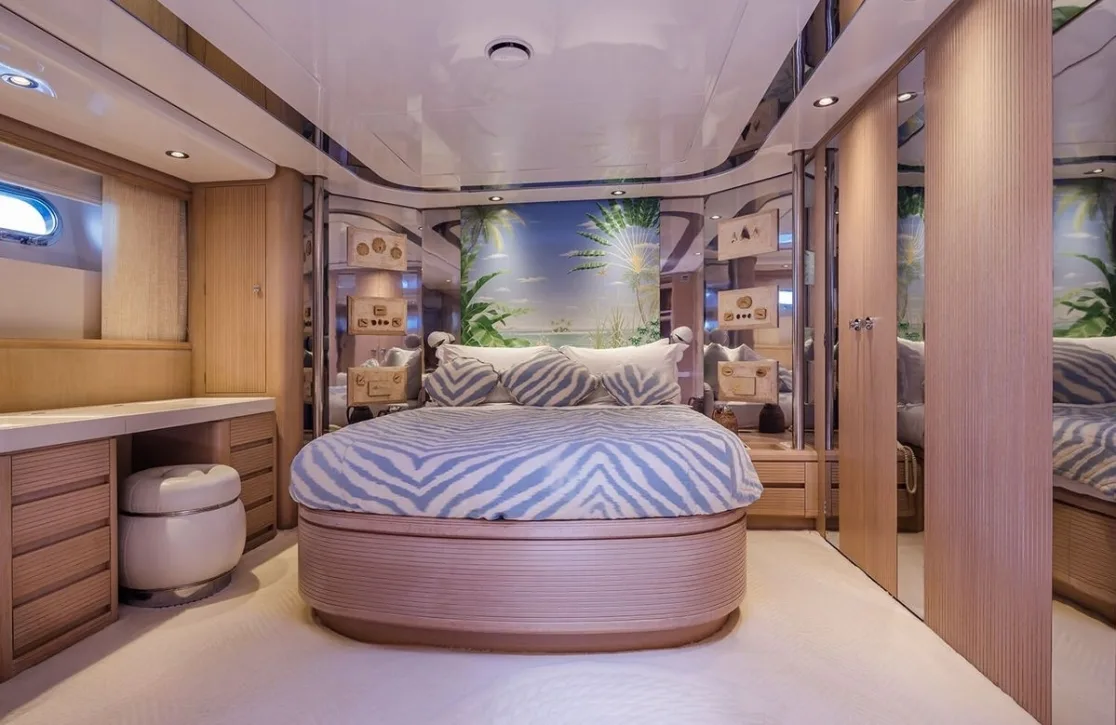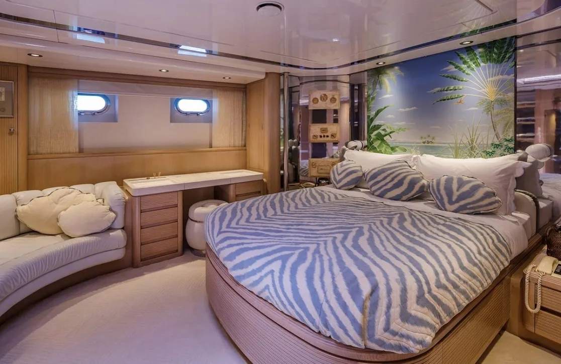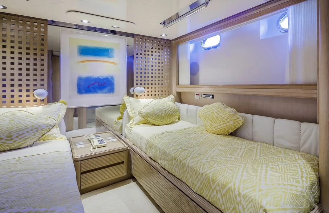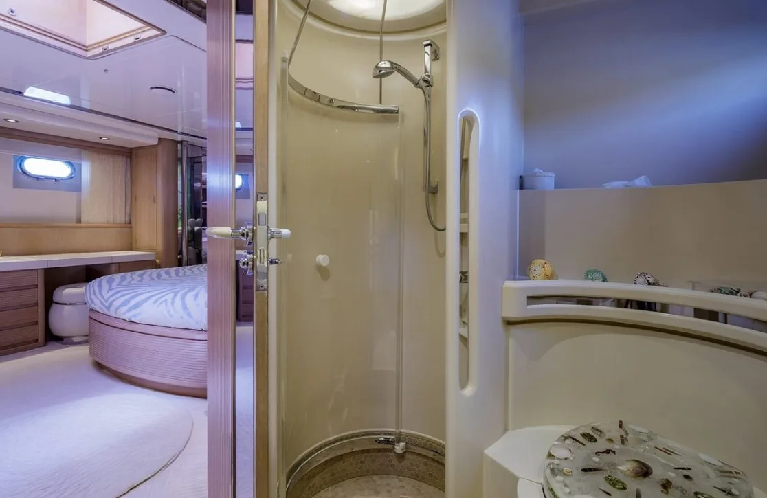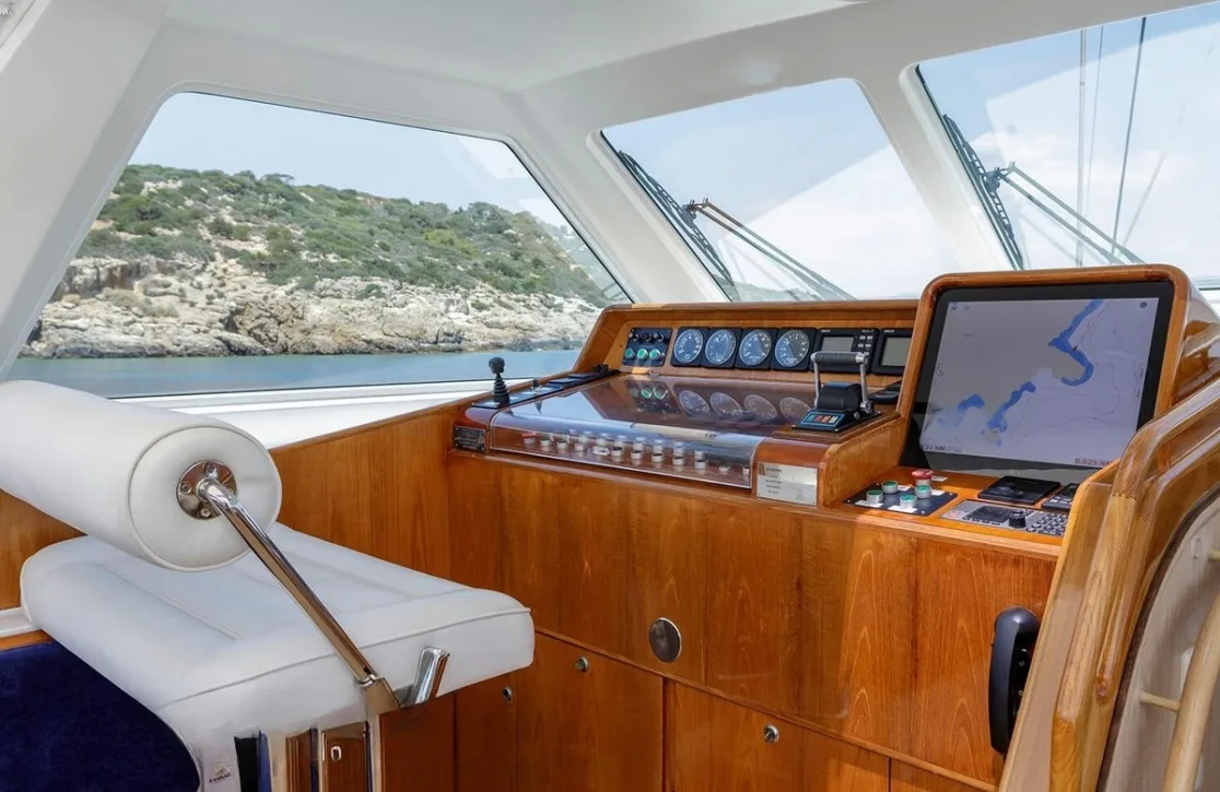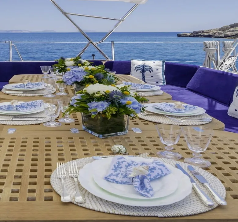 Nommo’s interior spaces, designed by Terence Disdale, envelop you in a world of understated elegance, where British sophistication meets cutting-edge comfort. As you unwind in the main salon, the gentle hum of the ocean serves as the perfect backdrop to your conversations. The yacht’s air conditioning ensures that each room offers a sanctuary from the sun, while high-speed Wi-Fi keeps you connected with the world beyond the horizon. Whether enjoying an al fresco dinner under the stars or a quiet moment on the sun-drenched deck, every aspect of Nommo is designed for your ultimate relaxation and enjoyment.