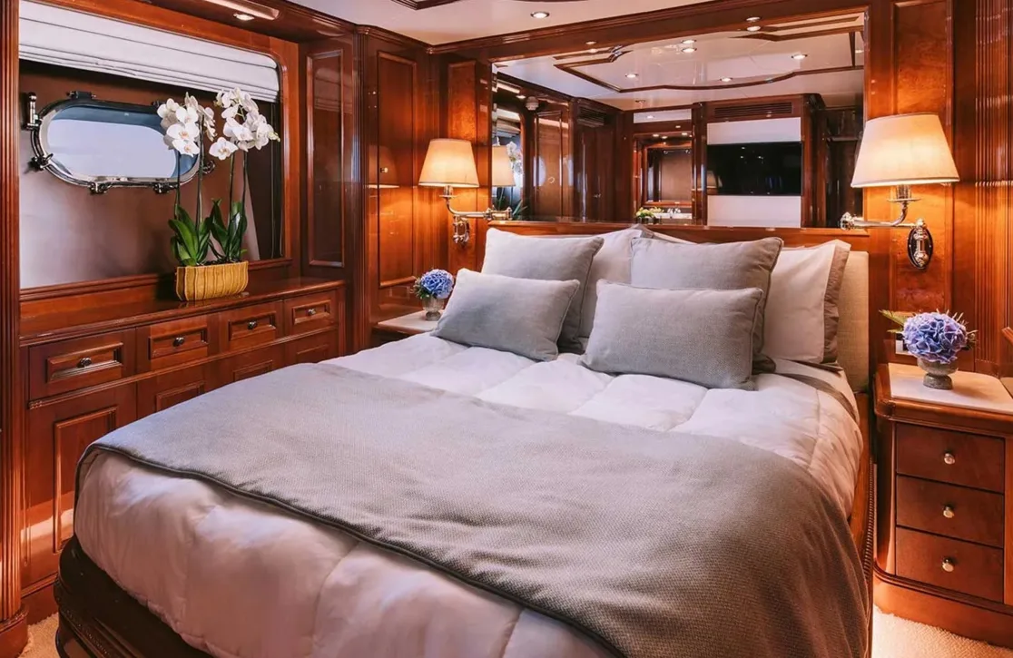 Accommodations on Oak are nothing short of sublime, with space for 11 guests across five elegantly appointed cabins. Wake up to the gentle sway of the ocean in the master suite, or one of the two double or two twin cabins, each designed to offer the utmost in privacy and comfort. The warm, inviting decor by Zuretti enhances the feeling of a personal sanctuary, making each morning aboard a renewal of spirit and each night a peaceful retreat.