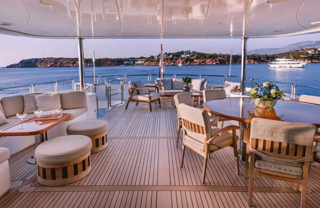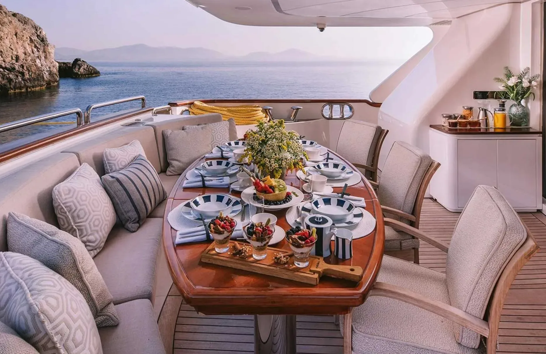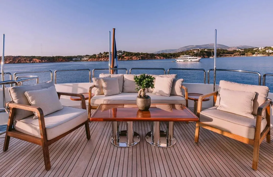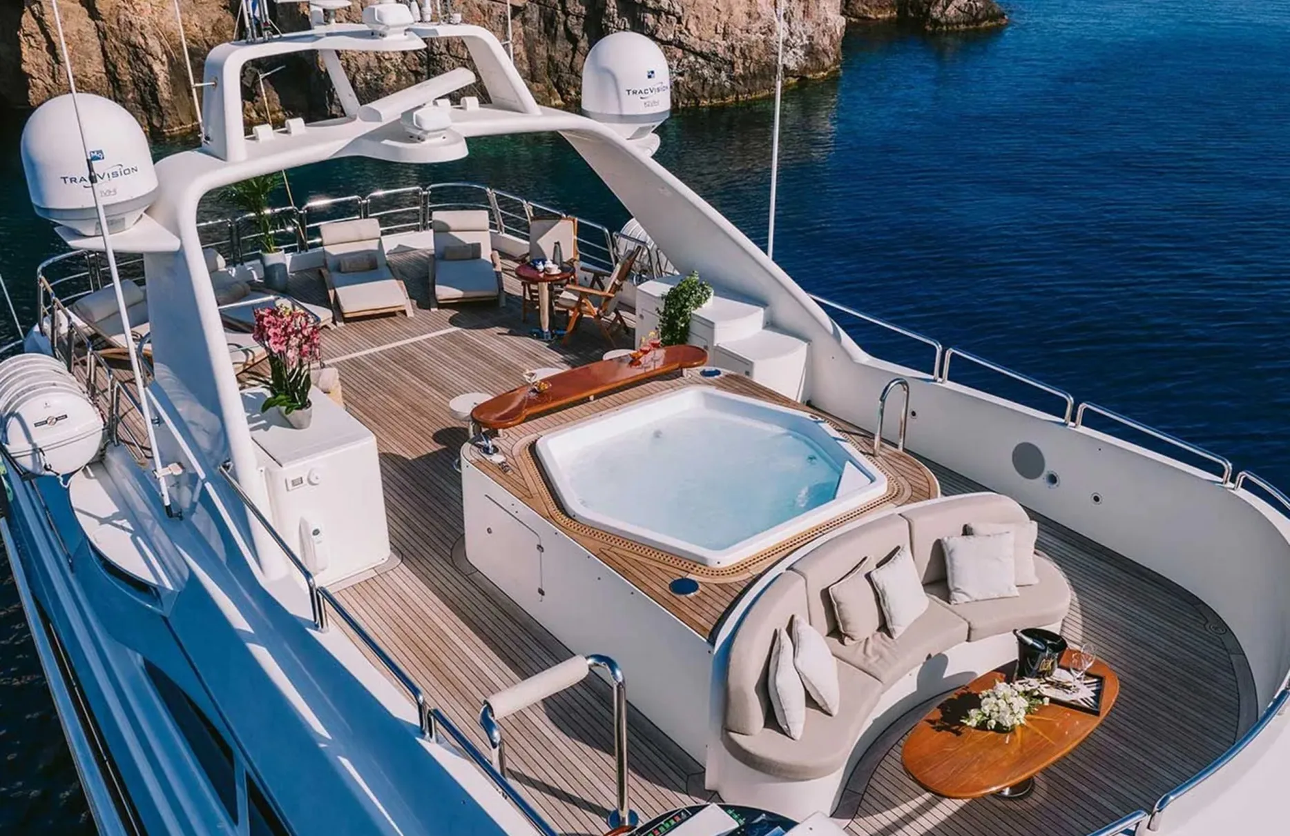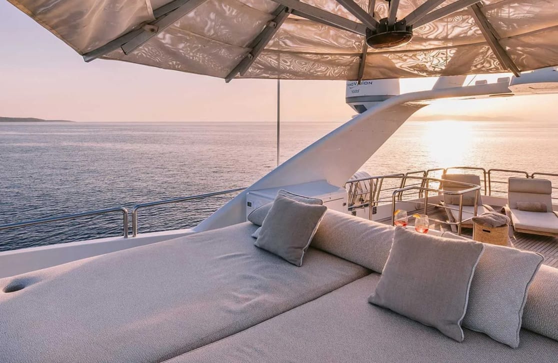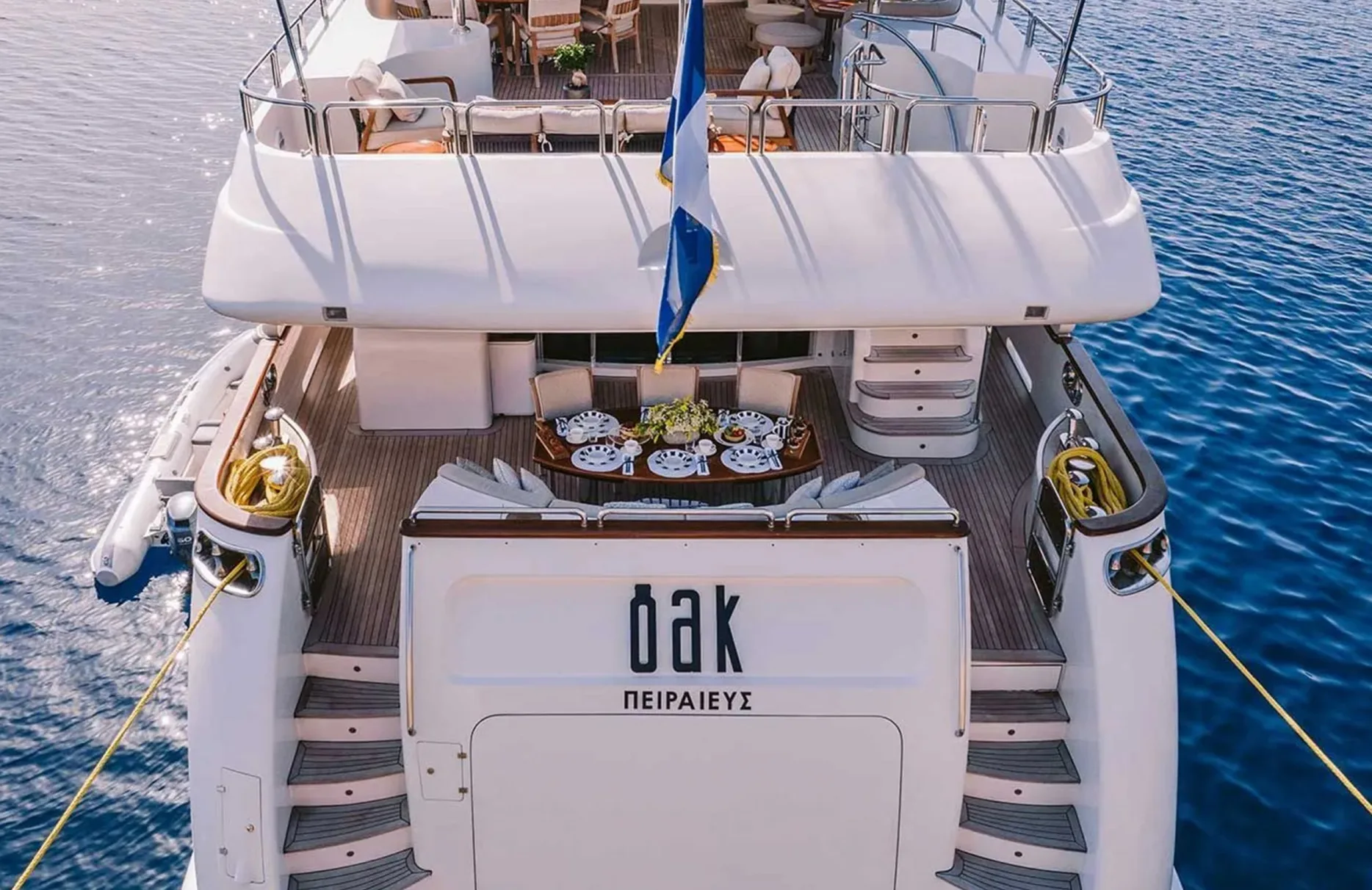 Aboard Oak, every corner invites relaxation and social connection. The sun deck, with its sunpads and inviting deck jacuzzi, is perfect for soaking in the sun or stargazing at night. The beach club offers a serene escape for quiet reflection or lively gatherings, while the foredeck seating provides a front-row seat to the ocean’s splendor. As you move through the yacht, the gentle hum of state-of-the-art air conditioning keeps the climate perfectly tempered, ensuring comfort whether you’re enjoying a cocktail by the exterior bar or unwinding with a book in the Portuguese bridge area.