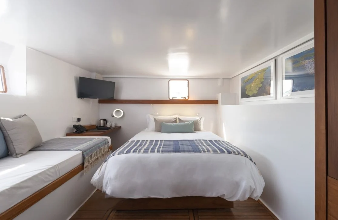 Accommodating up to 22 guests in ten beautifully appointed cabins, Ocean Diamond offers a personal retreat for everyone onboard. The six double cabins provide an intimate and cozy space for couples, while the twin cabins offer flexibility for families or friends. Each morning, you’re greeted by the gentle sway of the sea and the promise of a day filled with new discoveries. The thoughtful design of the cabins ensures that privacy and comfort are paramount, allowing you to rest and rejuvenate in style as the yacht carries you to your next destination.