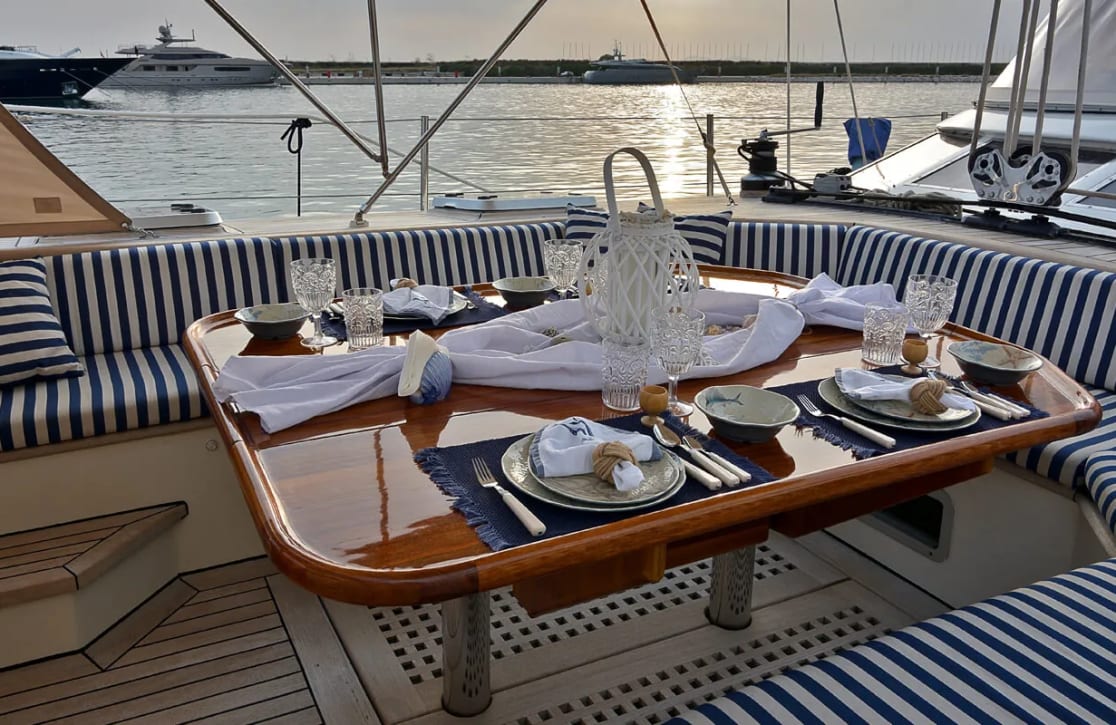 Onboard Ocean Drive, the ambiance is a seamless blend of sophistication and comfort. The inviting spaces are equipped with features that cater to every need, whether it’s maintaining your fitness routine in the well-equipped gym or enjoying the spectacle of underwater lights that transform the sea into a captivating display after dark. With Wi-Fi connectivity and air conditioning throughout, every moment aboard this yacht is designed to provide an unmatched sense of well-being and ease.