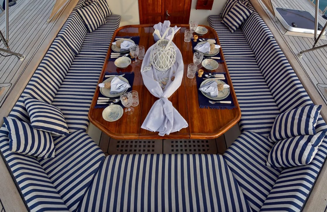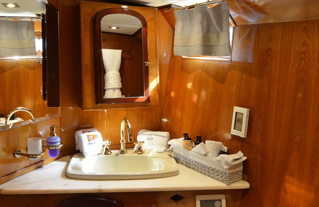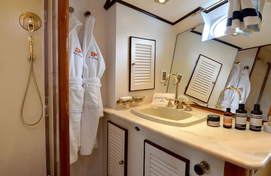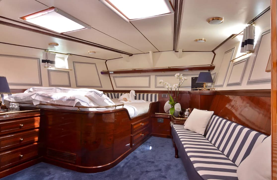 Ocean Drive offers a sanctuary of comfort for up to eight guests across four beautifully appointed cabins. Each morning, wake up to the gentle sway of the sea in the master suite, which features a king-sized bed, or in one of the double cabins with queen beds. The twin cabin offers an equally serene experience with its twin singles. The thoughtful design and plush furnishings ensure that every guest is enveloped in warmth and tranquility, with a dedicated crew of six on hand to enhance the experience.