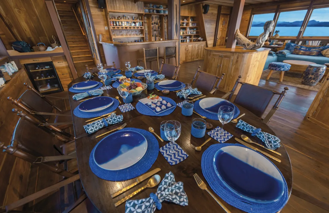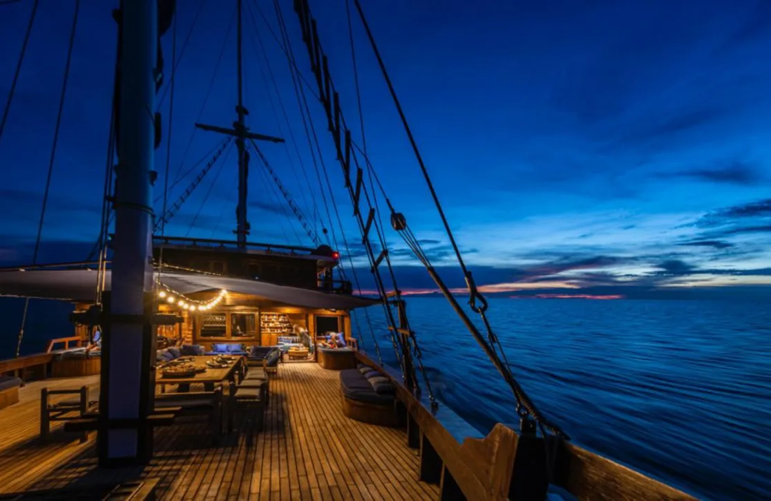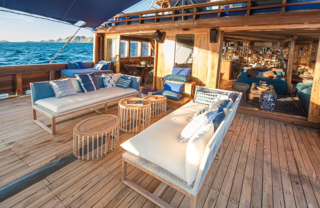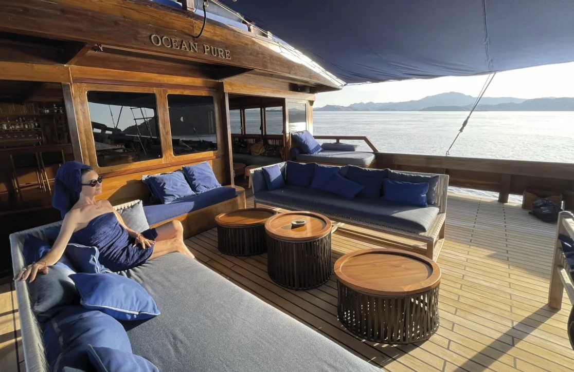 Accommodating up to 12 guests, Ocean Pure 1 offers a haven of rest and luxury with six beautifully appointed cabins. Each morning, awaken to the gentle sway of the sea in a master suite or a VIP cabin, where sumptuous bedding and elegant decor create a restful ambiance. The versatile cabins can be configured as twins or doubles, providing flexibility and comfort tailored to your group’s needs. As the sun rises, soak in the panoramic views from your private retreat, setting the tone for another day of discovery and relaxation.