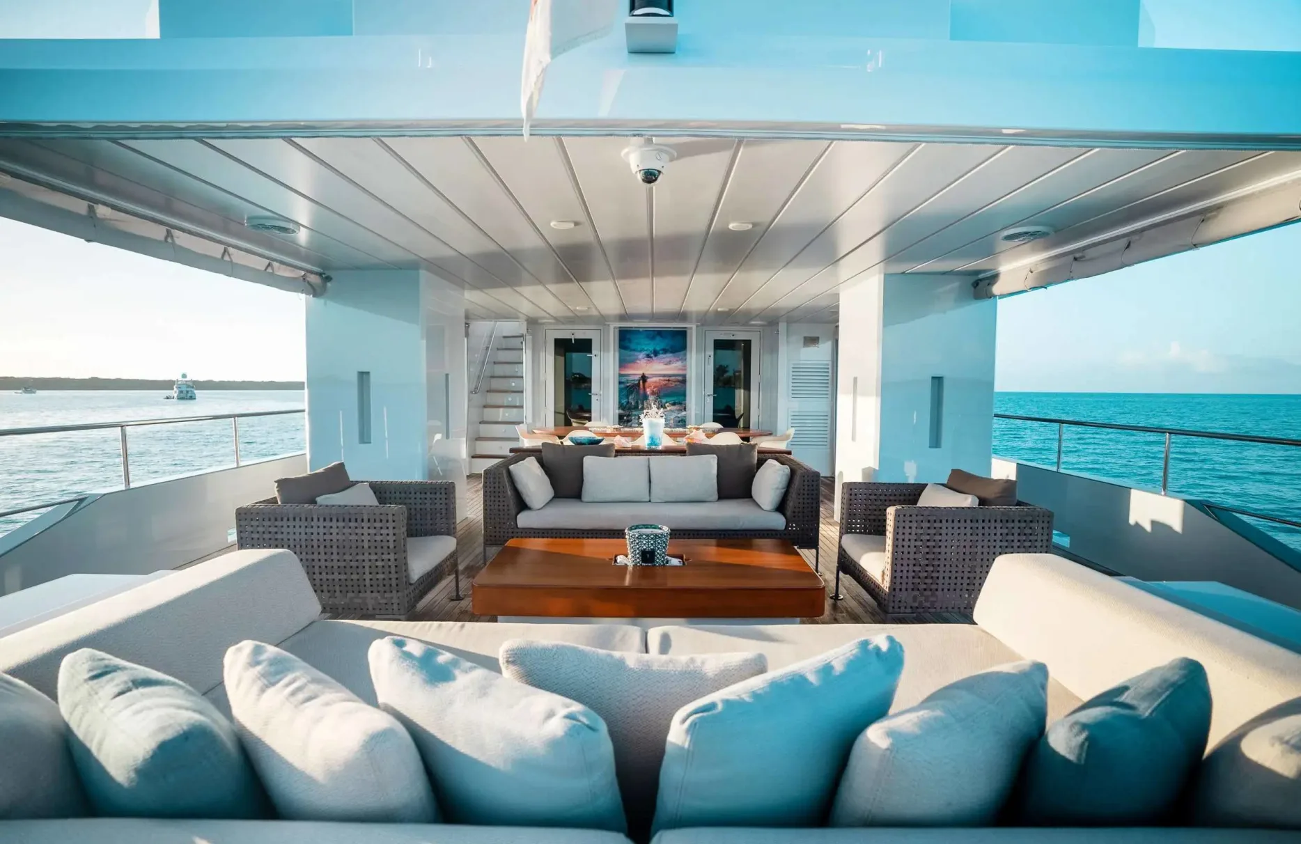 Aboard ‘Only Now,’ every detail is crafted for your enjoyment and relaxation. Begin your day with a workout in the state-of-the-art gym, or unwind in the jacuzzi with a glass of champagne as the sun sets over the horizon. The thoughtfully designed spaces, with seamless Wi-Fi connectivity and a refreshingly cool atmosphere maintained by the air conditioning, ensure comfort in every corner. Whether lounging on the sunpads or engaging in lively conversations in the foredeck seating area, the ambiance is effortlessly inviting, creating a backdrop for unforgettable moments.