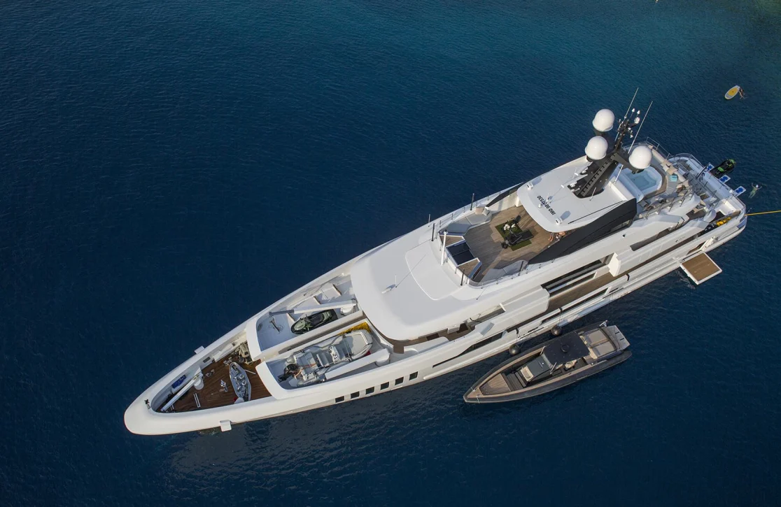Embark on a journey aboard the majestic Ouranos, a 50-meter masterpiece crafted by Admiral Yachts, where timeless design meets the innovative vision of Gian Marco Companino. This floating sanctuary invites you to traverse the Mediterranean’s azure waters, seamlessly blending exploration and relaxation. Whether you’re sipping a refreshing cocktail on the sun-drenched deck or venturing ashore to discover hidden gems along the coast, Ouranos is your gateway to an extraordinary maritime experience. With the capacity to host up to 12 guests across six elegantly appointed cabins, every moment aboard Ouranos is tailored to your desires, promising both comfort and adventure.