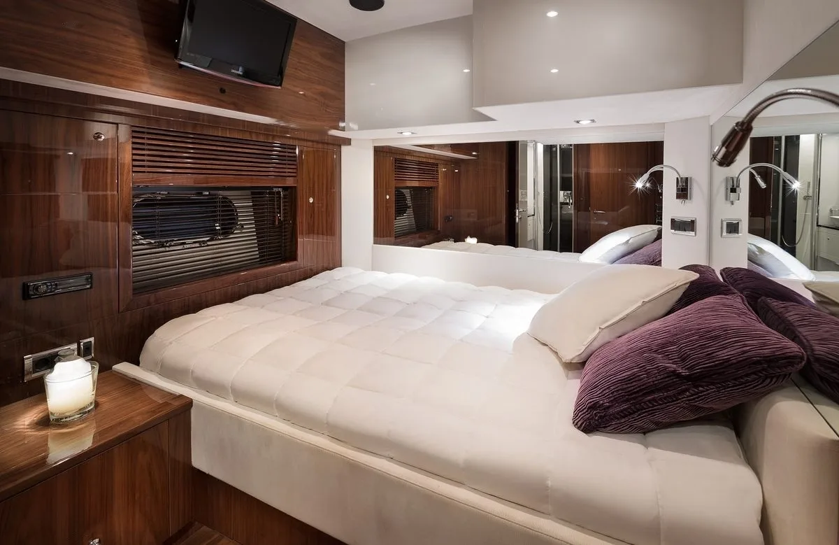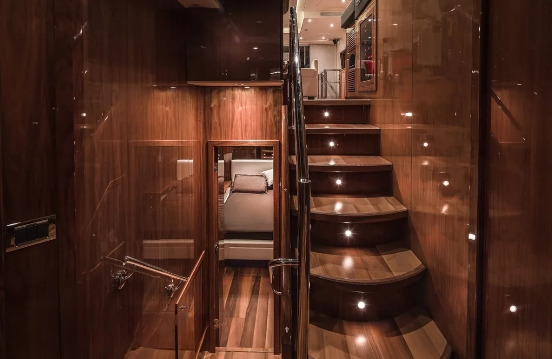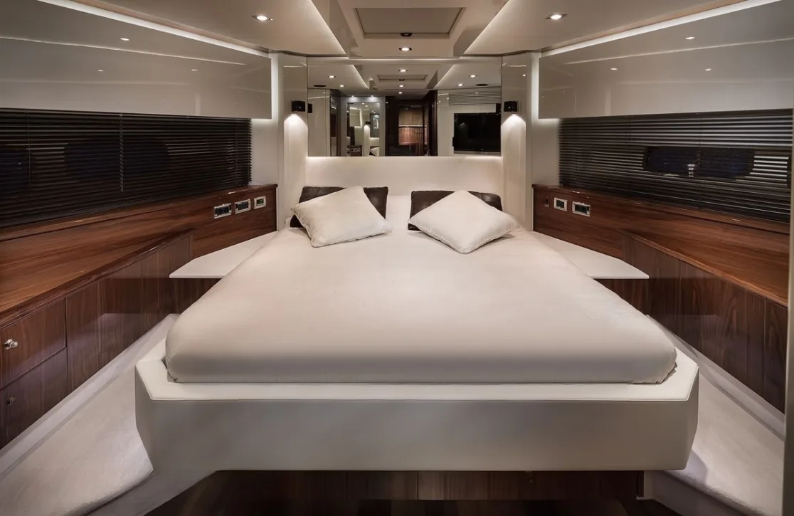 Step into a world where every detail is designed for your pleasure. Palumba features sun-drenched decks with comfortable sunpads, perfect for soaking in the warmth and breathtaking vistas. An outdoor shower offers a refreshing reprieve after a day under the sun, while the air-conditioned interiors provide a cool, sophisticated retreat. Seamlessly connected with Wi-Fi throughout, you can share your adventures or unwind on the hydraulic swim platform as the horizon glows at dusk.