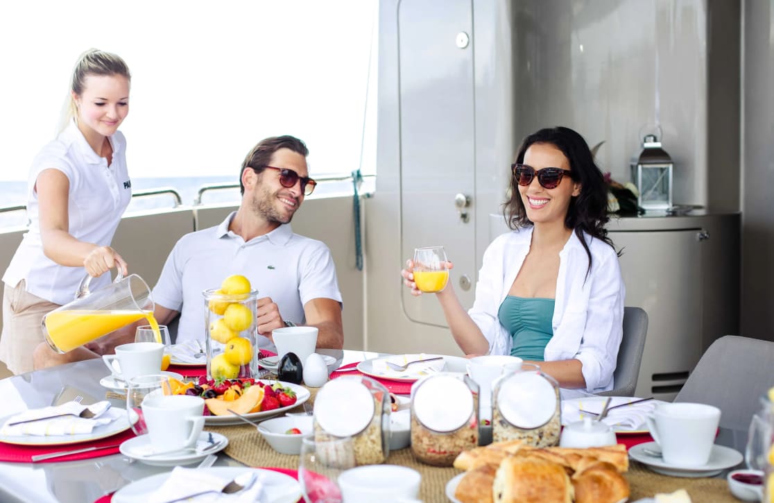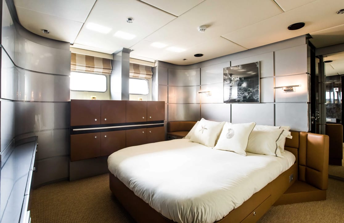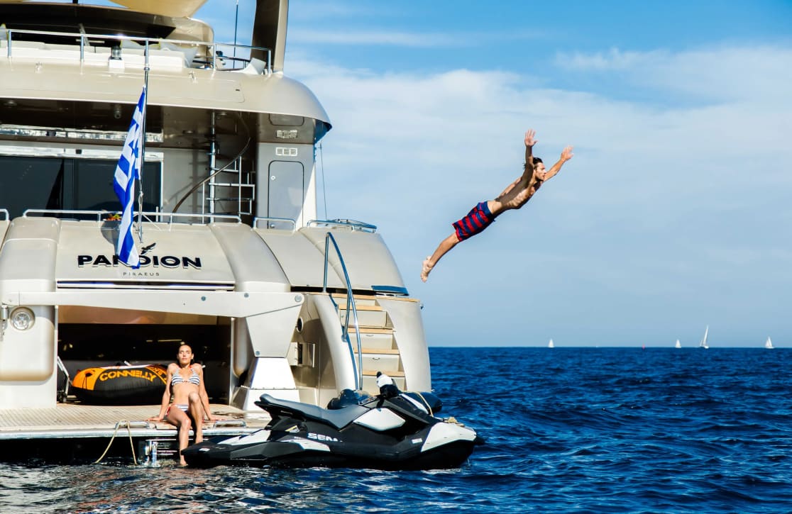 Accommodations aboard Pandion are designed for up to 10 guests within four exquisite cabins. The master suite, two doubles, and a twin cabin with additional pullman beds ensure a restful night’s sleep. The thoughtful layout invites you to wake up refreshed to the gentle sway of the sea, ready to greet the day. Each cabin is a sanctuary, offering a blend of intimacy and sophistication, promising a restful retreat after a day of adventure.
