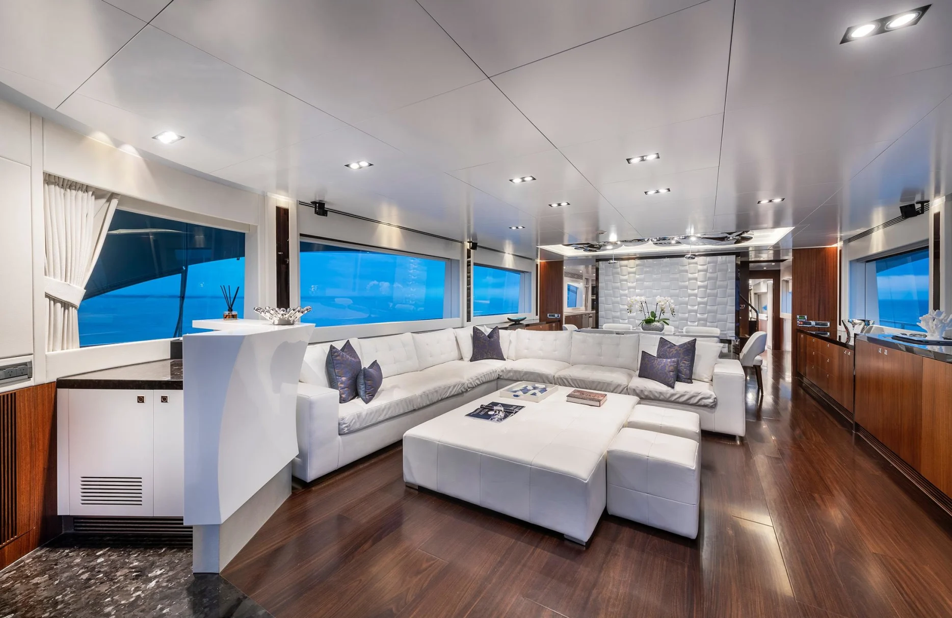 Embark on an unforgettable journey aboard Paradise, a refined 33-meter motor yacht crafted by the renowned Horizon shipyard. As you step aboard, you’re greeted by an elegant design that seamlessly blends comfort and style, inviting you to explore both the high seas and serene coastal locales. With interiors thoughtfully designed by Espinosa Yacht Design, Paradise offers a harmonious blend of sophistication and relaxation, perfect for those seeking a week of blissful escape. Whether cruising at a leisurely 10 knots or reaching speeds of up to 21 knots, this yacht promises smooth sailing with its advanced stabilization system, ensuring your voyage is as comfortable as it is exciting.