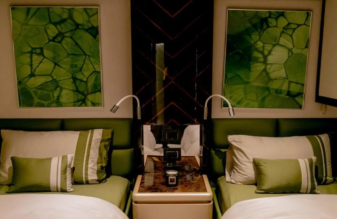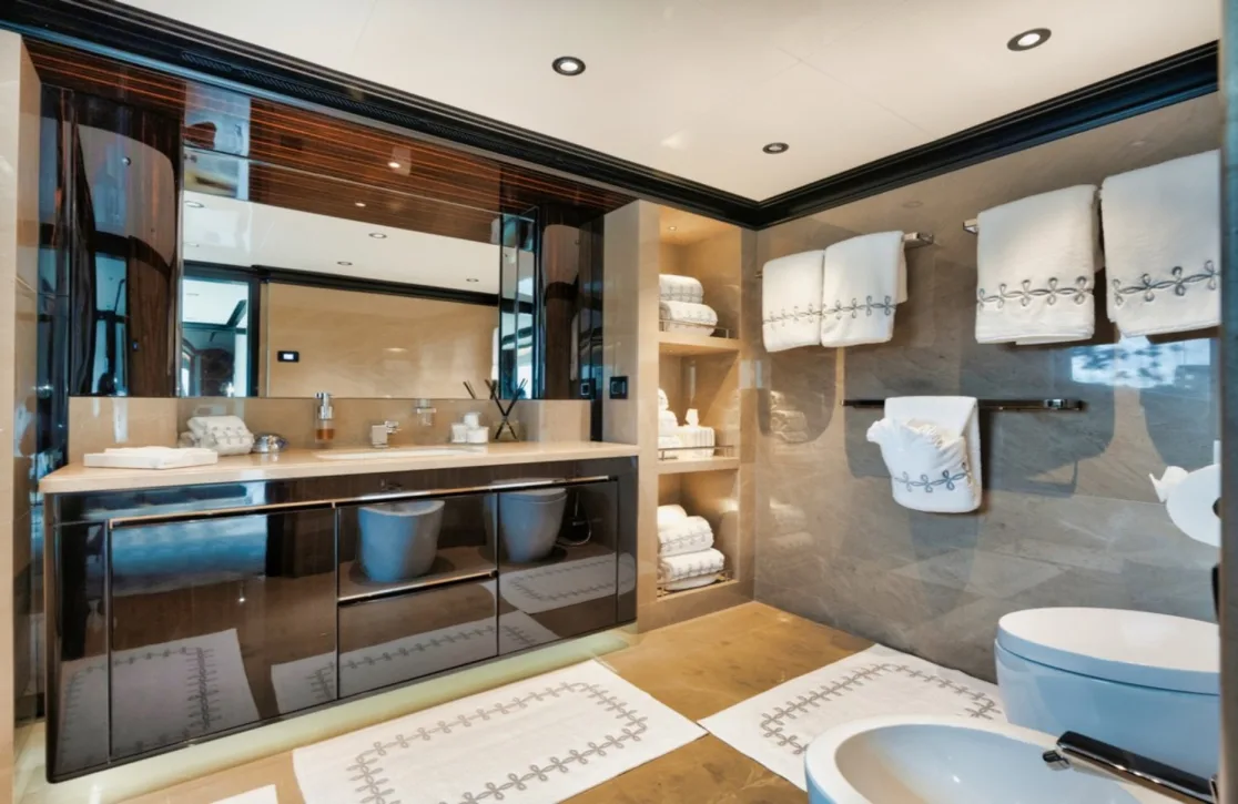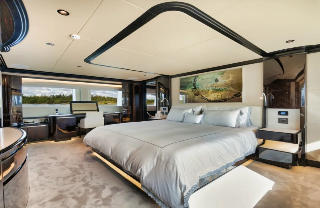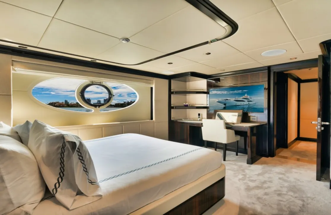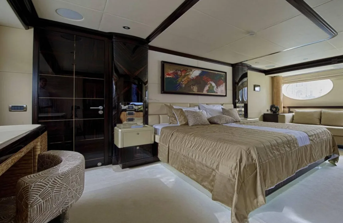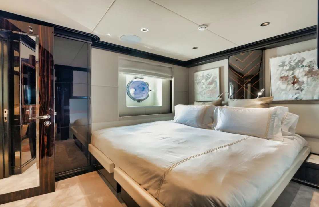 As evening falls, retreat to one of the five exquisite suites designed for repose and privacy, accommodating up to ten guests. Each room is a haven of tranquility, where the gentle lull of the sea promises restful nights. The morning light dances through expansive windows, painting your suite with sunlit warmth. Here, comfort is woven seamlessly with elegance, ensuring that each guest experiences the epitome of hospitality. The subtle hum of the yacht at sea becomes a soothing backdrop as you awaken to another day of exploration.