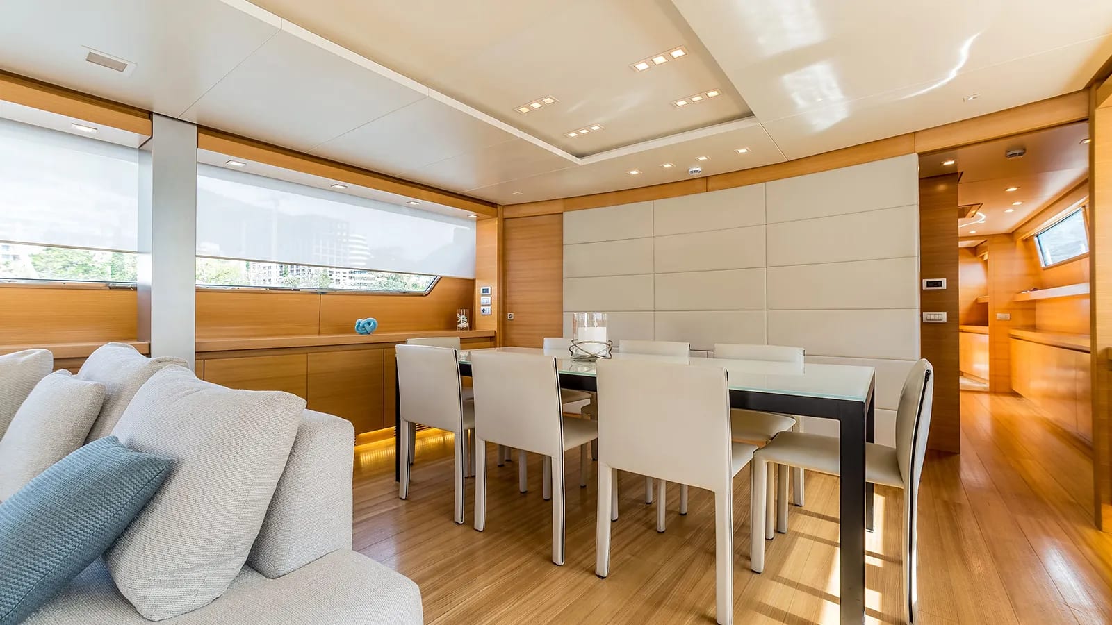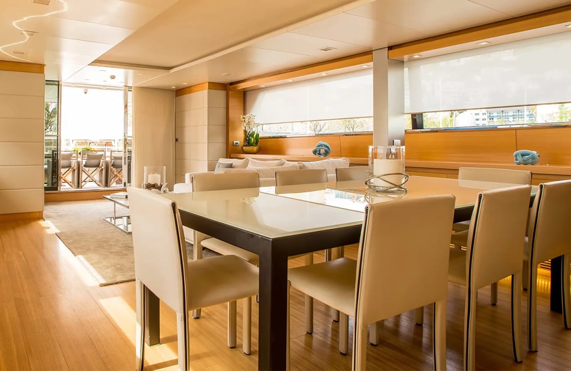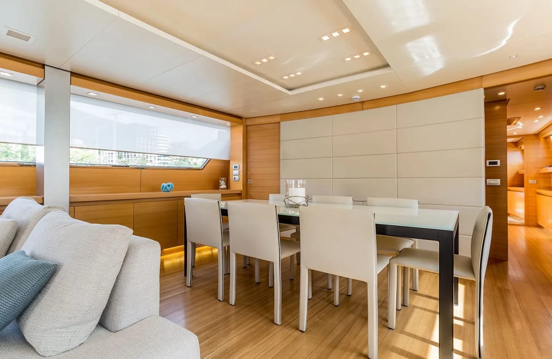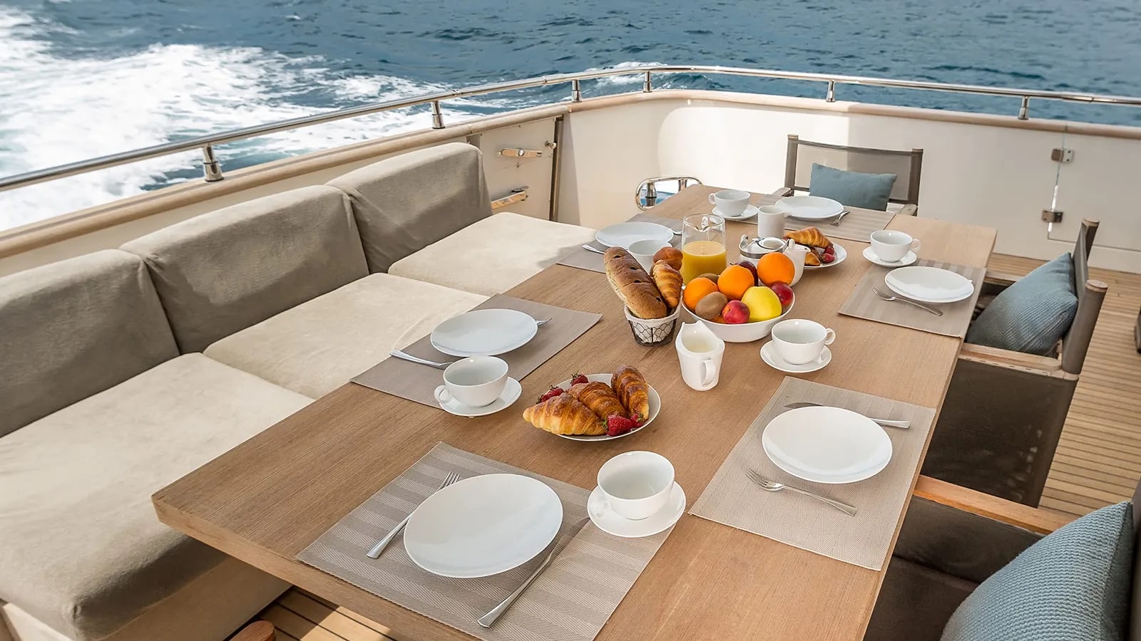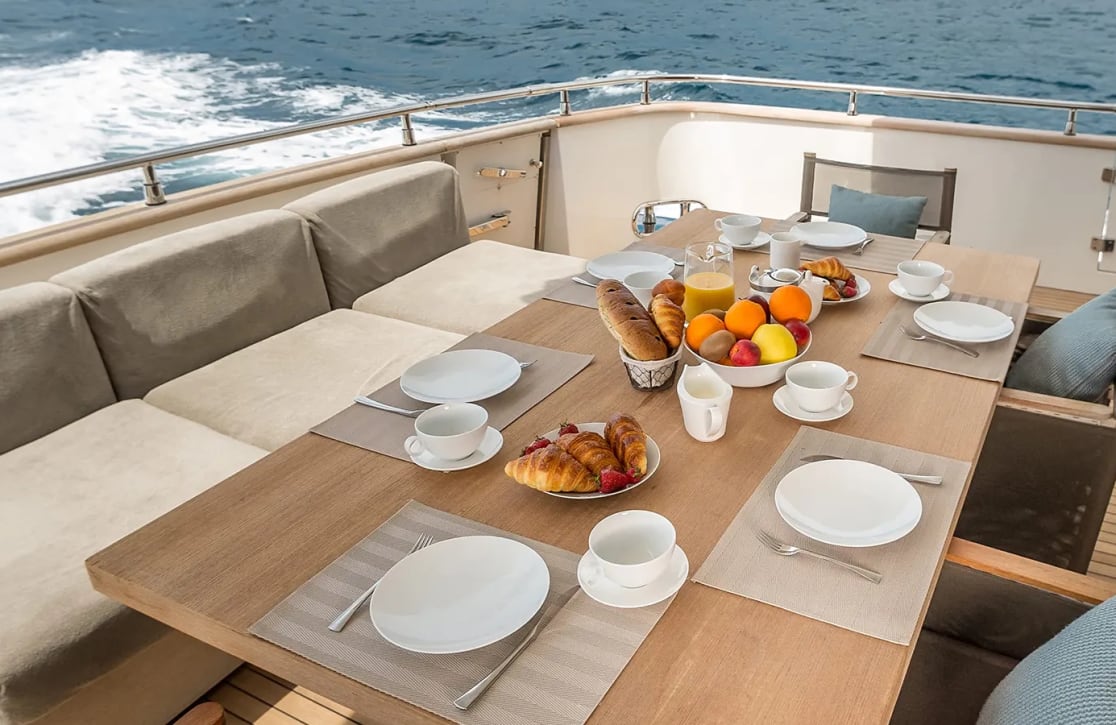 Aboard Pertula, each day unfolds with a promise of tranquility and excitement. Begin your morning with a workout using the state-of-the-art gym equipment, before enjoying breakfast alfresco on the sun-drenched foredeck seating. As the day warms, retreat to the air-conditioned comfort of the interior, where Wi-Fi keeps you connected to the world at your leisure. As evening descends, the ambient glow of underwater lights transforms the ocean into a luminous spectacle, setting the perfect backdrop for an elegant dinner under the stars.
