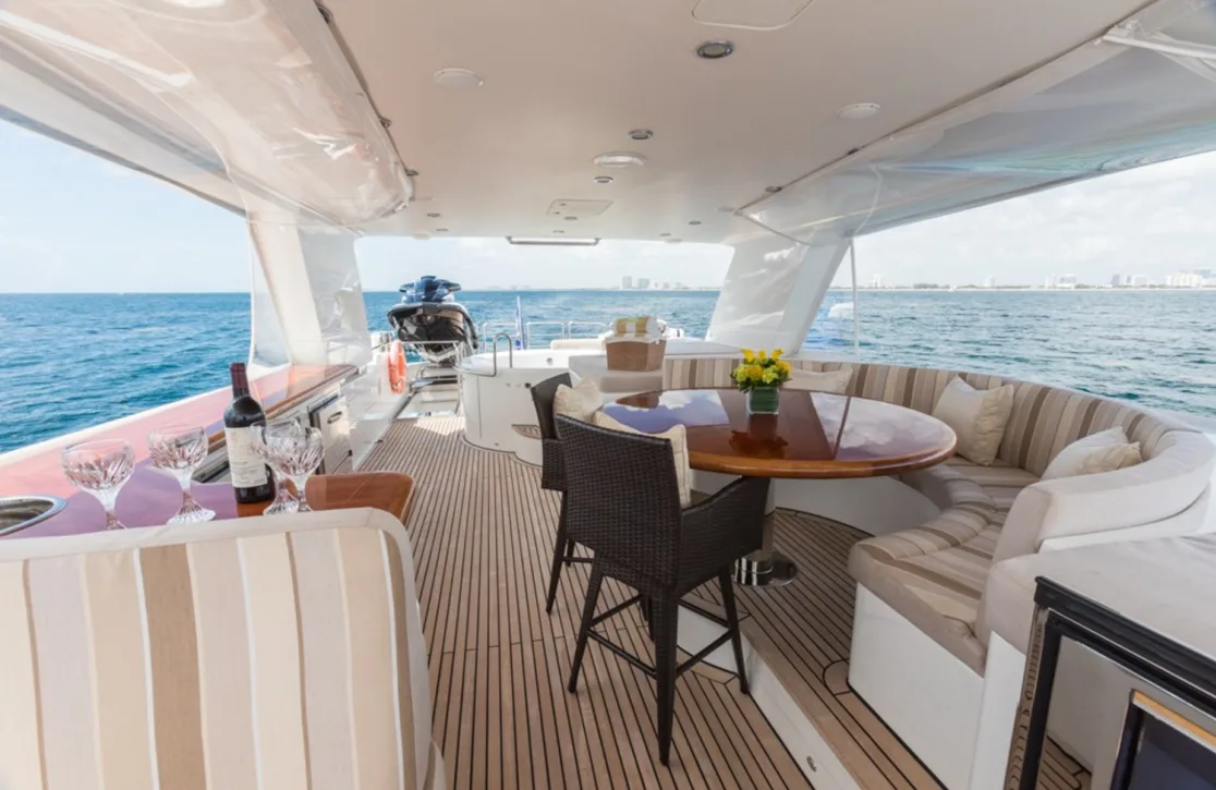 Step aboard Picnic and find yourself enveloped in an atmosphere of refined comfort and thoughtful design. The deck jacuzzi beckons for afternoons spent basking in the sun, a refreshing retreat with panoramic views of the open sea. As the sun sets, the atmosphere transforms into a serene haven where you can enjoy an evening cocktail, soundtracked by the gentle lapping of the waves. Air conditioning throughout offers a respite from the tropical warmth, ensuring every moment is spent in comfort. Whether you are lounging on sunpads or enjoying music from the iPod docking station, life aboard Picnic is a symphony of leisure and sophistication.