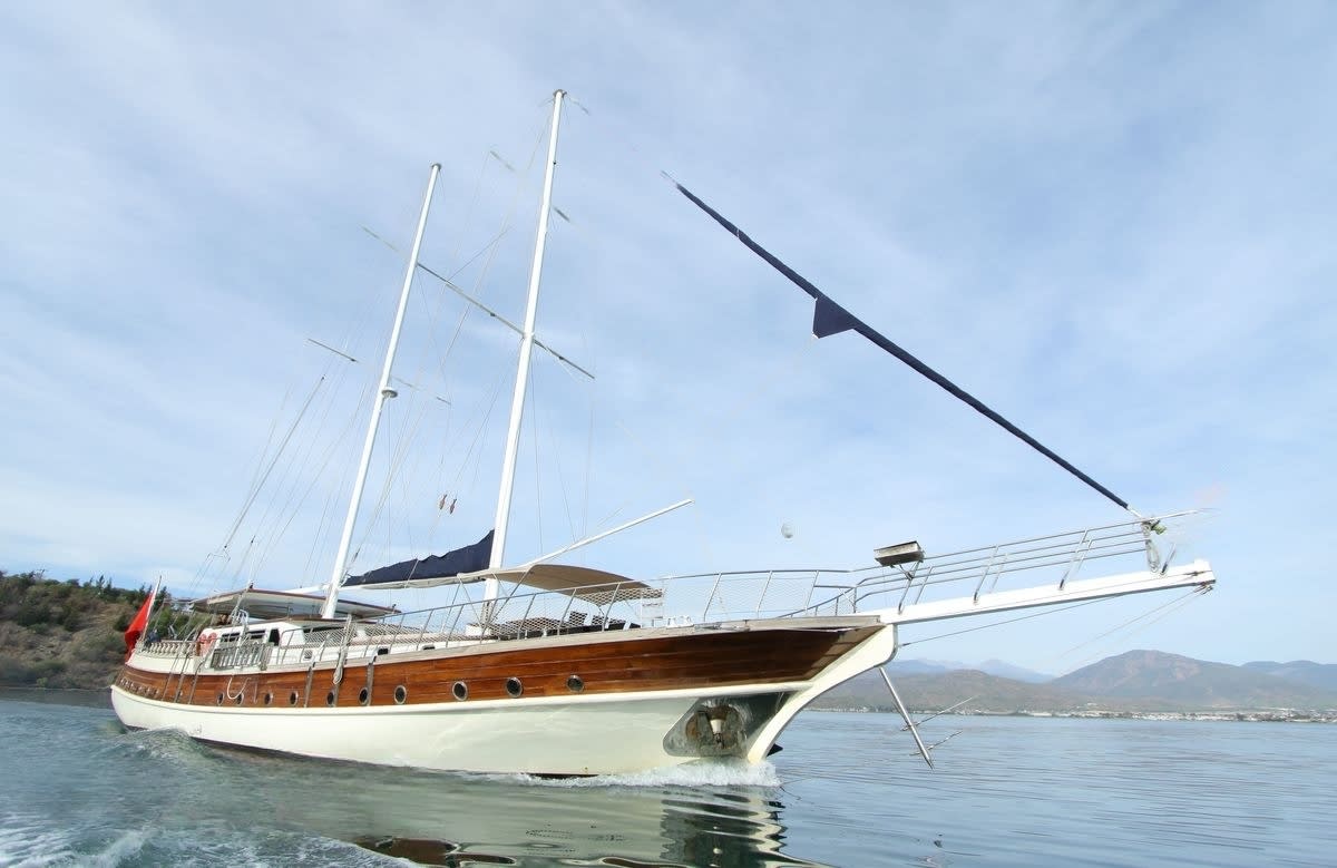 Queen Lila invites you to embark on an unforgettable Mediterranean journey, where the timeless elegance of a traditional Turkish gulet meets the comforts of modern seafaring. Custom built in 2004 and rejuvenated in 2016, this 98-foot vessel effortlessly combines old-world charm with contemporary flair. As you traverse the tranquil waters and rugged coastlines of Turkey, each day unfolds with opportunities for both relaxation and adventure, whether basking in the sun on her expansive deck or exploring quaint seaside villages. With a crew of five attending to every detail, your experience aboard Queen Lila promises to be as seamless as the gentle Mediterranean breeze.