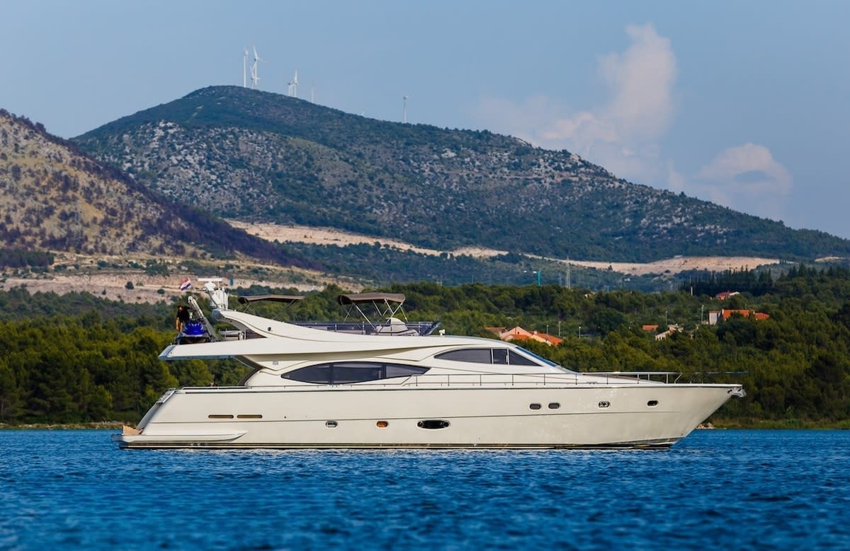 Embark on an enchanting voyage aboard the Quo Vadis I, a masterpiece crafted by Ferretti Yachts. This vessel invites you to explore the Mediterranean’s azure waters with sophistication and ease. The Quo Vadis I offers an exceptional experience, combining the timeless allure of a classic motor yacht with the comforts of modern design. With a length that ensures both spaciousness and intimacy, she is the perfect setting for a week of discovery and relaxation. As you sail through the sun-drenched coasts of Croatia and Montenegro, the yacht becomes your personal sanctuary, offering panoramic views and a seamless blend of indoor and outdoor living spaces.
