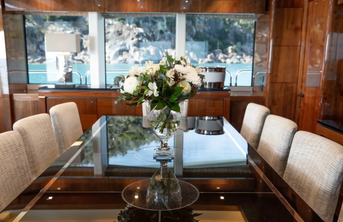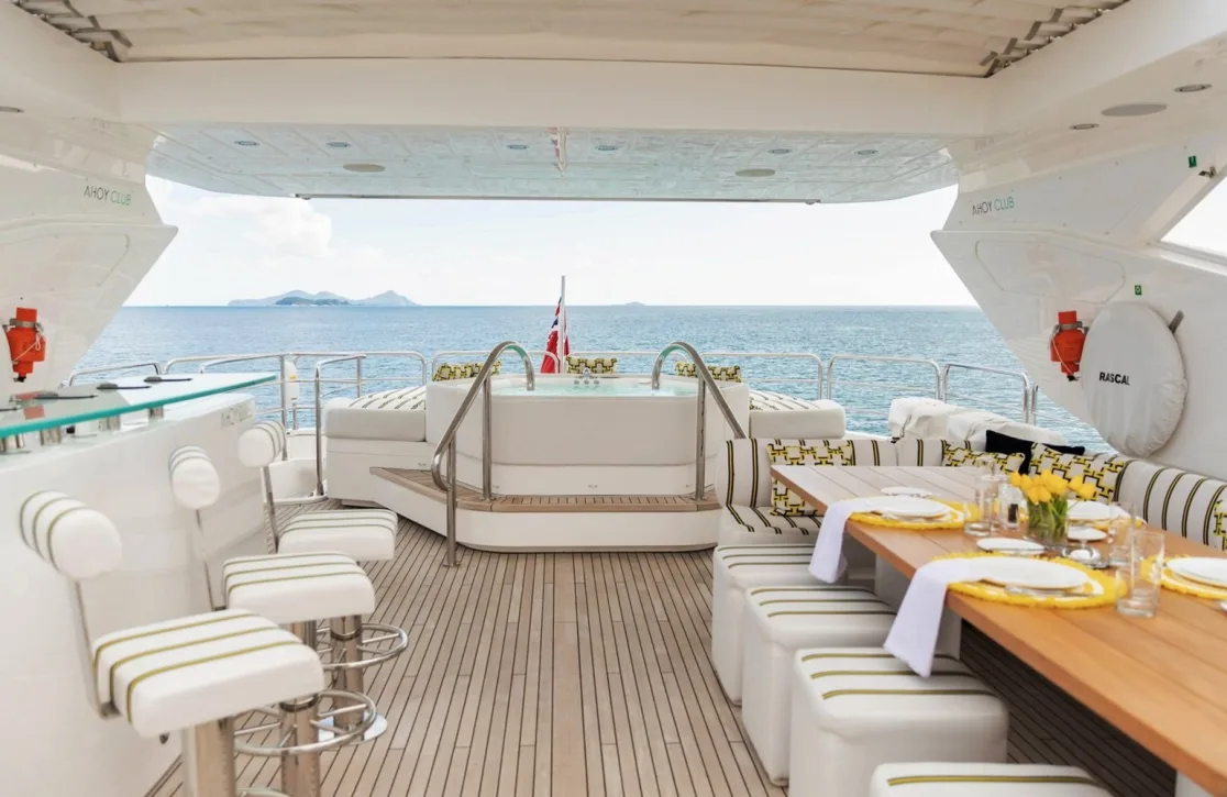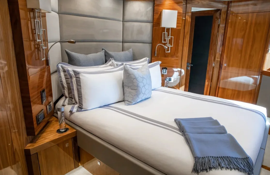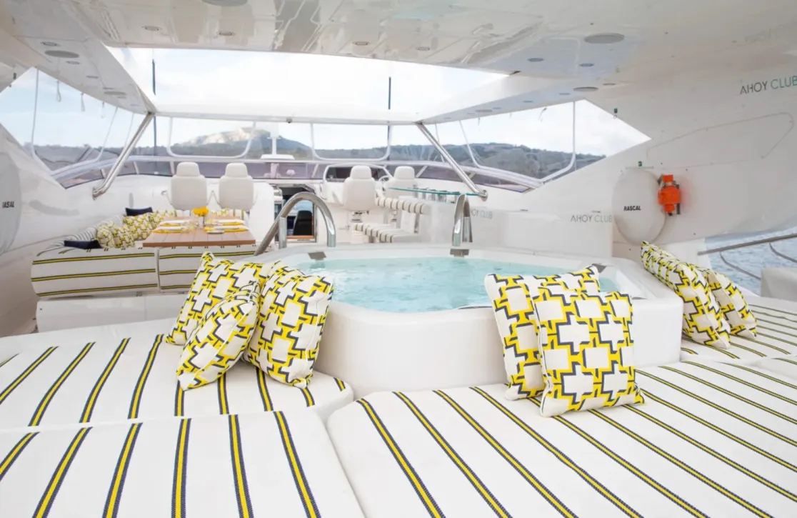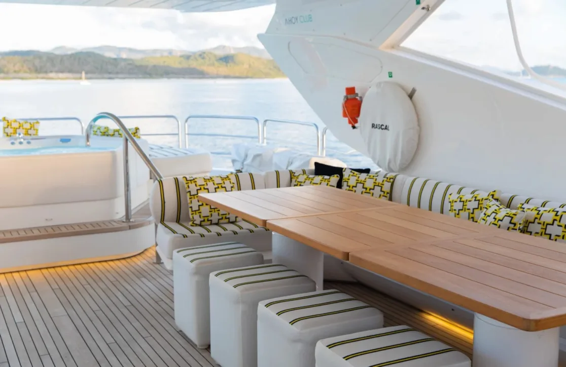 Rascal welcomes up to ten guests into a realm of unparalleled comfort. The master suite, with its panoramic views, promises serene mornings as sunlight dances across the water. Each of the five cabins is a sanctuary, designed to offer both privacy and tranquility. Imagine waking to the gentle sway of the yacht, the promise of a day filled with exploration and indulgence awaiting just beyond your door.