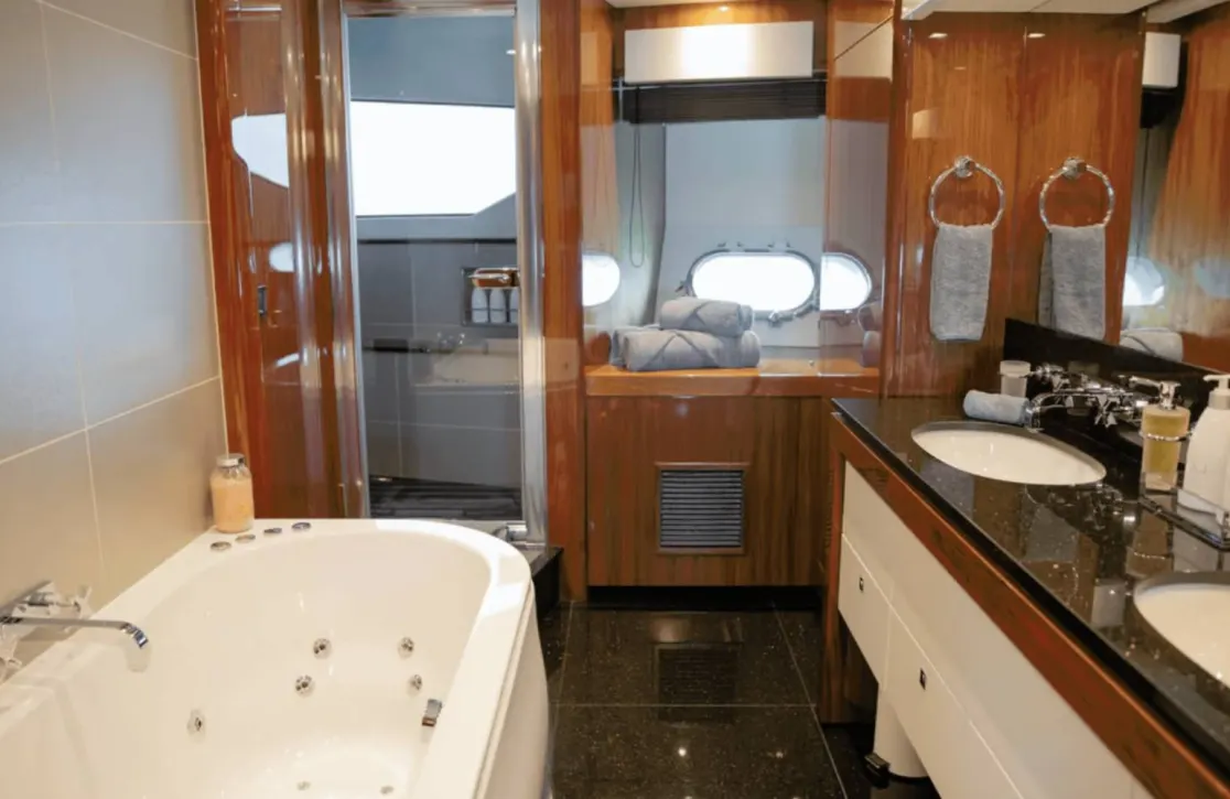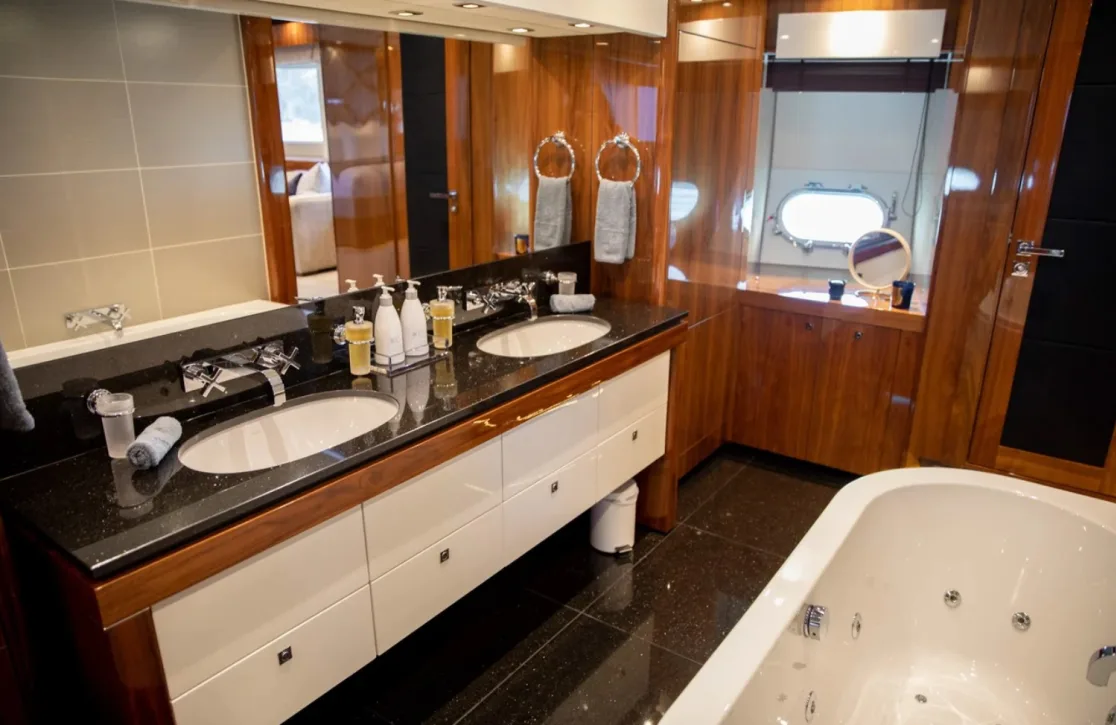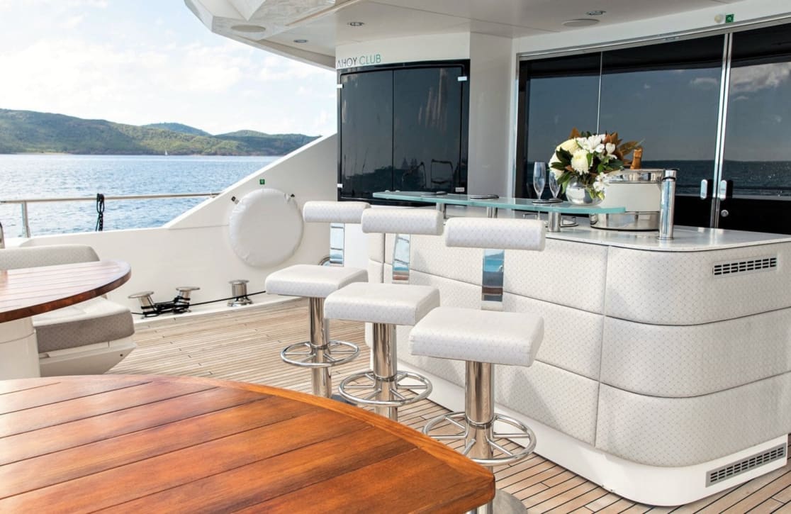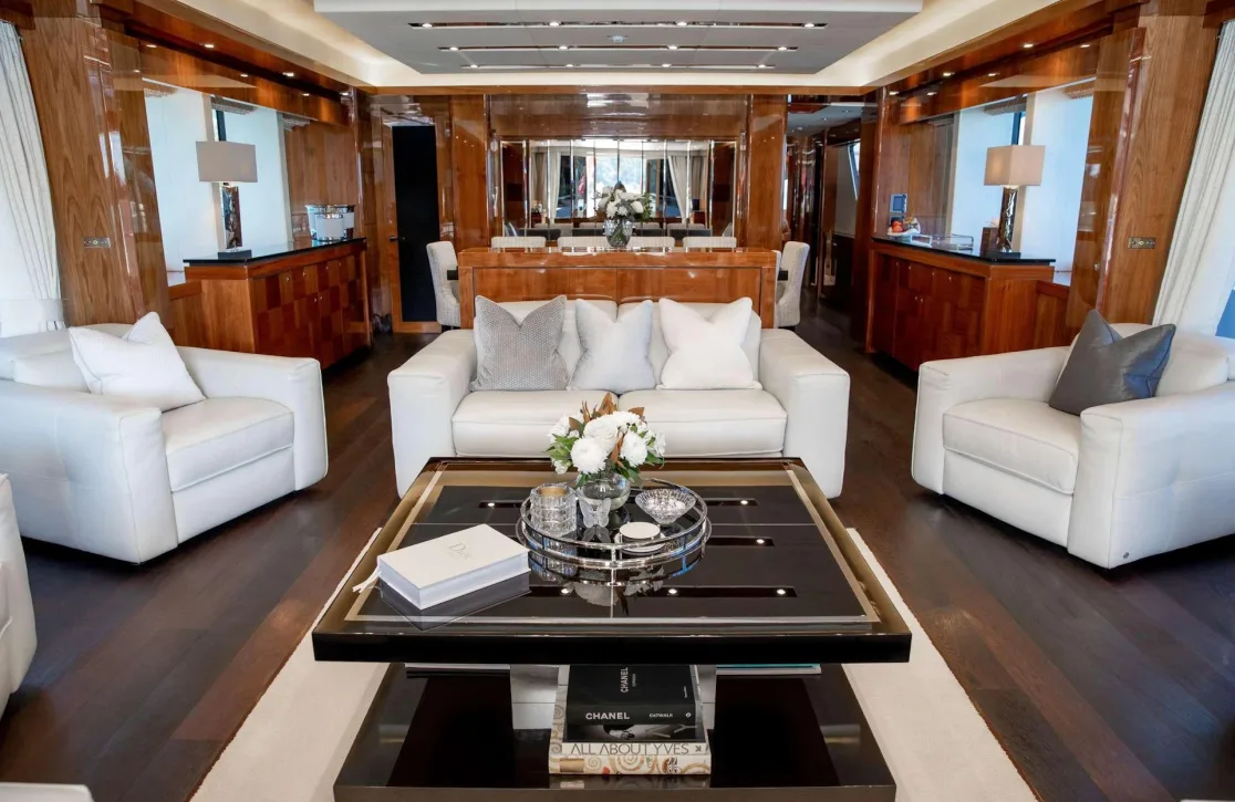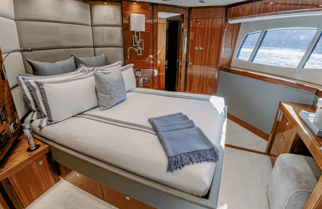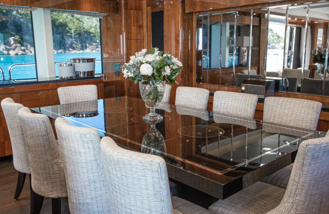Rascal welcomes up to ten guests into a realm of unparalleled comfort. The master suite, with its panoramic views, promises serene mornings as sunlight dances across the water. Each of the five cabins is a sanctuary, designed to offer both privacy and tranquility. Imagine waking to the gentle sway of the yacht, the promise of a day filled with exploration and indulgence awaiting just beyond your door.