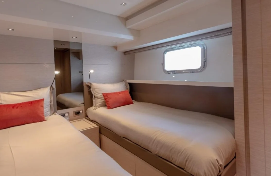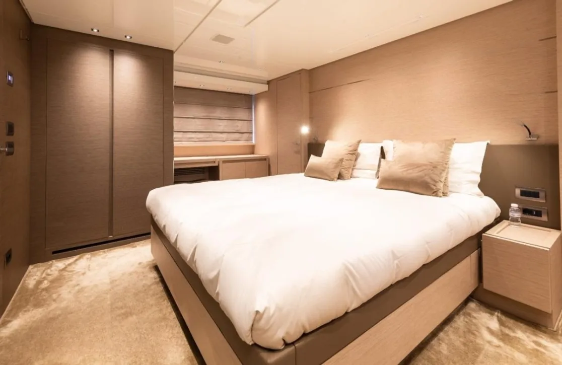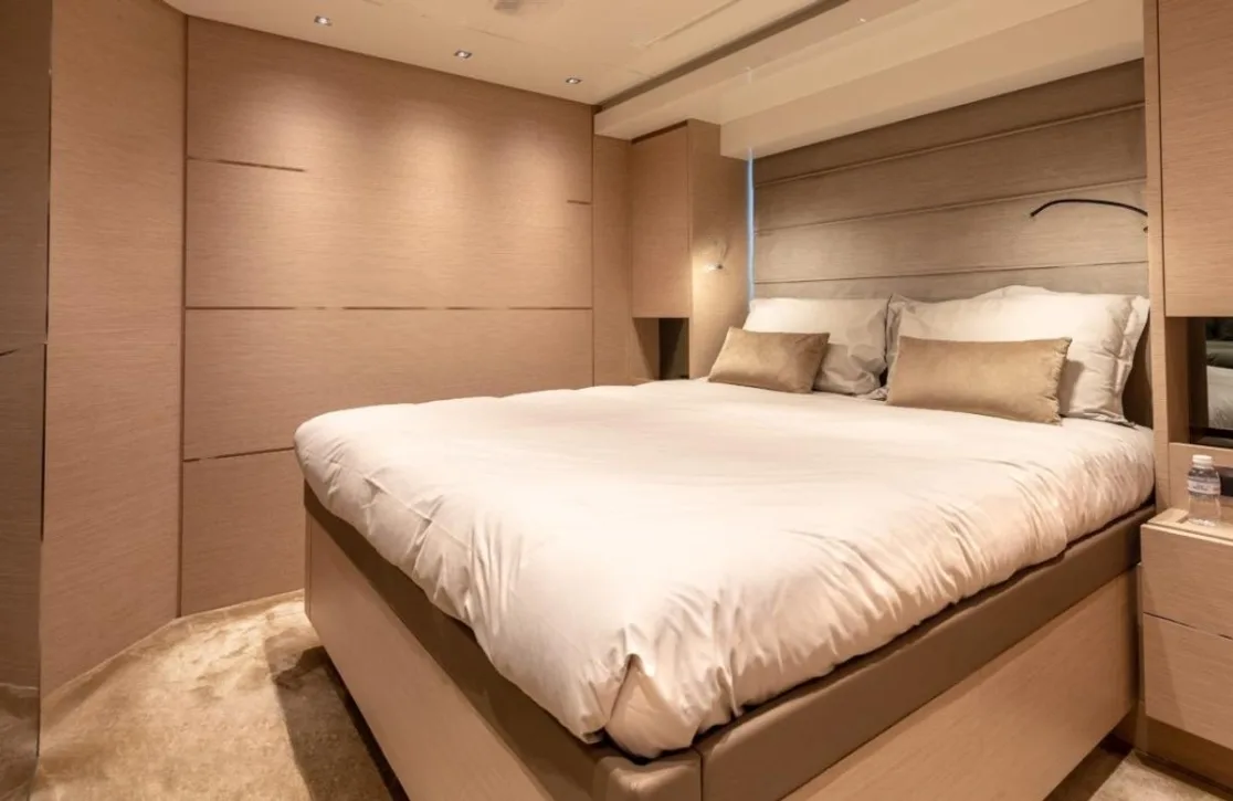 Regine Of Cannes welcomes up to eight guests into its embrace, offering a sanctuary of peace and privacy. The master suite, a VIP cabin, and two twin cabins are meticulously designed to provide the ultimate retreat. Wake each morning to the gentle lull of the sea, surrounded by exquisite craftsmanship and thoughtful details that cater to your every comfort. With every cabin offering a unique blend of elegance and tranquility, your stay aboard promises to be as restful as it is memorable.