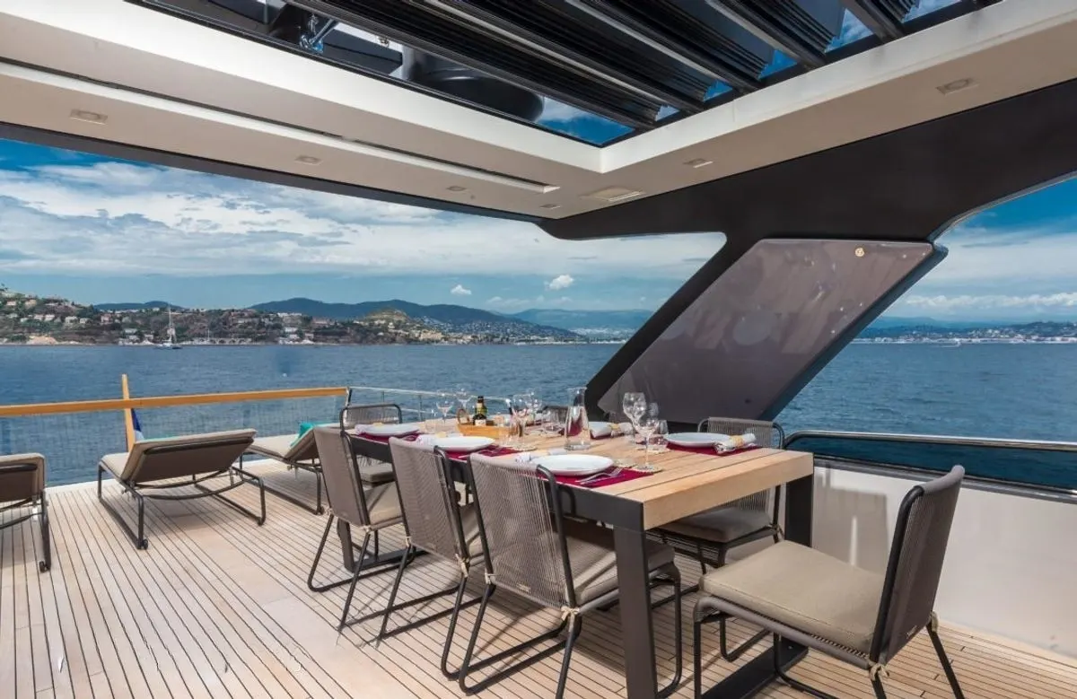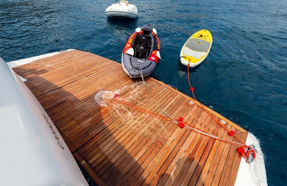 Step into a world where comfort meets style aboard Regine Of Cannes. The yacht’s harmonious blend of spaces invites you to unwind with all the comforts of home, enhanced by state-of-the-art technology. Enjoy seamless connectivity with uninterrupted Wi-Fi, while climate-controlled air conditioning ensures the perfect atmosphere for relaxation. Sunpads beckon on the deck, offering a sun-kissed sanctuary, while the swimming platform provides direct access to the azure waters, promising a day full of adventure or tranquil reflection.