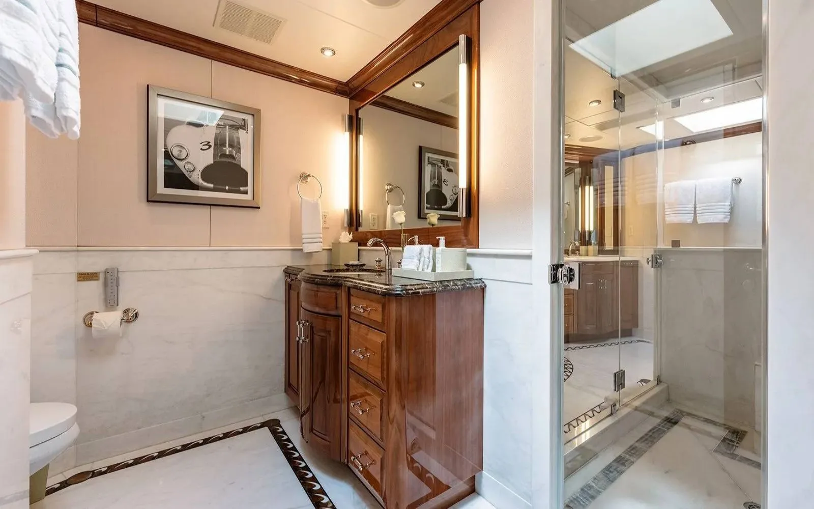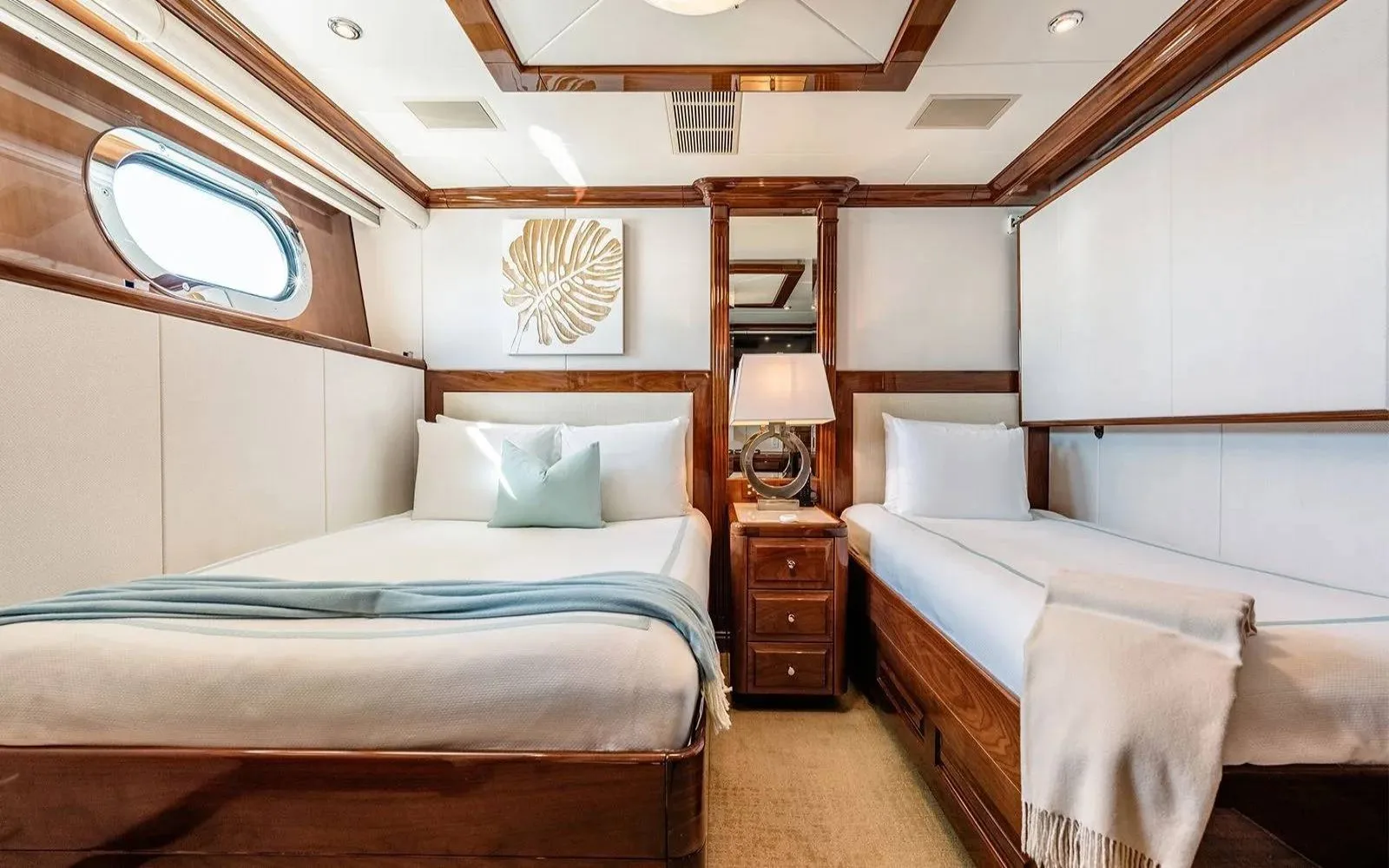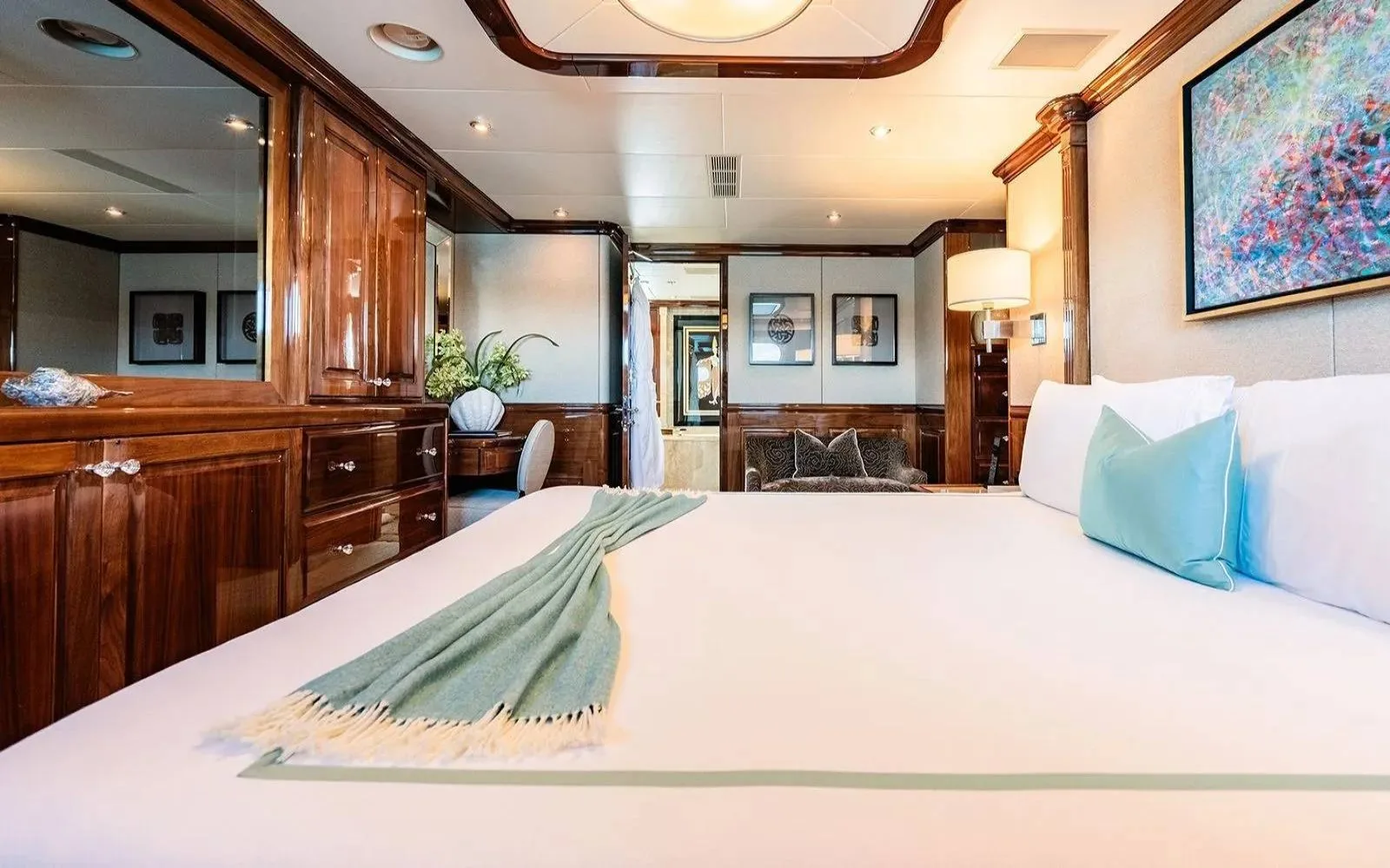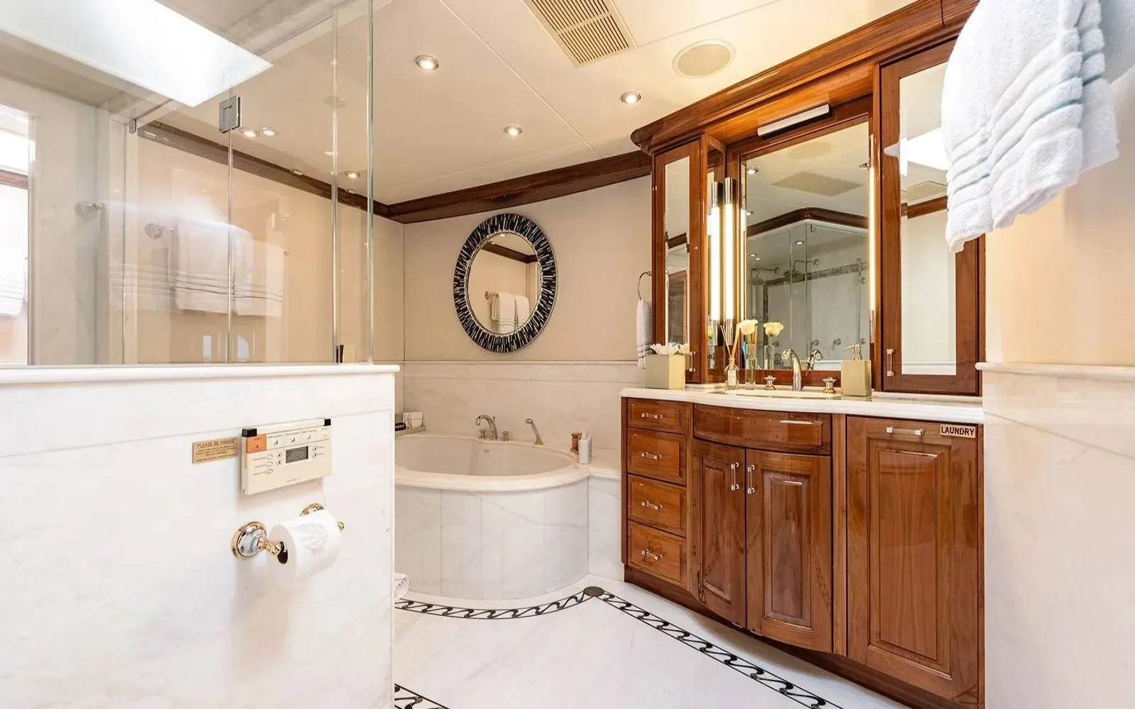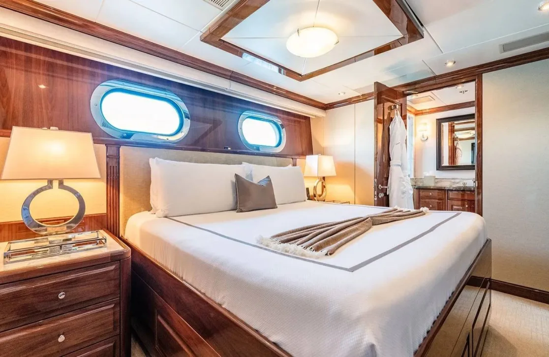 The accommodations aboard ‘Remember When’ are a testament to thoughtful design, offering sumptuous comfort for up to 12 guests. Each of the six cabins is a private retreat, where mornings begin with the gentle lull of the ocean and days end in plush tranquility. The master suite exudes a sense of grandeur, while the VIP and additional cabins provide elegant sanctuaries for restful nights. With a total of ten beds, including king-sized havens and cozy twins, each guest finds their perfect haven aboard. From sunrise to sunset, your quarters offer the ideal blend of privacy and luxury, ensuring that every moment spent aboard feels both intimate and indulgent.