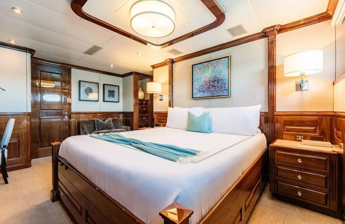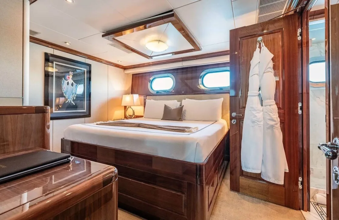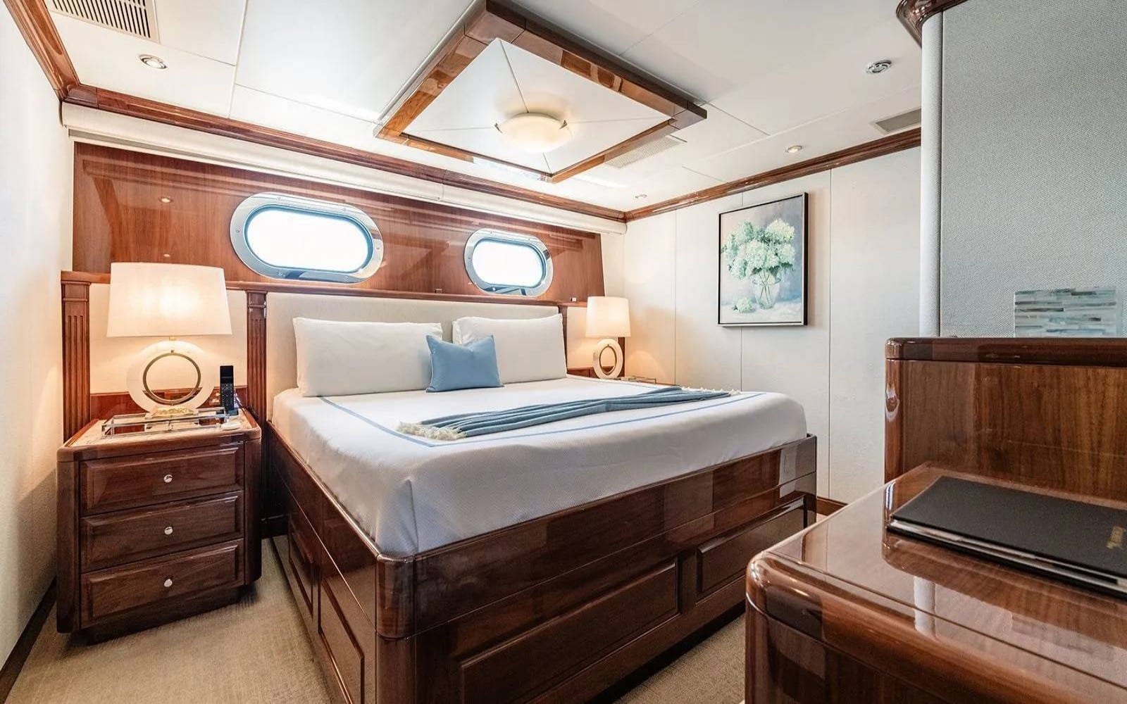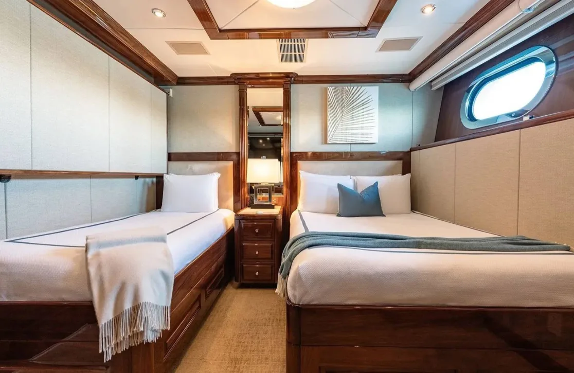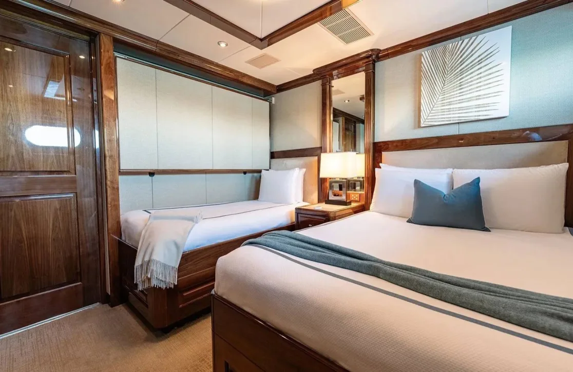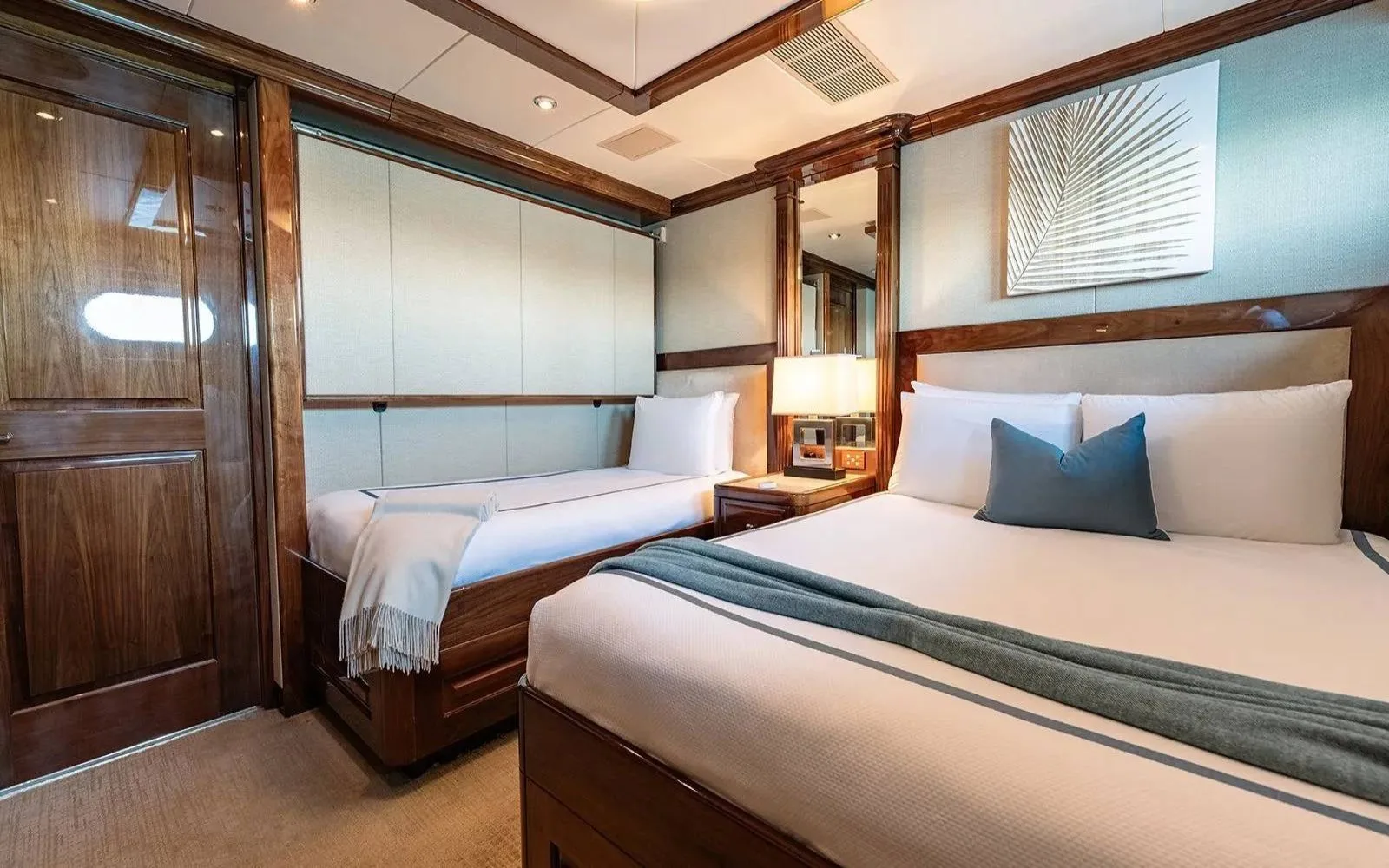 The accommodations aboard ‘Remember When’ are a testament to thoughtful design, offering sumptuous comfort for up to 12 guests. Each of the six cabins is a private retreat, where mornings begin with the gentle lull of the ocean and days end in plush tranquility. The master suite exudes a sense of grandeur, while the VIP and additional cabins provide elegant sanctuaries for restful nights. With a total of ten beds, including king-sized havens and cozy twins, each guest finds their perfect haven aboard. From sunrise to sunset, your quarters offer the ideal blend of privacy and luxury, ensuring that every moment spent aboard feels both intimate and indulgent.