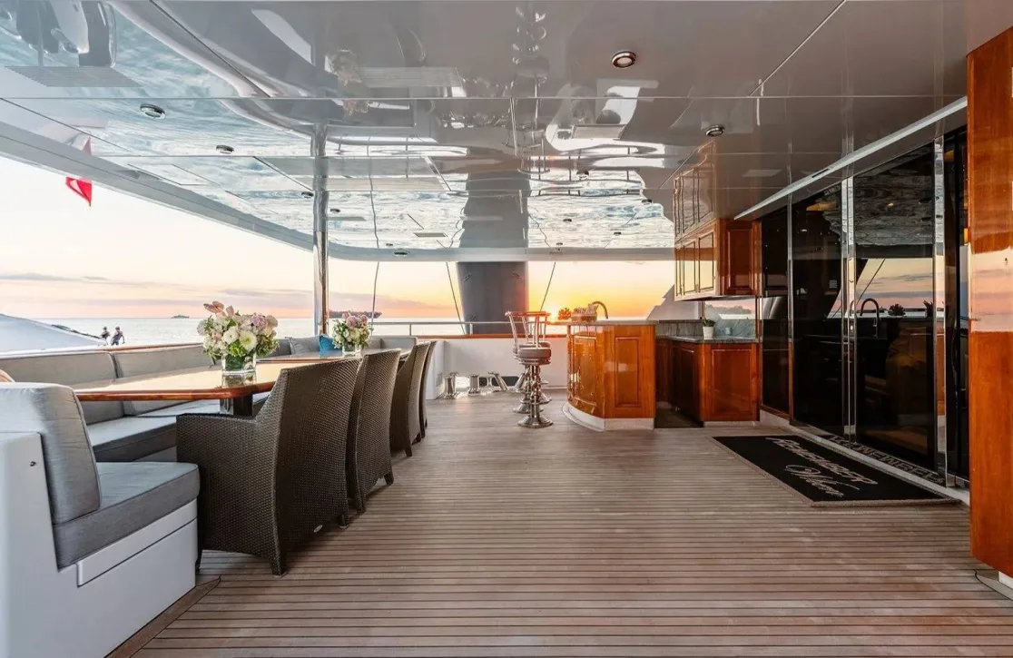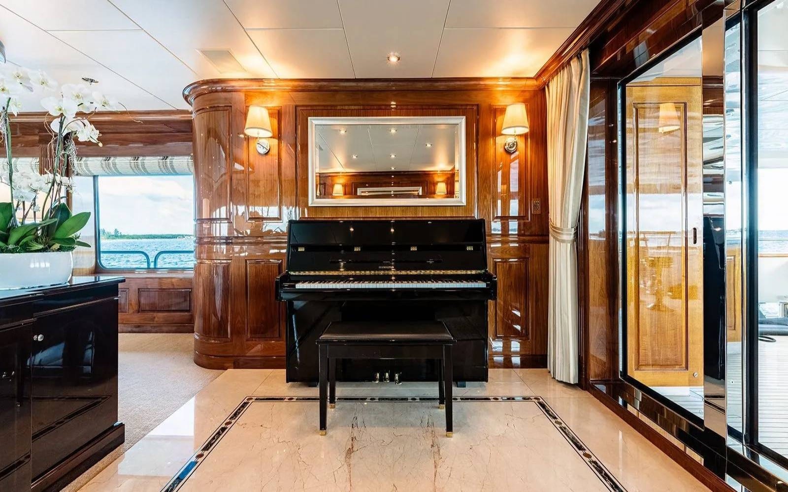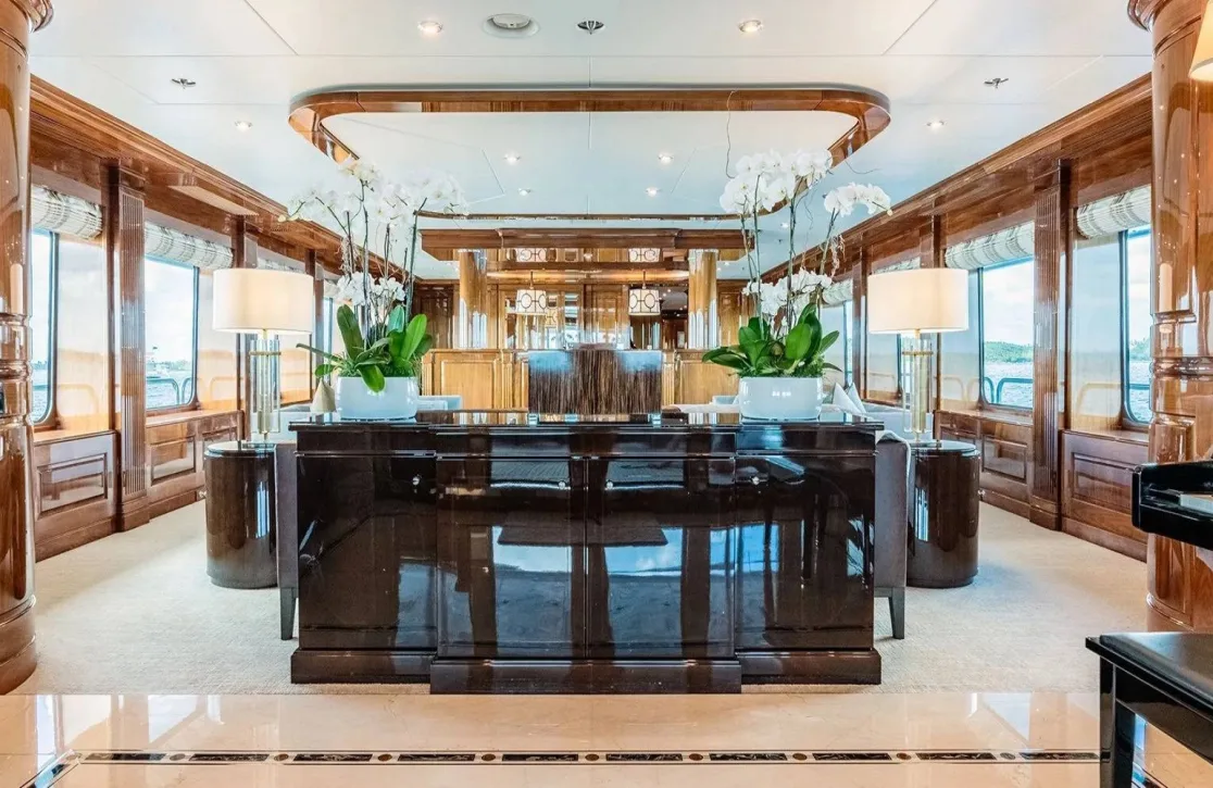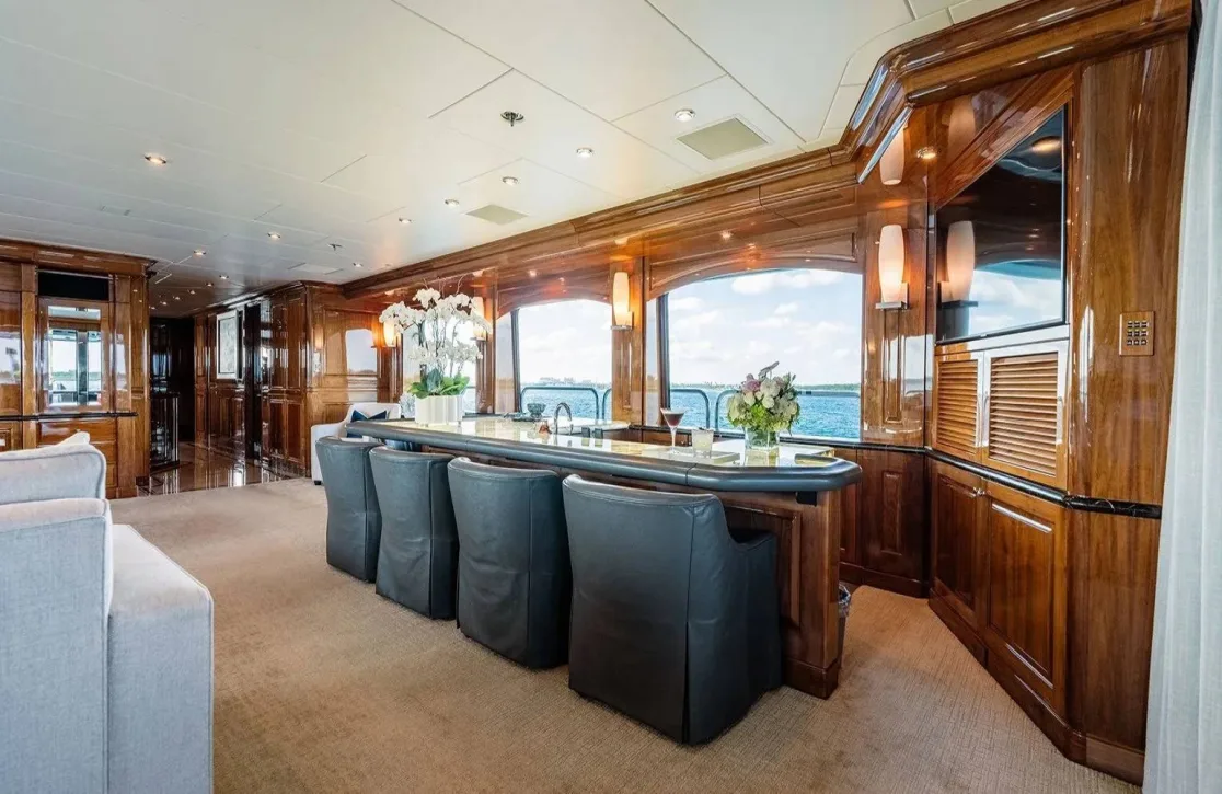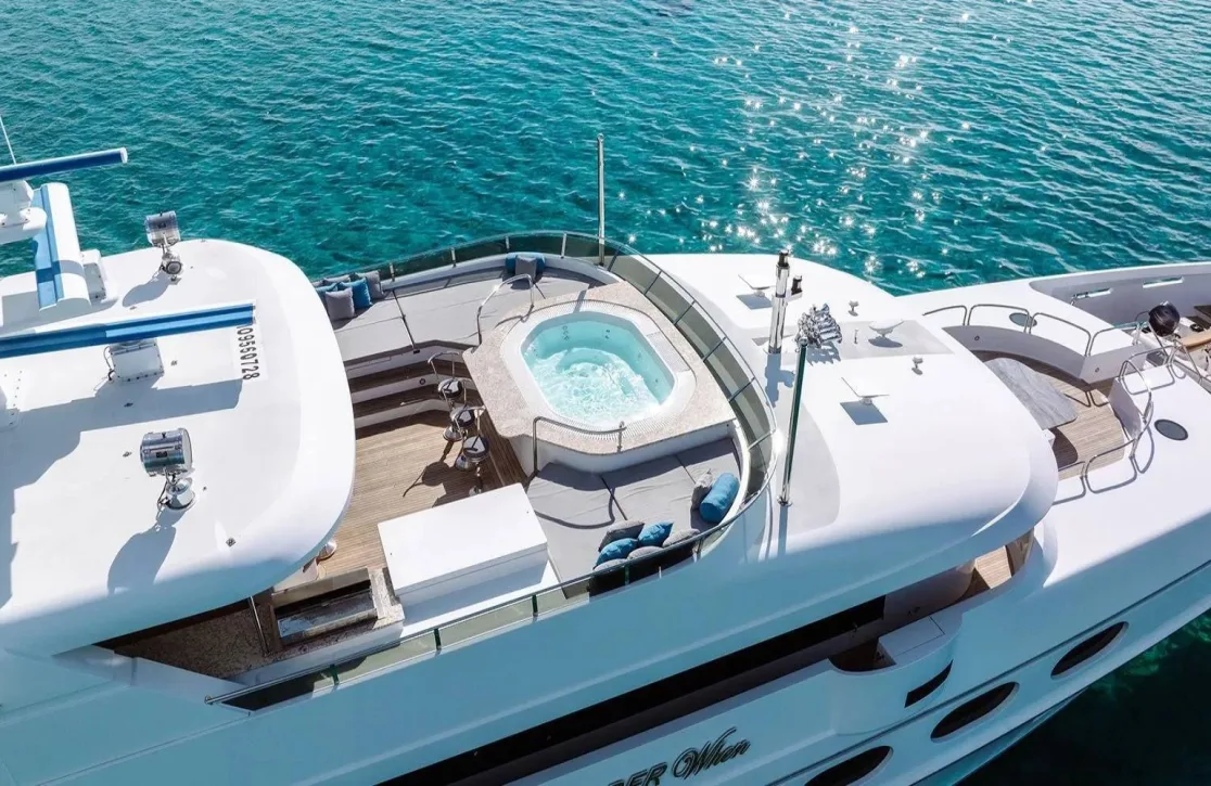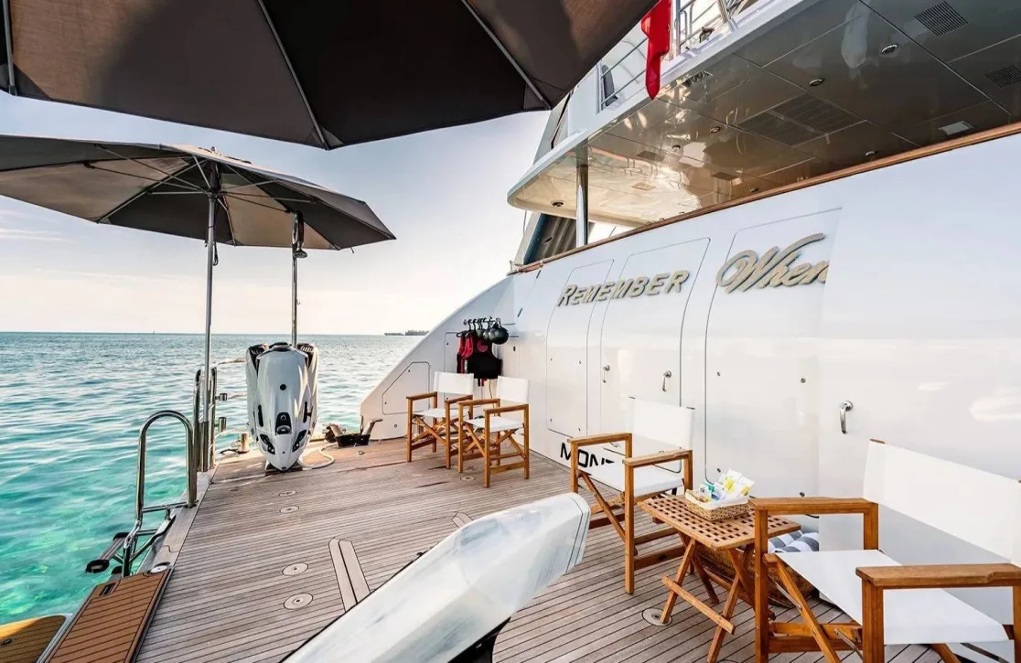 Onboard ‘Remember When,’ every detail is designed to enhance your journey, offering a sanctuary where relaxation meets inspiration. Begin your day with a rejuvenating session in the gym, or perhaps a meditative moment on the sun deck as the horizon unfolds before you. As the day transitions, the deck jacuzzi becomes an inviting retreat, offering a blend of warm waters and panoramic views. The yacht’s elevator seamlessly connects you to every level, ensuring ease of movement as you explore the artfully designed spaces. Whether savoring a quiet evening with satellite communications keeping you connected or enjoying the mesmerizing glow of underwater lights, ‘Remember When’ is a haven where every amenity serves to elevate your experience.