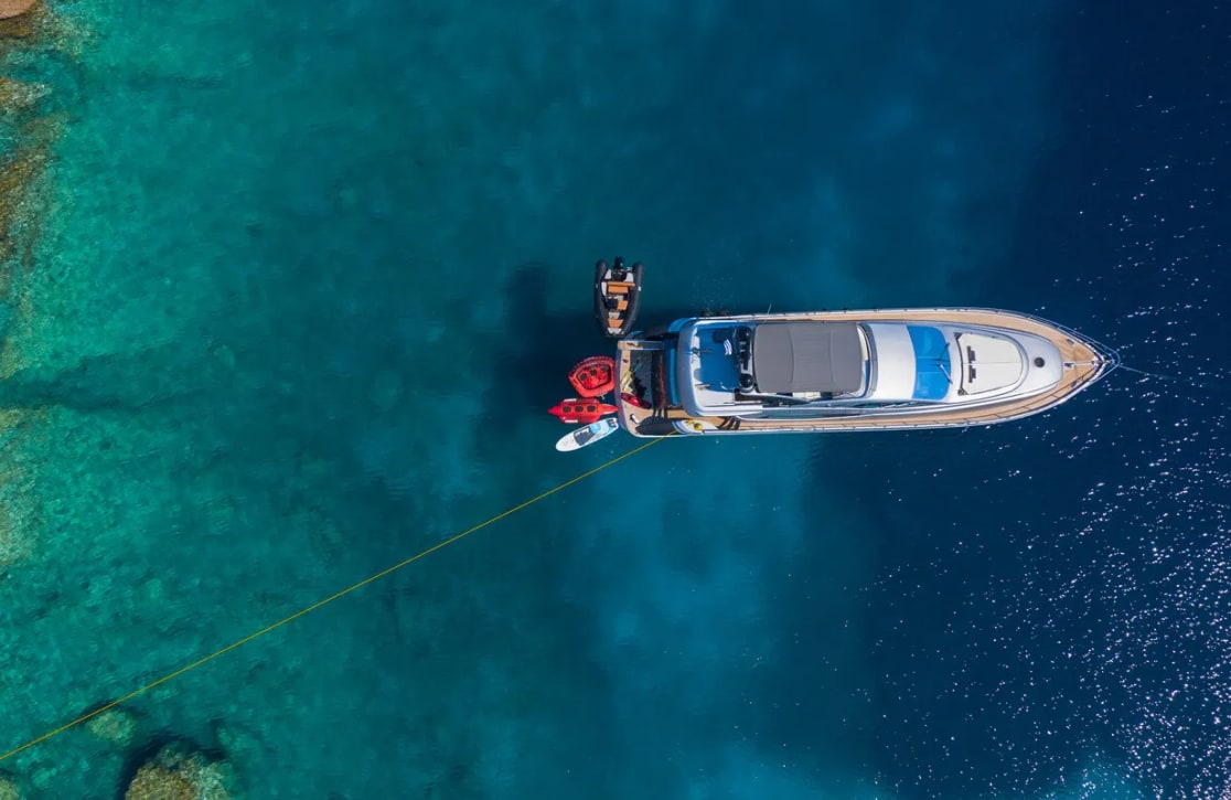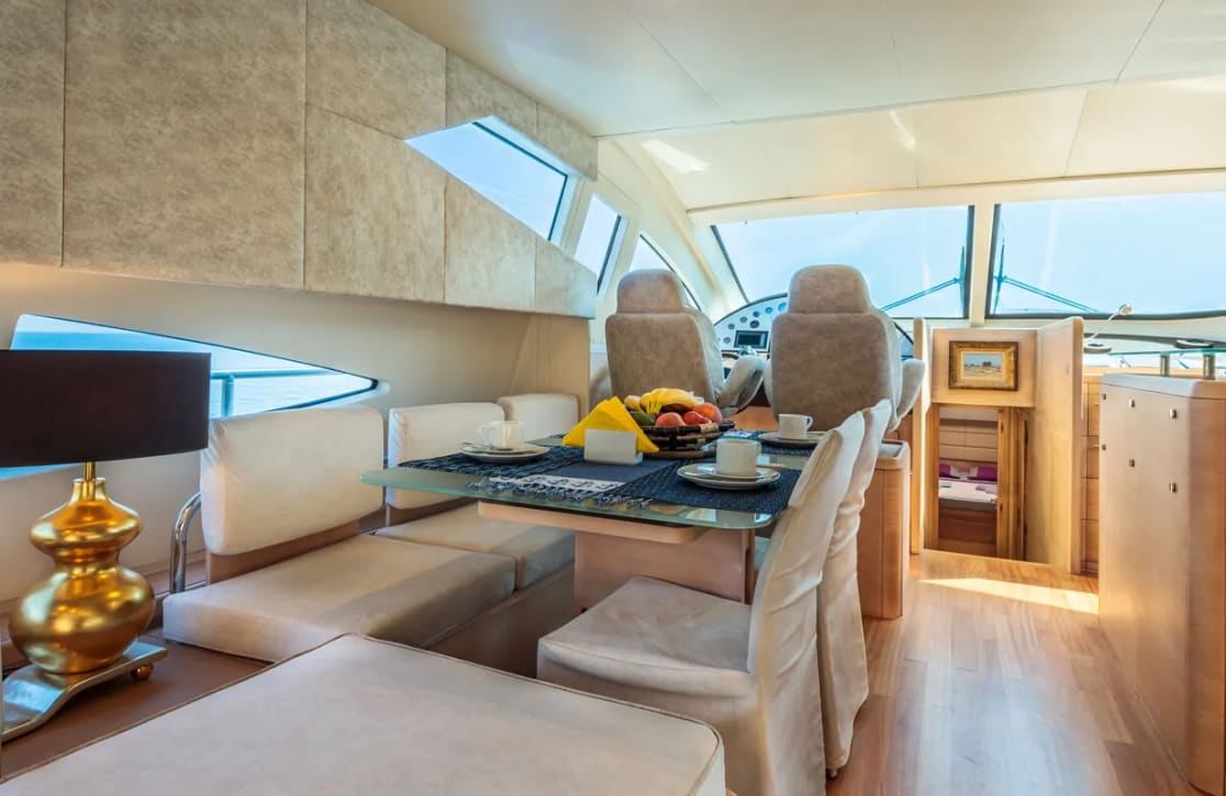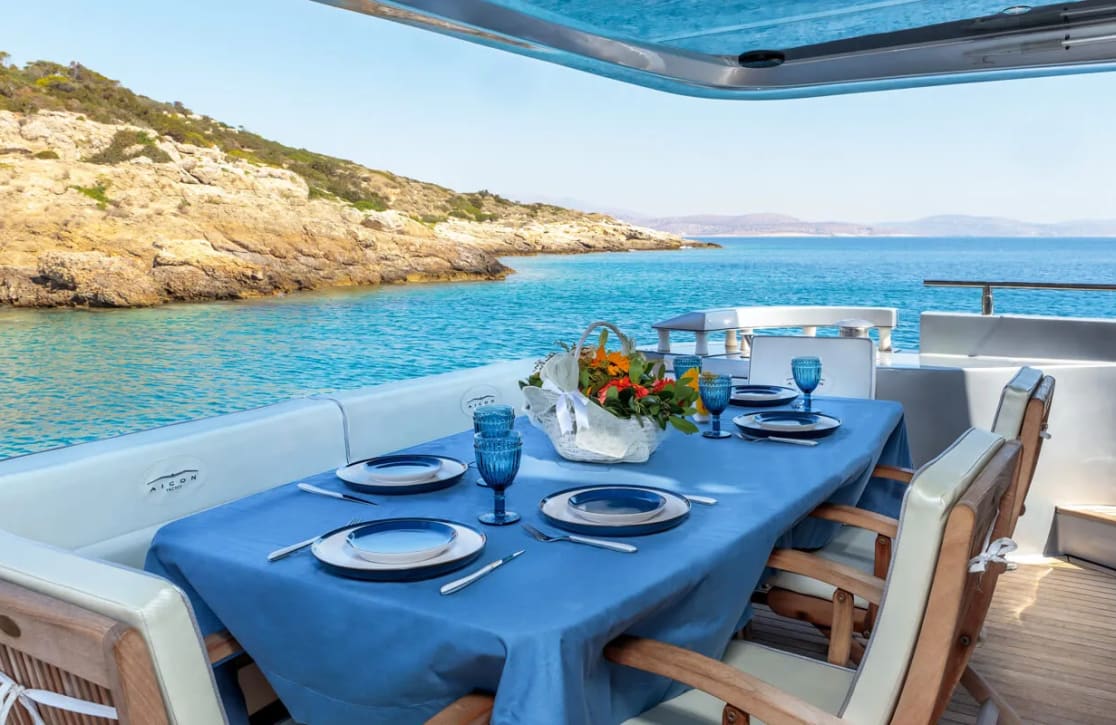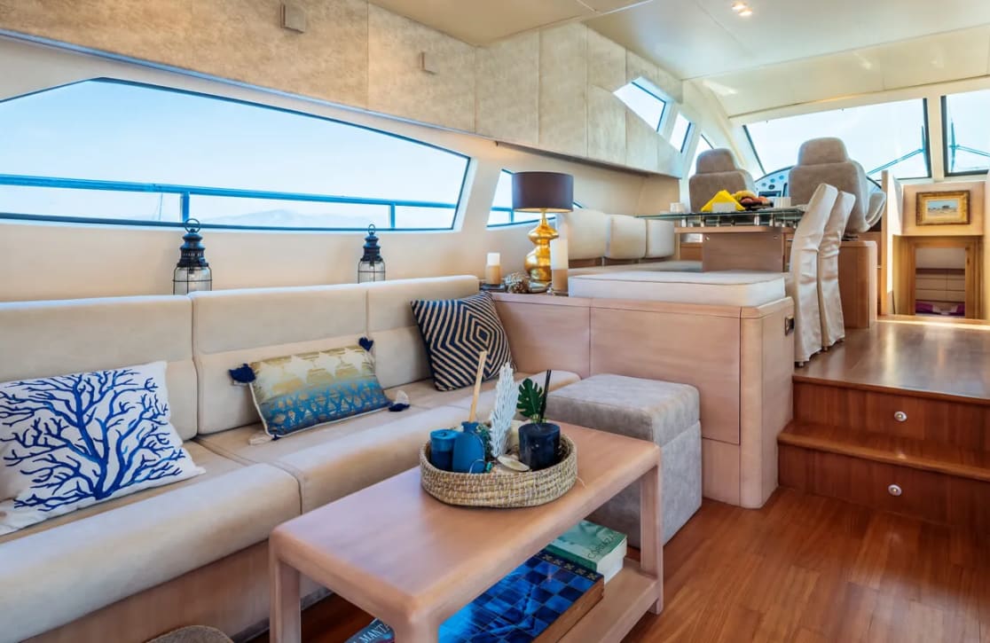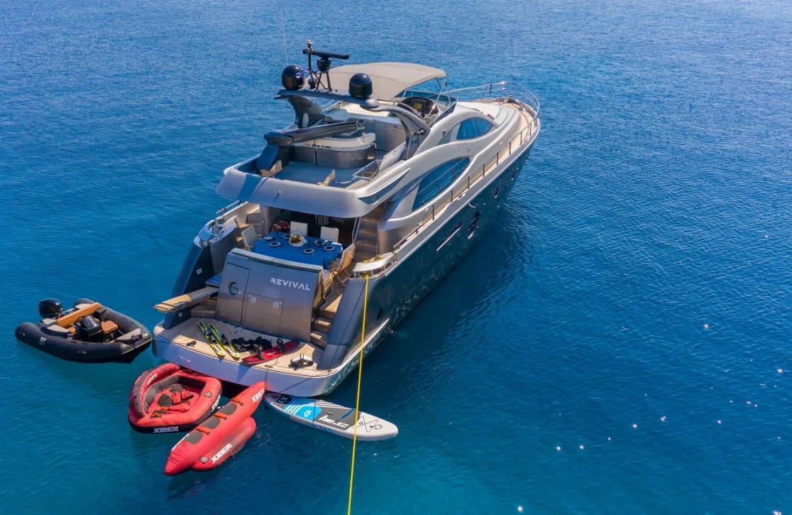 Aboard Revival, the ambiance is one of sophistication and ease, where each space is designed to enhance your journey. The yacht is equipped with seamless Wi-Fi connectivity, allowing you to stay in touch with the world as you unwind in the comfort of air-conditioned interiors. Whether you’re seeking a tranquil retreat or a lively gathering spot, the thoughtfully appointed social areas offer the perfect backdrop for both. As the sun sets, the yacht transforms into an intimate oasis, where the gentle sea breeze and starlit skies create an unforgettable evening experience.