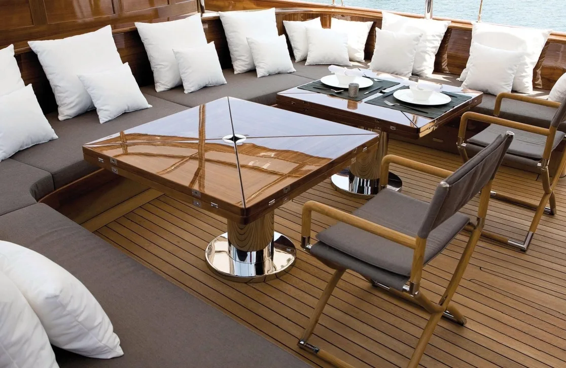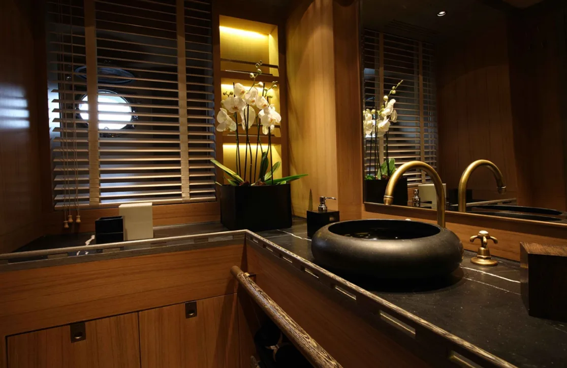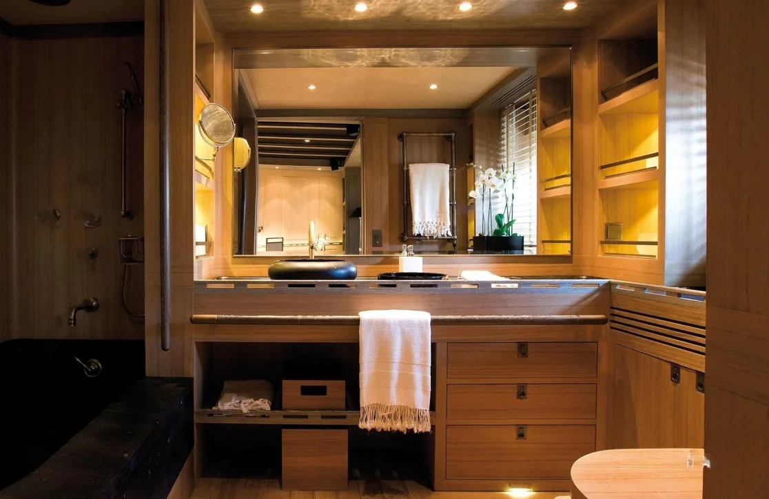 Roxane welcomes up to nine guests into her embrace, offering a sanctuary of rest in four beautifully appointed cabins. The master suite exudes grace and sophistication, while the VIP and additional cabins provide a warm and inviting retreat. As dawn breaks, the gentle sway of the sea accompanies your morning routine, and each room, with its plush bedding and elegant design, promises a restful escape after a day of adventure.
