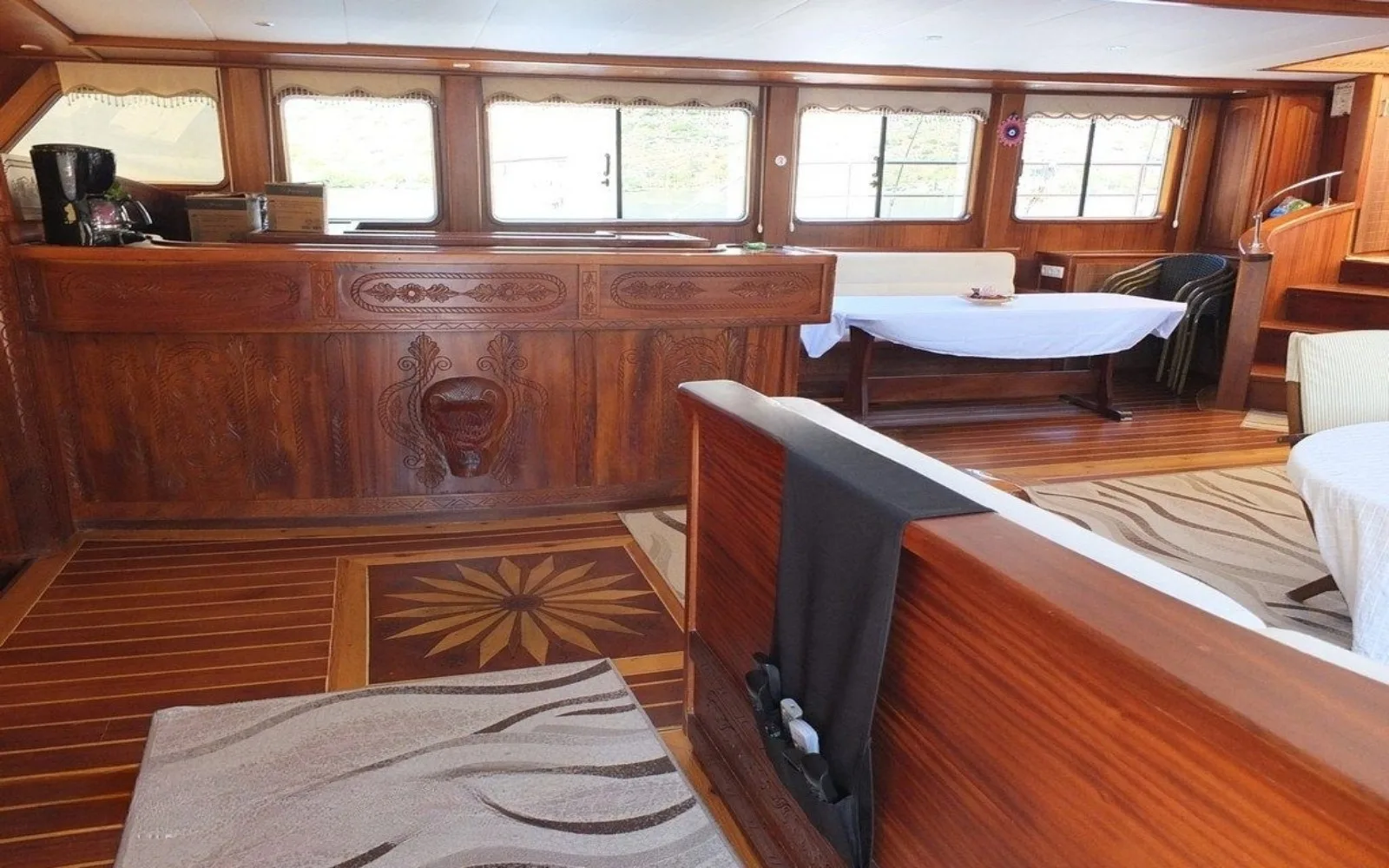 Accommodating up to 16 guests in eight beautifully appointed cabins, the S. NUR TAYLAN promises restful nights and serene mornings. The master suite serves as a tranquil retreat, complemented by five double cabins and two twin cabins, each offering a haven of comfort and privacy. Imagine waking to the gentle sounds of the sea, with sunlight casting a warm glow through your cabin’s windows as you prepare for another day of exploration and relaxation.