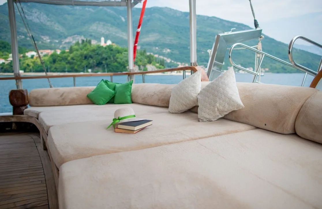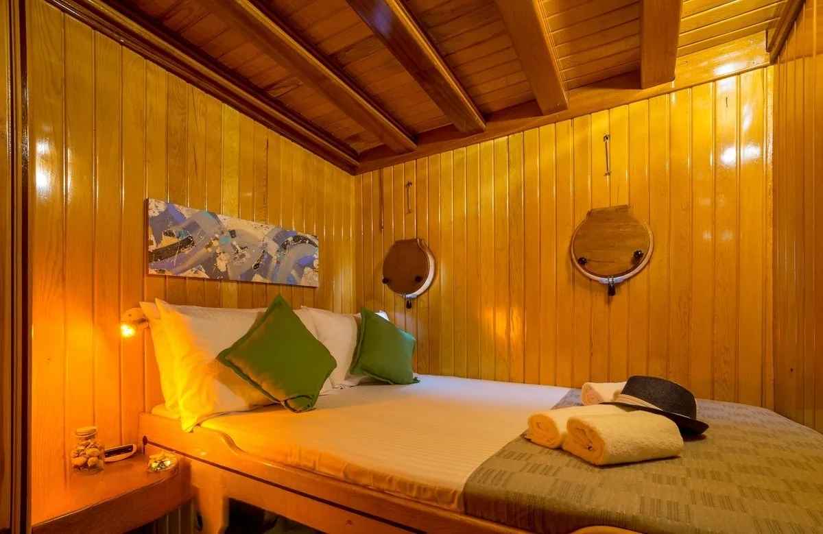 Step into a world of comfort and connectivity aboard Sadri Usta 1. The yacht’s interiors are a haven of relaxation, featuring thoughtfully designed air-conditioned spaces that provide a cool retreat from the midday sun. Stay effortlessly connected with Wi-Fi as you lounge on deck, sipping a refreshing drink while the sea breeze whispers through the sails. Whether you’re enjoying a leisurely breakfast or an evening gathering, the ambiance aboard invites guests to unwind and indulge in the serene rhythm of life at sea.