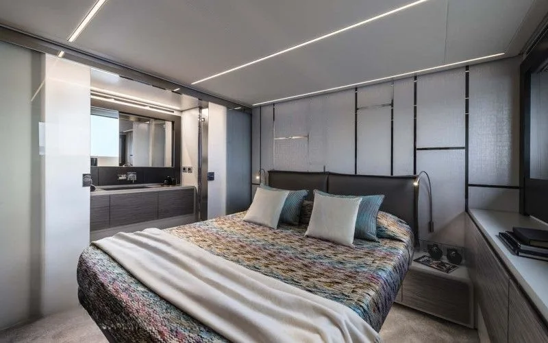 Saints welcomes up to four guests into its embrace, offering two beautifully appointed suites. The modern, clean-lined interiors exude a serene ambiance, where neutral tones and sleek finishes create a haven of relaxation. Awaken each morning to the gentle lapping of waves and the promise of a new day filled with adventure. The attentive crew of two ensures that every detail is tailored to your comfort, creating a bespoke experience that lingers long after your voyage ends.