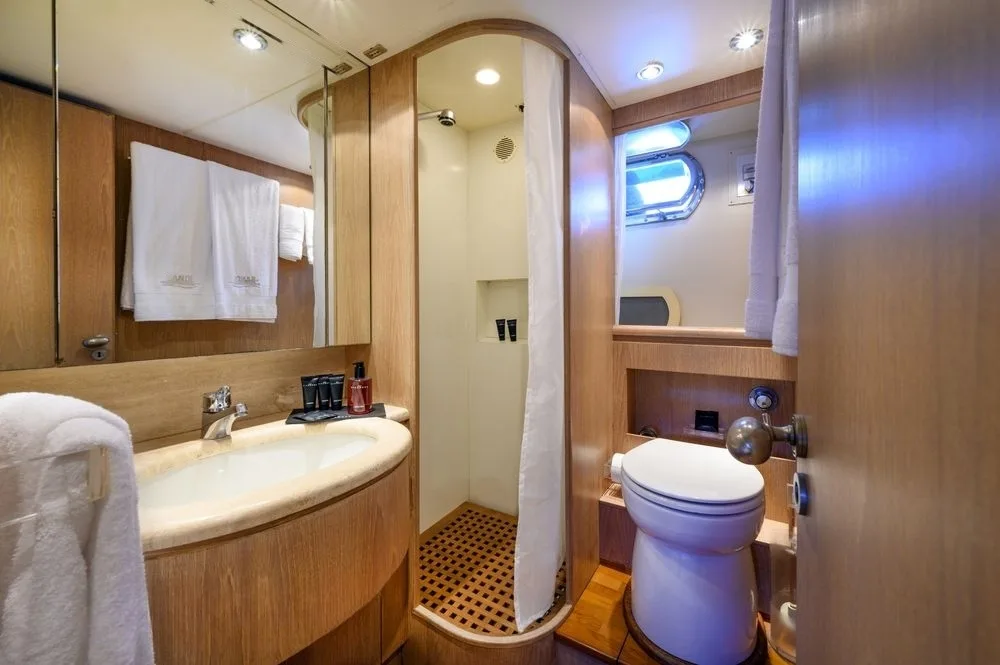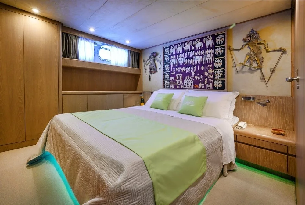 Sandi IV’s accommodations offer a sanctuary of comfort and style for up to eight guests. The four beautifully appointed cabins are designed to cocoon you in tranquility, with every detail crafted for a restful sleep. Imagine waking up to the gentle lull of the sea, sunlight streaming through your window, and the promise of another day of adventure. Each cabin is a private enclave, providing the perfect retreat after a day filled with exploration and discovery.