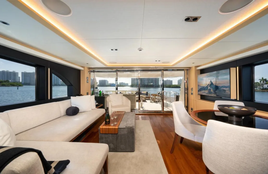 Aboard Santosh, every moment is an invitation to savor the extraordinary. As you relax on the sun deck, the gentle Caribbean breeze whispers through the foredeck seating area, creating an idyllic setting for morning coffees or sunset cocktails. The exterior bar beckons for social gatherings under the stars, while sunpads offer a perfect retreat for sun-soaked afternoons. With Wi-Fi connectivity and stabilizers that ensure serenity both at anchor and underway, your time aboard Santosh is defined by comfort and elegance. The air-conditioned interiors provide a cool refuge from the day’s heat, seamlessly blending indoor and outdoor living.