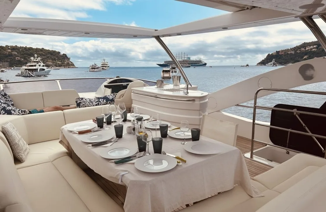 Step into the world of Sarahlisa, where every detail has been thoughtfully curated to enhance your time aboard. As you unwind, enjoy the seamless blend of connectivity and comfort with high-speed Wi-Fi and advanced climate control. By day, the sunpads invite leisurely hours of sun-soaked relaxation, while evenings bring the allure of alfresco dining on the spacious decks. The swimming platform serves as a gateway to the sea, perfect for invigorating morning swims or contemplative sunset reflections. With at-anchor stabilizers ensuring calm waters, your focus remains on the blissful experience of being at sea.