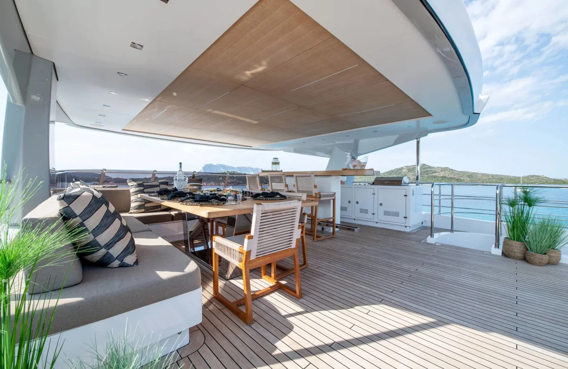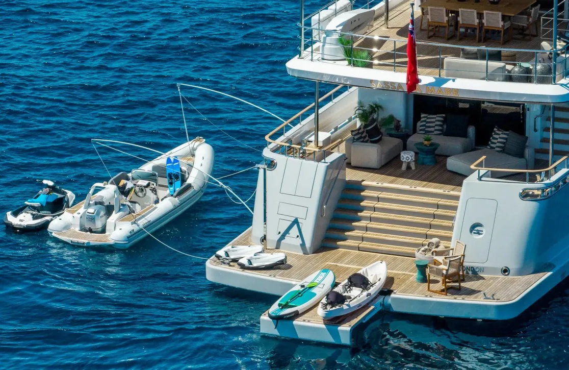 Onboard Sassa La Mare, the atmosphere is one of effortless sophistication and comfort. The sun deck is a haven for relaxation, where you can bask in the warmth of the sun or gather with friends for evening cocktails under a starlit sky. Stay seamlessly connected with Wi-Fi throughout the vessel, and enjoy the perfect climate with comprehensive air conditioning. The yacht is designed to cater to your every whim, offering spaces that are both inviting and impeccably appointed.