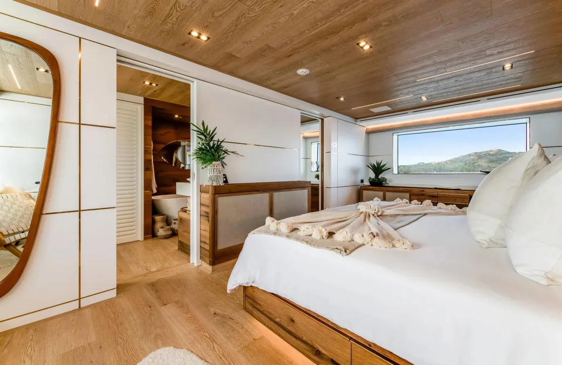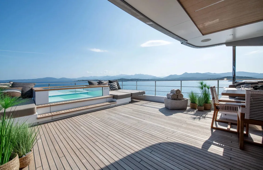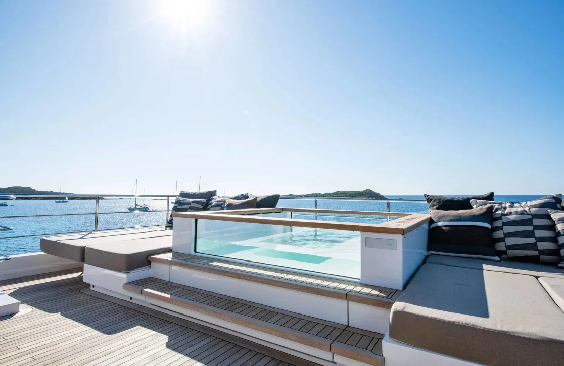 Aboard Sassa La Mare, every detail is curated to enhance your experience. Picture yourself savoring the serenity of the sea with a refreshing dip in the deck jacuzzi, as the sun dips below the horizon. The yacht’s twin Caterpillar engines ensure a smooth voyage at 10 knots, while her dedicated crew of six attends to your every need, allowing you to focus on creating unforgettable memories. From the moment you step aboard, Sassa La Mare offers a sanctuary of refined relaxation and exhilarating exploration.