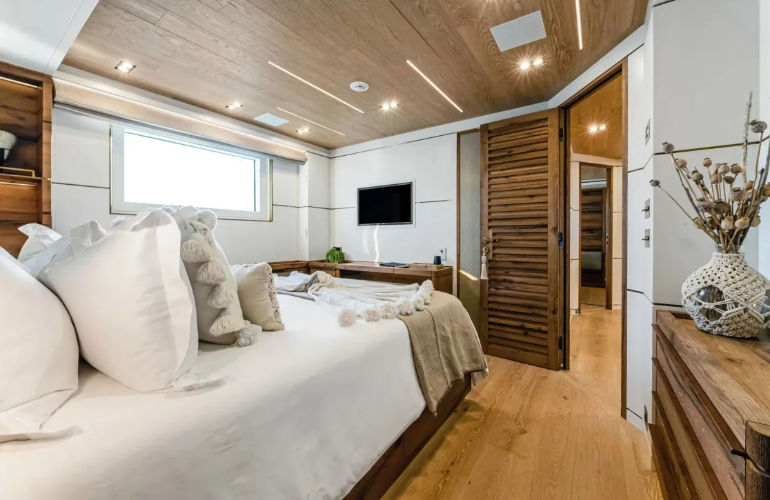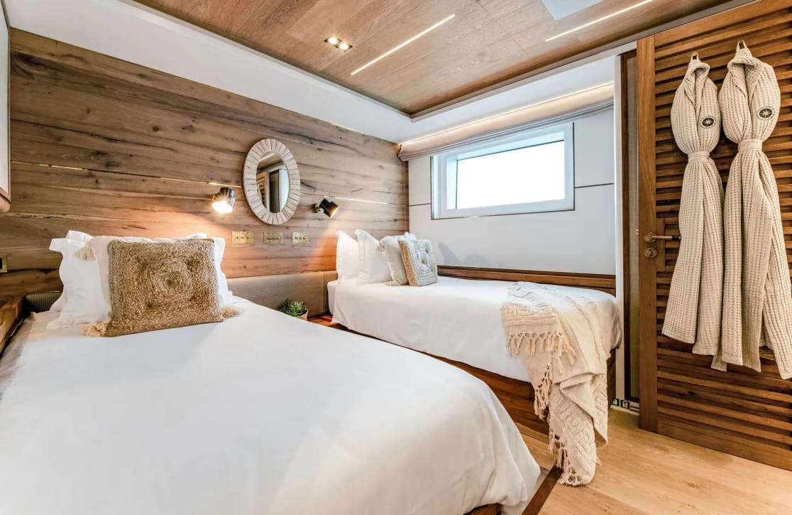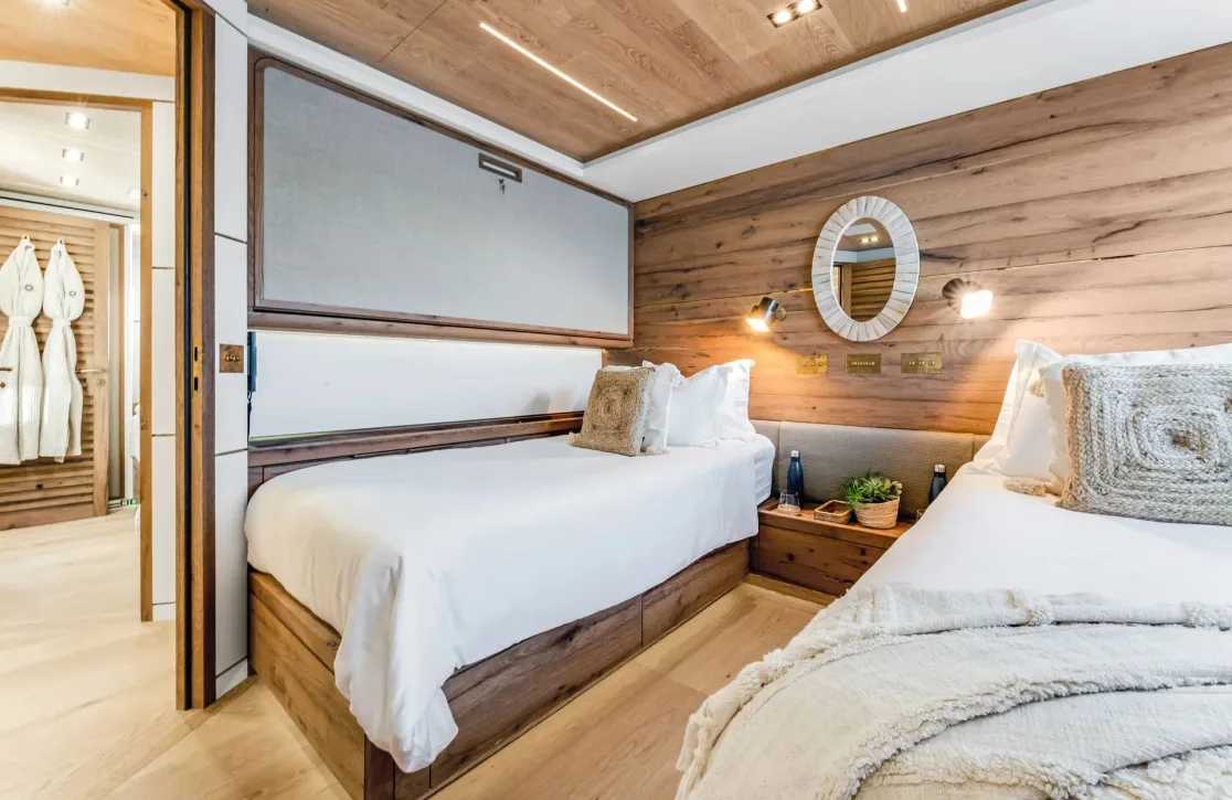Sassa La Mare accommodates up to eight guests in five beautifully designed cabins, each offering a personal retreat after a day of adventure. Three elegant double cabins provide a tranquil escape, while two versatile cabins can be configured as twins or doubles, ensuring flexibility for families or friends. Awaken to the gentle sway of the yacht and the promise of another day of exploration, all the while enveloped in the comfort and style that defines Sassa La Mare.