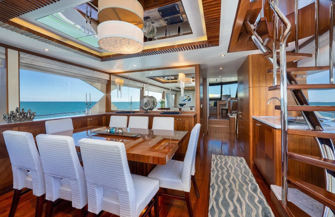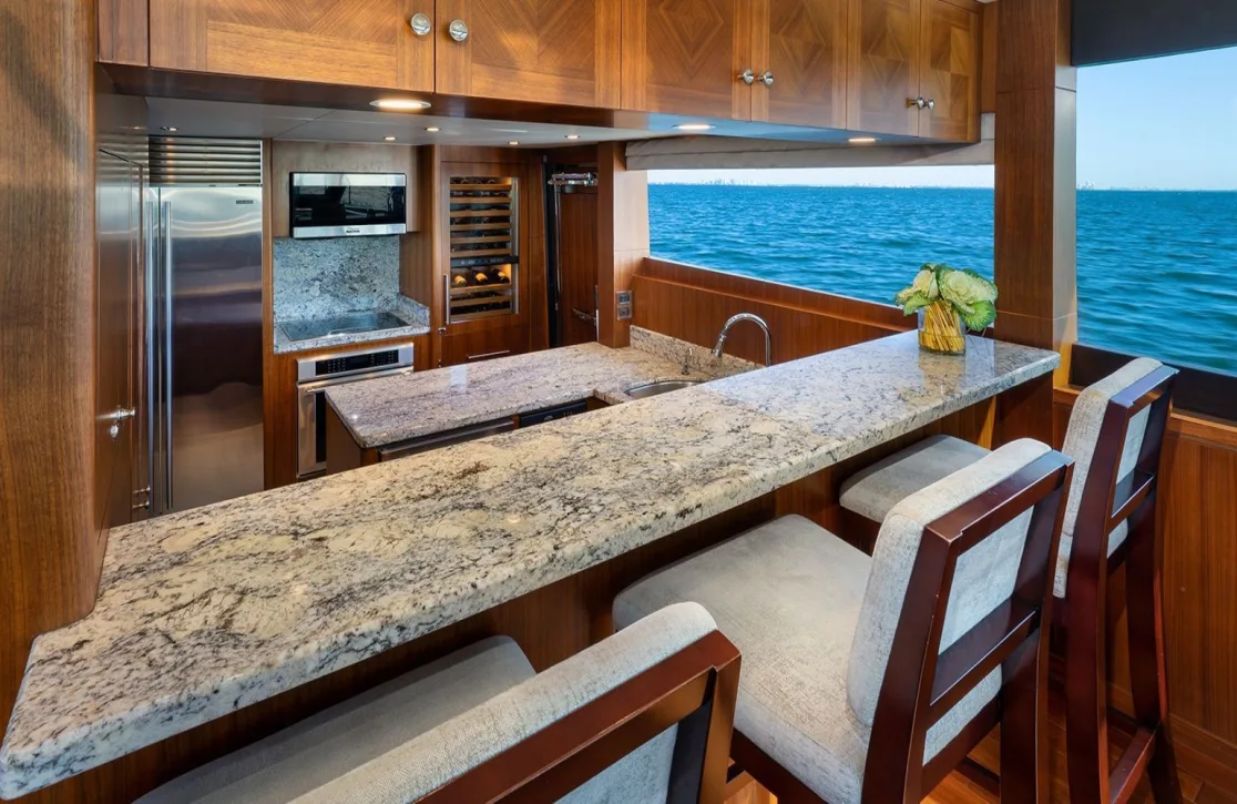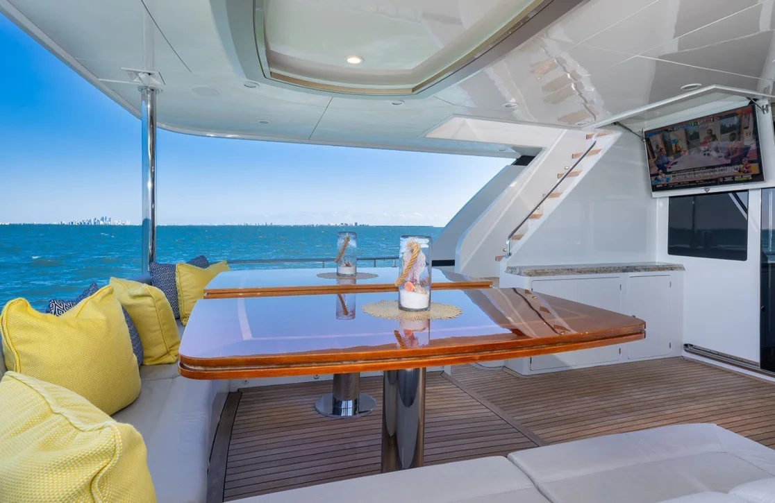 Step into a world where every moment is curated for your pleasure. Picture yourself enjoying the open-air spaces with a refreshing breeze on the sun deck, or savoring a cocktail crafted at the exterior bar as the sun sets on another perfect day. The yacht’s air conditioning and Wi-Fi keep you comfortable and connected, allowing you to transition from relaxation to productivity effortlessly. Whether basking under the sun or dining alfresco, the ambiance aboard Sea N Sea is one of effortless grace.