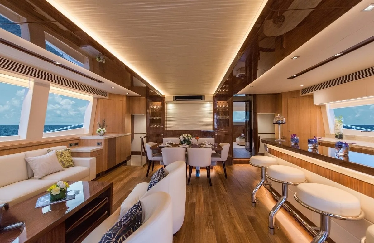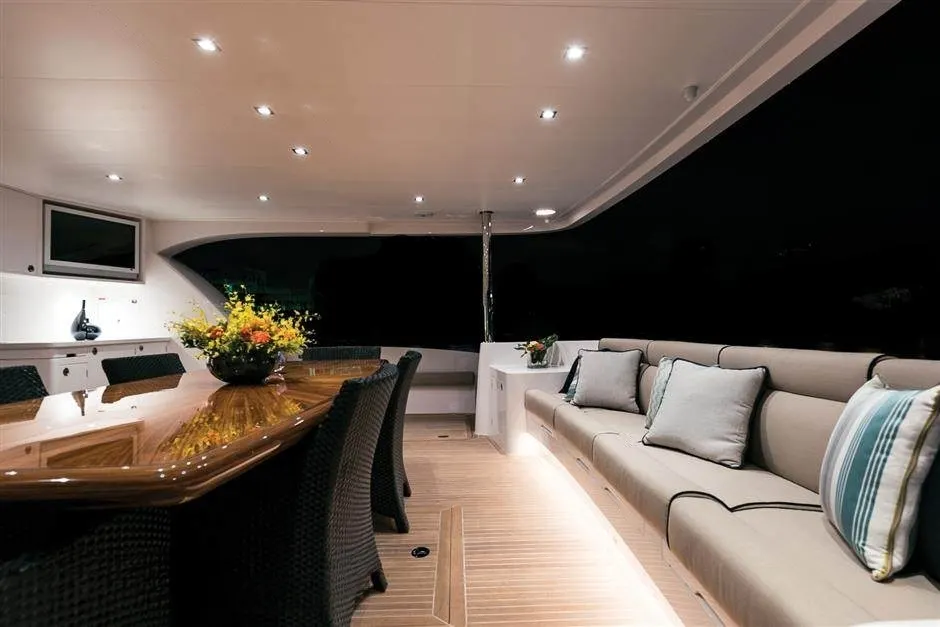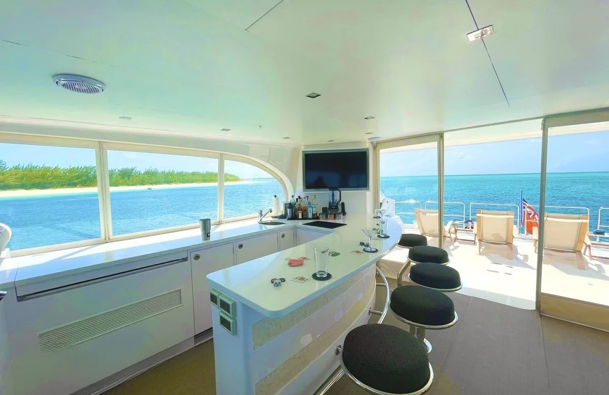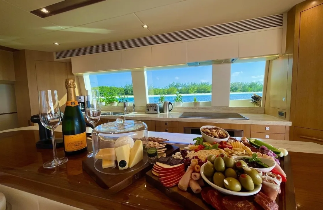 Imagine a week where every morning begins with the gentle sway of the Caribbean Sea and each day unfolds into a tapestry of exploration and relaxation. SeaGlass, a 74-foot marvel built by the renowned Horizon shipyard and refitted in 2021, offers this and more. With her sleek design and dynamic performance, she cruises comfortably at 18 knots, reaching up to 24 knots for those who crave a hint of adrenaline. Her spacious interiors are a seamless blend of elegance and comfort, setting the stage for unforgettable journeys both onboard and ashore. With a range of 515 nautical miles, SeaGlass invites you to discover hidden coves and vibrant coastal towns, transforming every voyage into a personal odyssey.