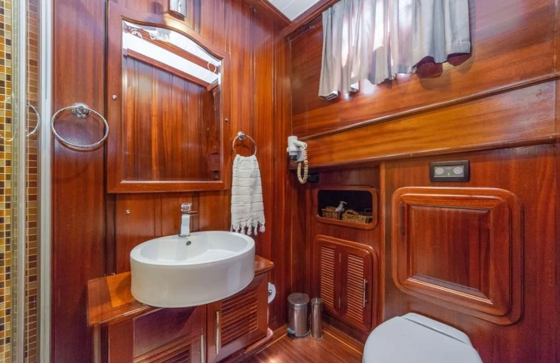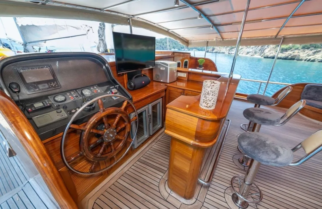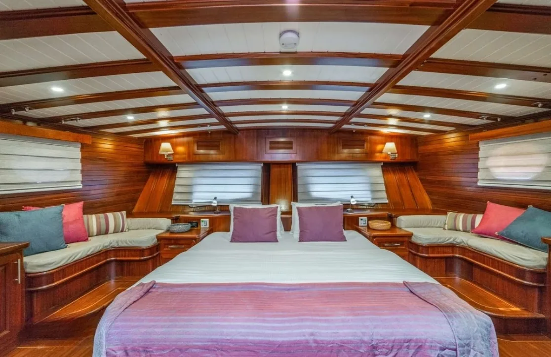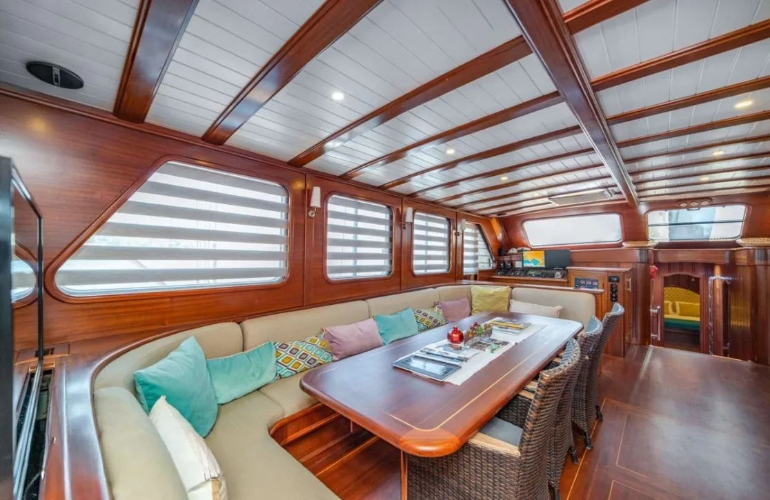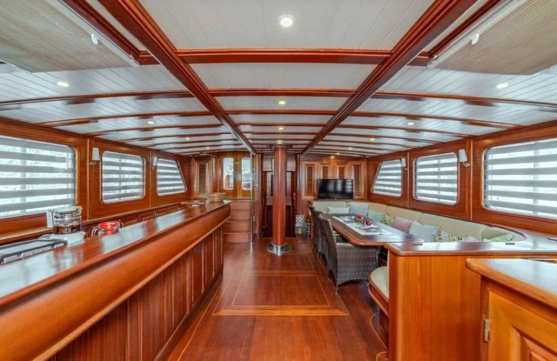 Sema Tuana’s interiors are a haven of tranquility, where air conditioning ensures a cool respite from the sun-drenched days. As evening descends, the yacht transforms into a vibrant social hub, with alfresco dining under the starlit sky offering a sublime culinary experience. Her decks are spacious enough for both intimate gatherings and quiet moments of reflection, promising an exquisite balance of relaxation and entertainment.