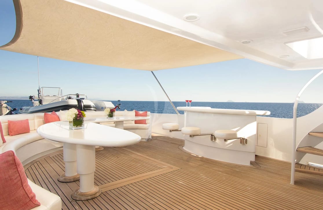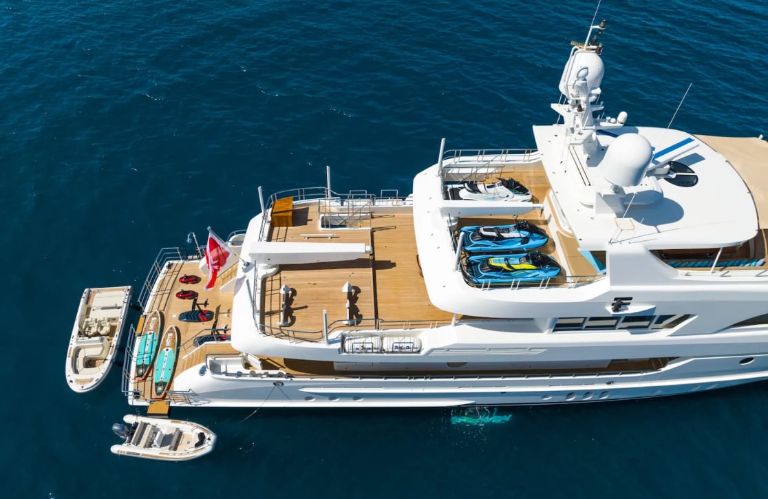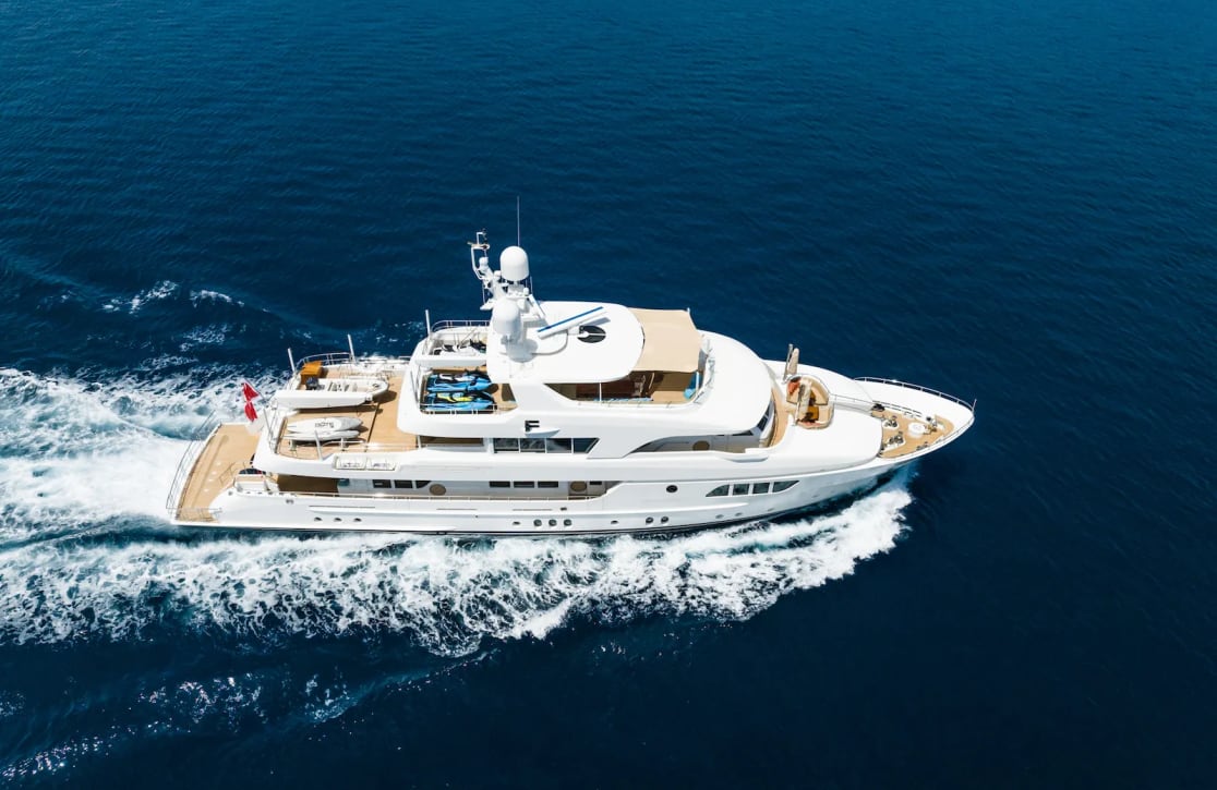 Imagine a voyage aboard the enchanting Serenity, a 37-meter motor yacht crafted for those who appreciate the art of travel. With her aluminum hull and elegant design by Flagship, Serenity invites you to explore her welcoming spaces and the azure waters of the Caribbean. As you cruise at a comfortable speed of 10 knots, reaching up to 15 knots if the mood strikes, each moment unfolds into a tapestry of discovery and relaxation. Serenity’s range of nearly 3,700 nautical miles ensures your journey is as boundless as your aspirations. With the warm embrace of the Caribbean sun, guests are beckoned to indulge in both the vibrant life aboard and the hidden gems ashore.