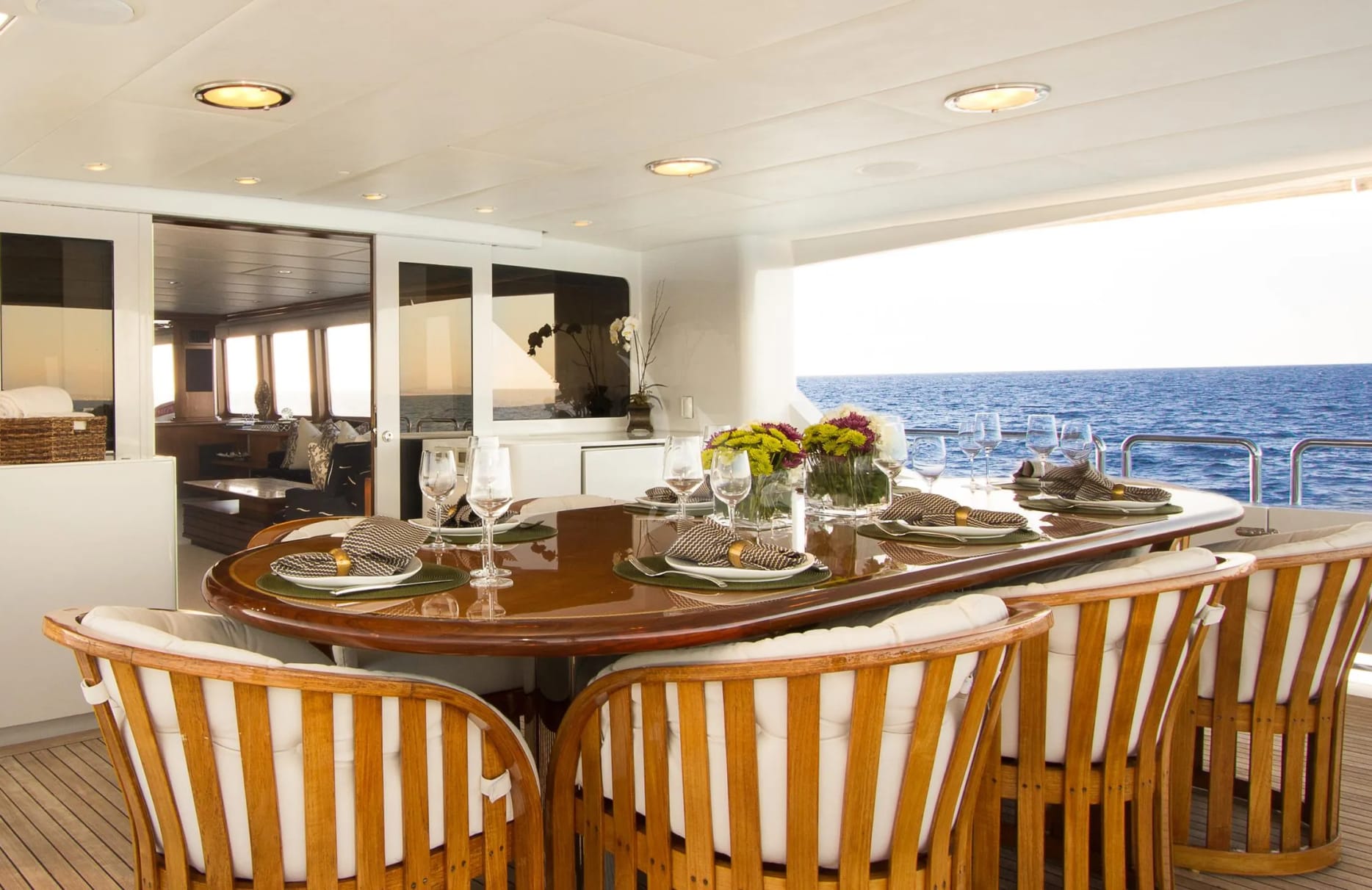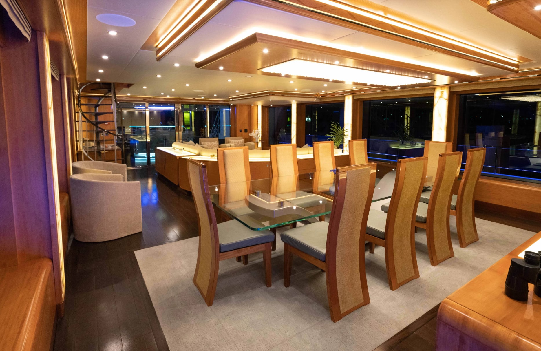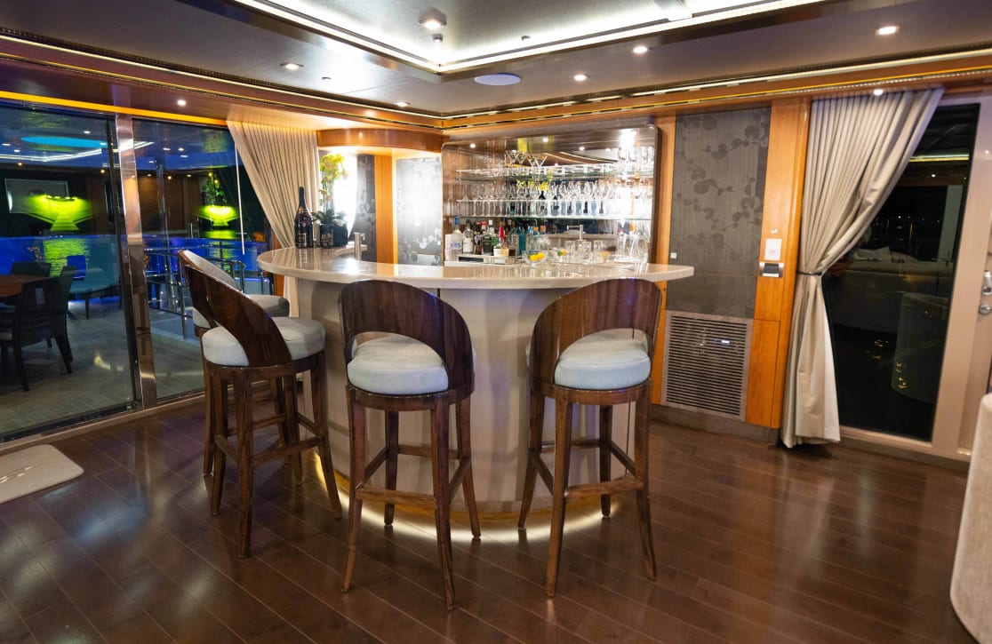 Onboard Serenity, every detail is curated to offer an unparalleled journey. Enjoy the elegance of her spaces, where a state-of-the-art gym keeps your fitness routine uninterrupted and satellite communications ensure you’re as connected as you wish to be. Her air-conditioned interiors provide a sanctuary from the tropical heat, while Wi-Fi connectivity allows you to share the magic of your journey in real-time. Whether lounging in the salon or dining under the stars, each moment aboard Serenity is designed to delight.