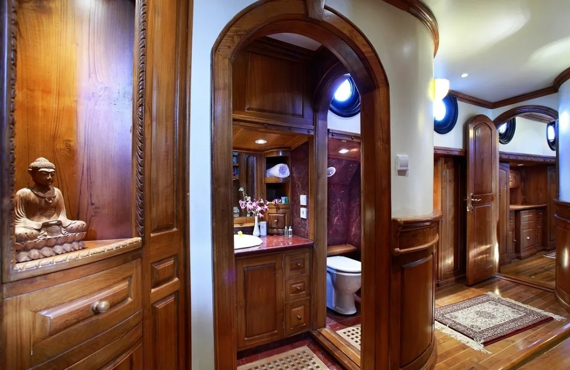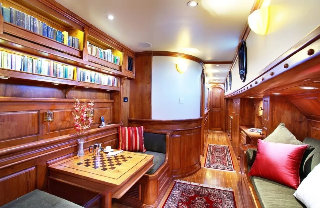 Onboard, the Shenandoah of Sark offers an experience that is both elegant and invigorating. The interiors are cooled to perfection with advanced climate control, ensuring your comfort as you relax in the beautifully appointed social spaces. As the sun sets, gather for an evening of camaraderie and entertainment or retreat to your private oasis, where every detail is designed for your utmost enjoyment.