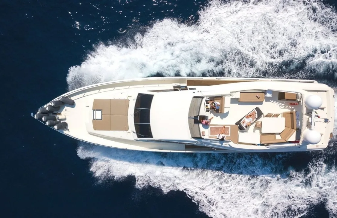 Embark on an unforgettable journey aboard Silvia, a refined 85-foot flybridge motor yacht crafted by the esteemed Posillipo shipyard. With her elegant lines and a blend of modern and classic design, Silvia invites you to explore the enchanting waters of the Mediterranean. As you glide through azure seas, Silvia’s shallow draft allows you to anchor in sequestered coves and bays, offering a unique perspective of the coastline. Whether savoring a morning espresso on the deck or basking in the golden Mediterranean sunset, each moment aboard Silvia is tailored to your desires, with every day promising novel adventures both onboard and ashore.