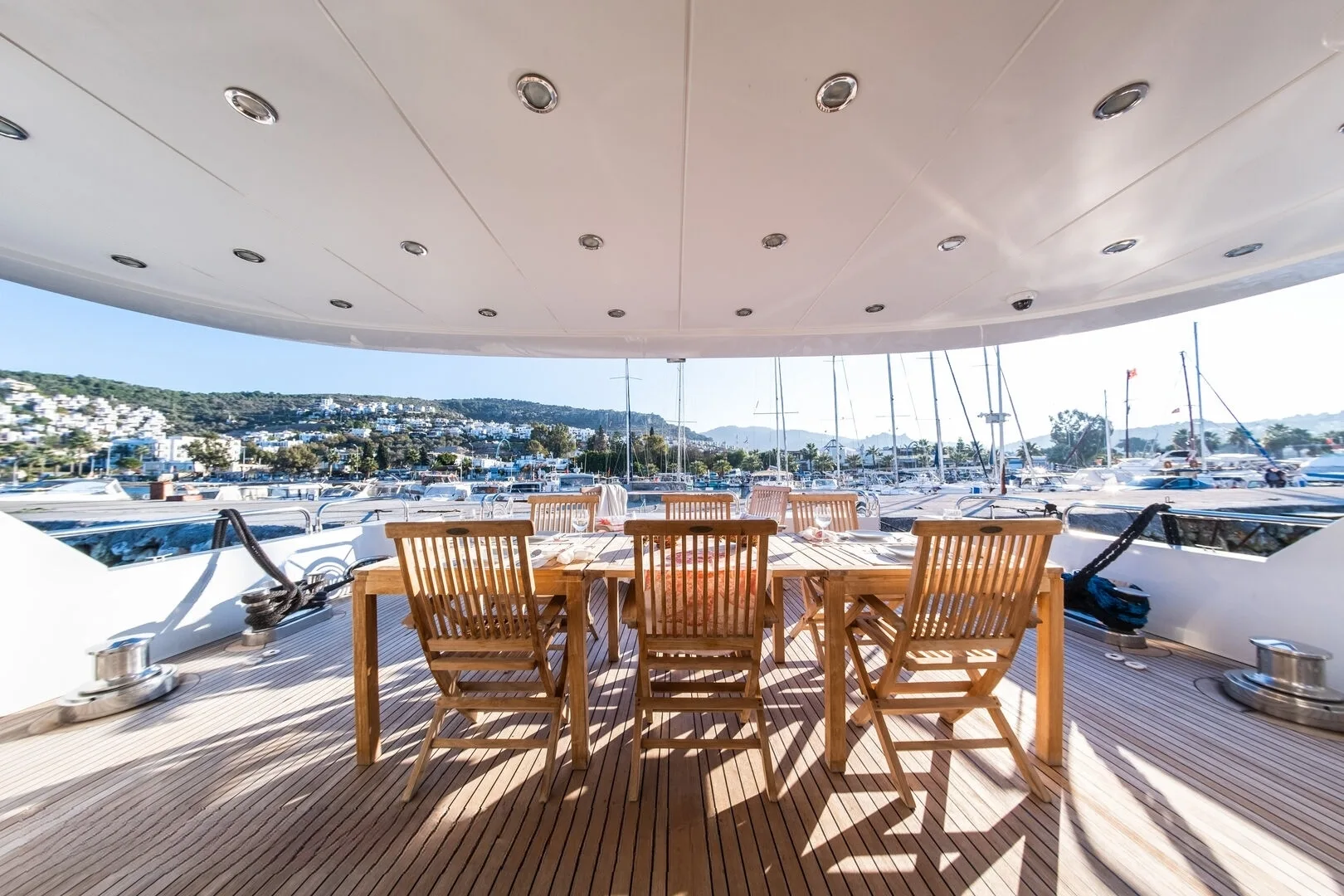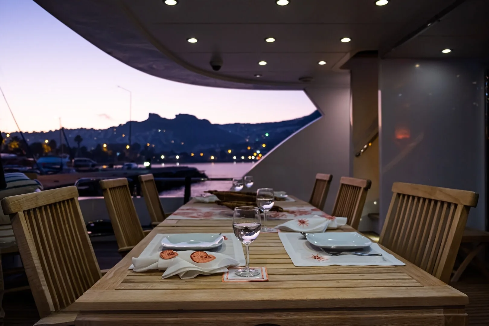 As evening descends and the stars emerge, Smyrna transforms into a haven of warmth and elegance. Her underwater lights cast a mesmerizing glow that dances across the waves, setting the perfect ambiance for an evening under the stars. The spacious decks invite leisurely afternoons basking in the sun or evenings of delightful conversation. Every inch of Smyrna is designed for your pleasure, from the serene lounges to the sophisticated dining areas, ensuring a seamless blend of relaxation and entertainment.