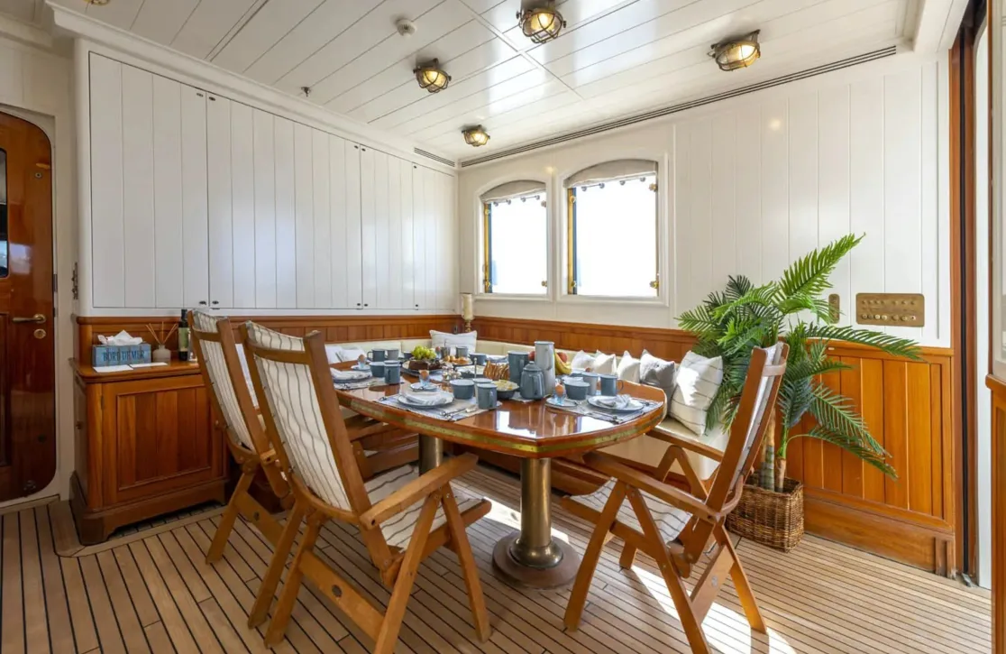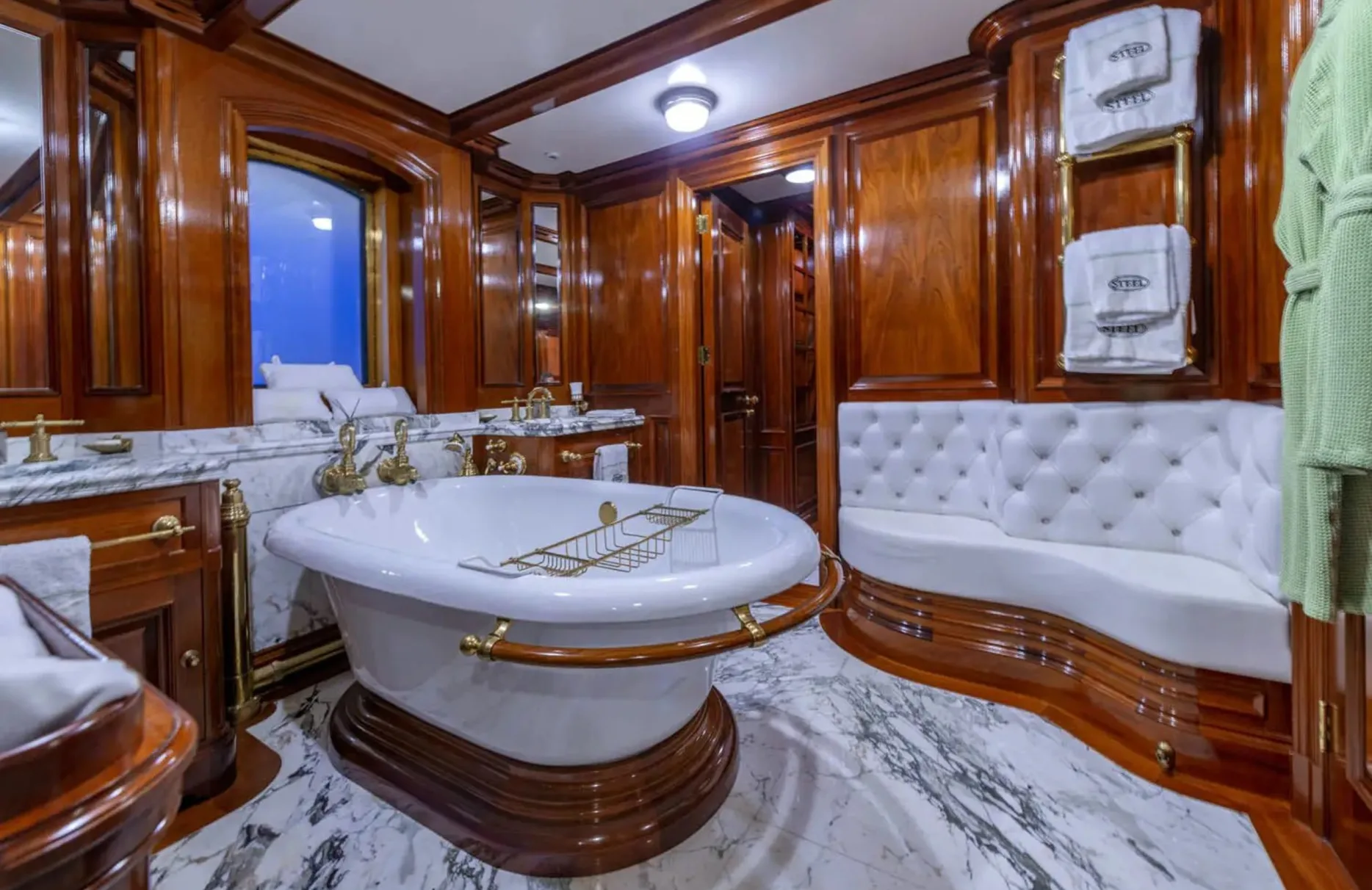Step into a world where every moment is infused with tranquility and indulgence. Steel’s expansive decks feature inviting sunpads for basking in the sun, while a state-of-the-art gym awaits those who wish to maintain their fitness routine. As the sun sets, the deck jacuzzi becomes the perfect retreat, where you can unwind with a glass of champagne. Stay connected with loved ones through seamless Wi-Fi, or simply retreat into the cool embrace of air-conditioned interiors. Each space on Steel is designed to enhance your journey, offering both solitude and the opportunity for shared moments of joy.