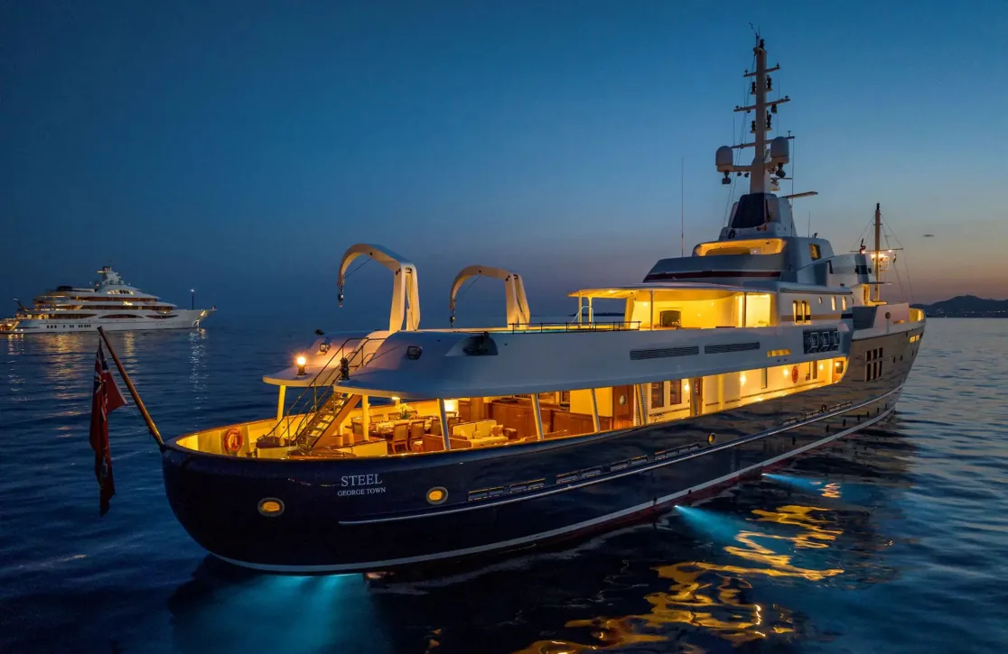 Steel, a 55-meter masterpiece from the acclaimed Pendennis shipyard, invites you to embark on a transformative journey across the world’s oceans. With her sleek lines and robust construction, she is a vessel built for both adventure and comfort, seamlessly navigating from the vibrant Mediterranean Sea to the icy expanses of the polar regions. Her spacious, uncluttered decks and sophisticated interior, crafted by Liebowitz & Pritchard, offer an idyllic setting for relaxation and exploration. As you glide through azure waters, imagine mornings filled with breathtaking vistas and evenings under a canopy of stars, promising an unforgettable voyage.