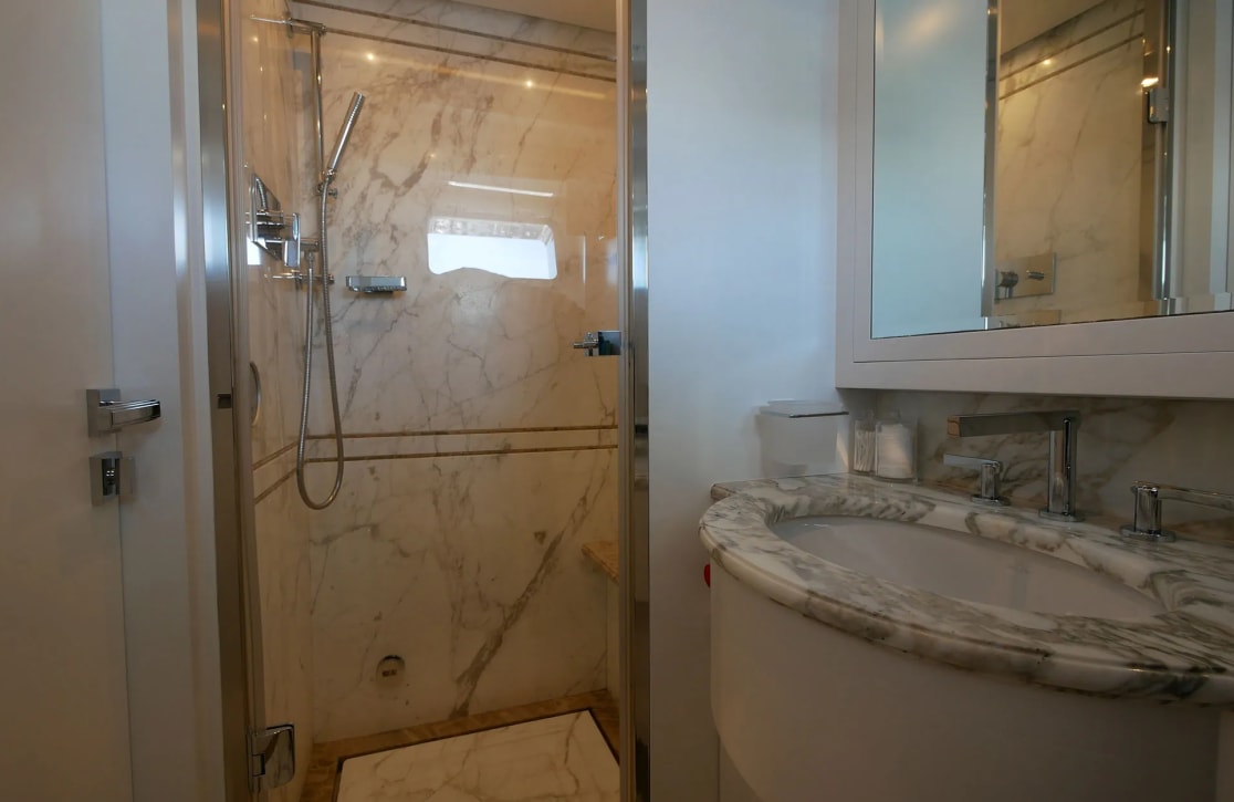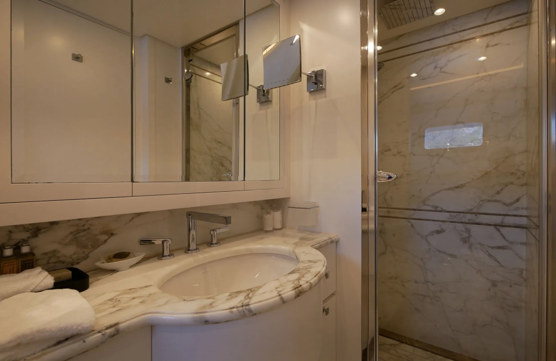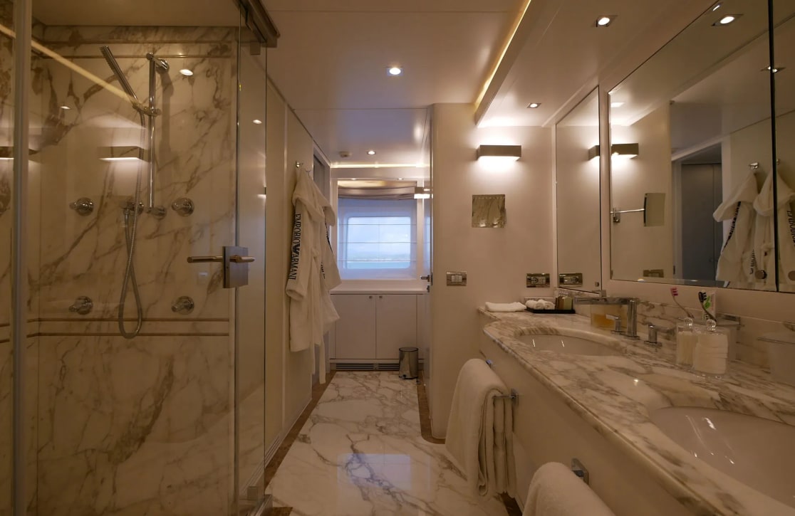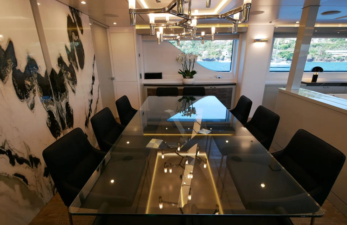 Sud’s accommodations are a testament to refined elegance and comfort, welcoming up to 10 guests within her five beautifully appointed cabins. The master suite is a haven of tranquility, while two VIP and two twin cabins offer serene retreats for all guests. Waking up aboard Sud, you’re greeted by the gentle rocking of the sea and the promise of a new day filled with adventure. With a crew of seven attending to every detail, your experience is crafted with care, ensuring each moment aboard is as effortless as it is memorable.
