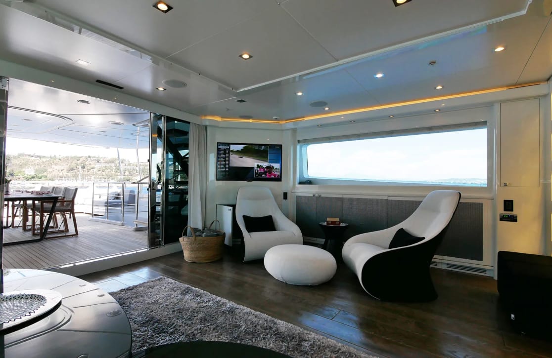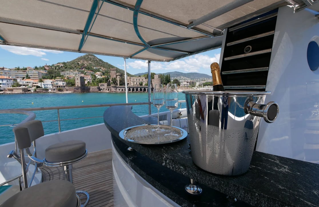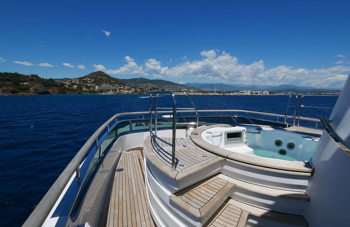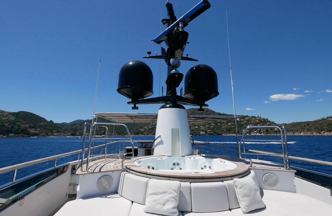 Onboard, Sud offers a sanctuary of comfort and sophistication. Her deck jacuzzi invites you to unwind under the stars, while the seamless connectivity of onboard Wi-Fi ensures you remain in touch with the world, if you choose. Fully air-conditioned interiors provide a cool retreat from the sun-drenched decks, and the iPod docking stations allow you to set the soundtrack to your journey. As evening descends, gather in the plush salon for a movie night, thanks to the satellite TV, or enjoy a quiet moment in a corner with a favorite book.