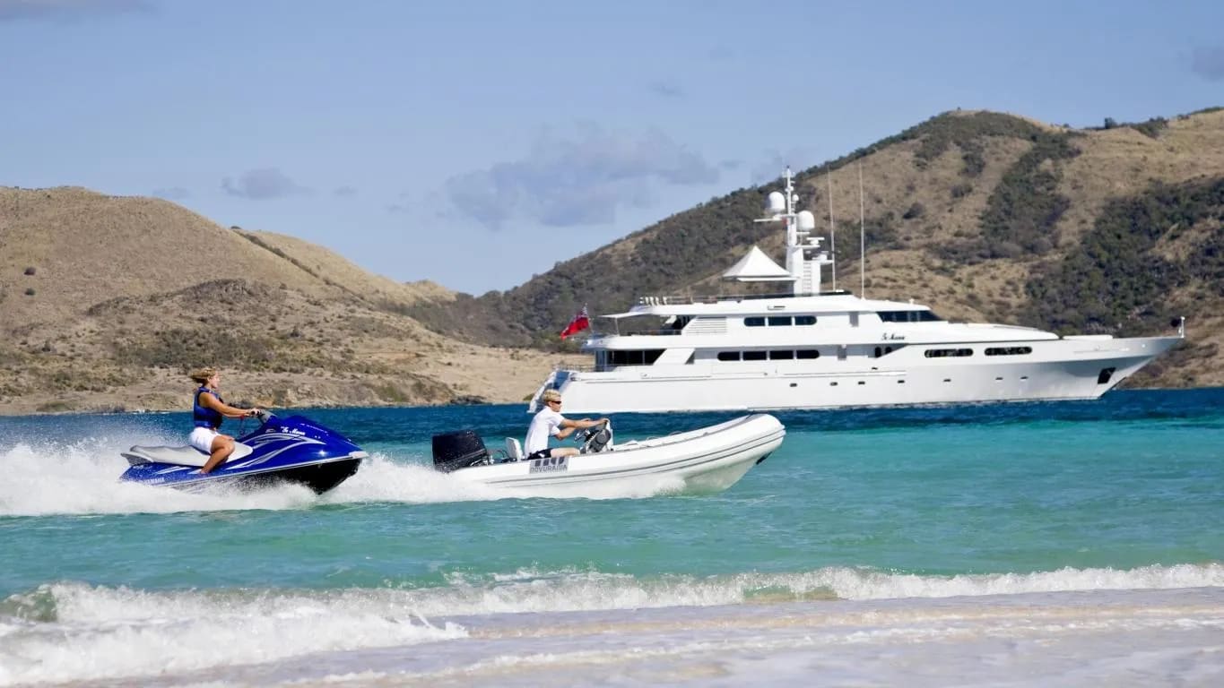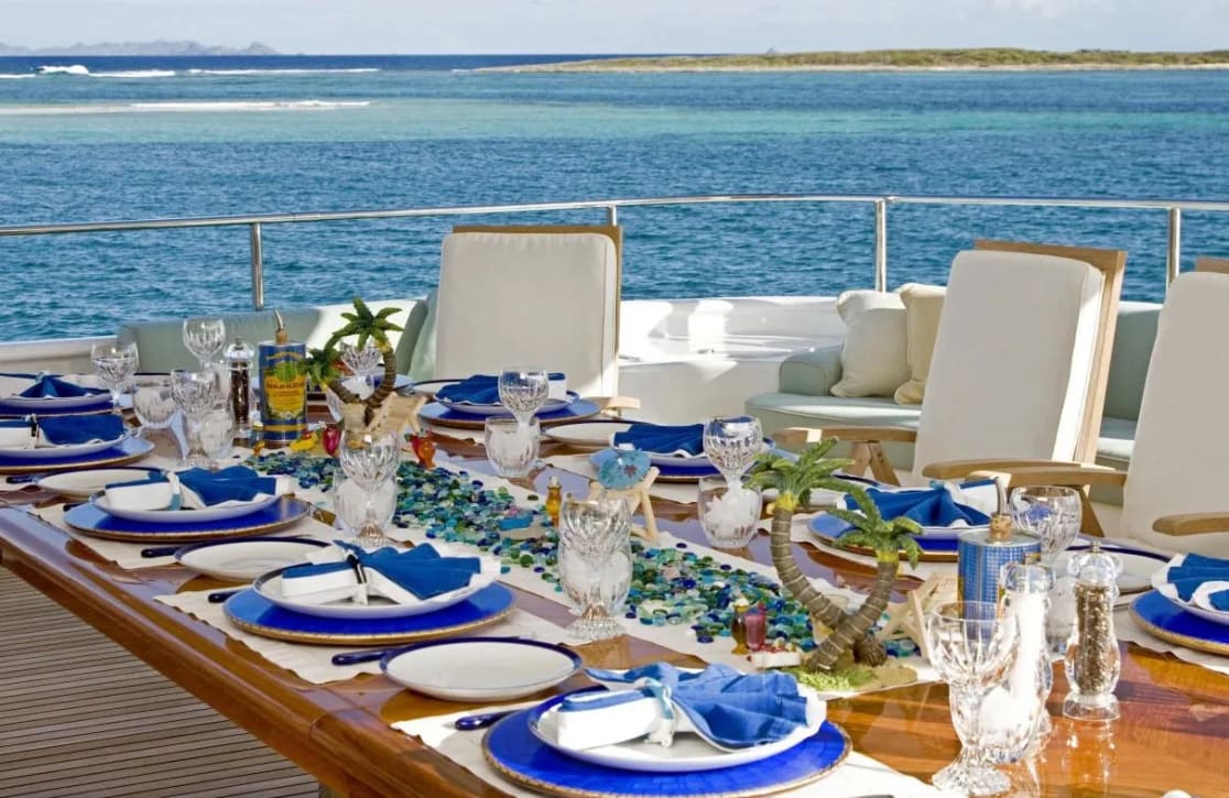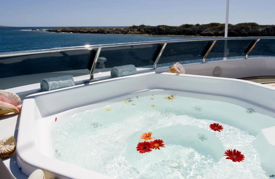 Onboard Te Manu, each day unfolds with opportunities for indulgence and rejuvenation. Begin your morning with a workout in the fully equipped gym, or perhaps a serene session in the jacuzzi as the horizon awakens. The yacht’s air-conditioned interiors offer a cool respite, while Wi-Fi connectivity allows you to stay in touch with the world, should you choose. As the sun reaches its zenith, gather with friends and family for a lively afternoon under the shade, or retreat to the peaceful ambiance of the lounge, enhanced by the gentle hum of the yacht’s stabilization system, ensuring every sip of champagne is as relaxing as the last.