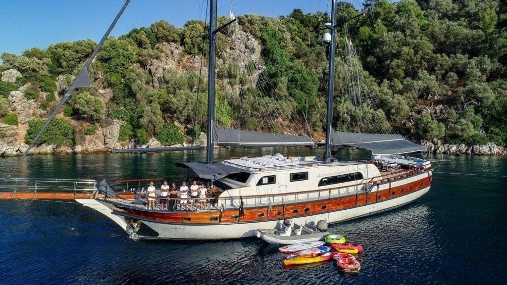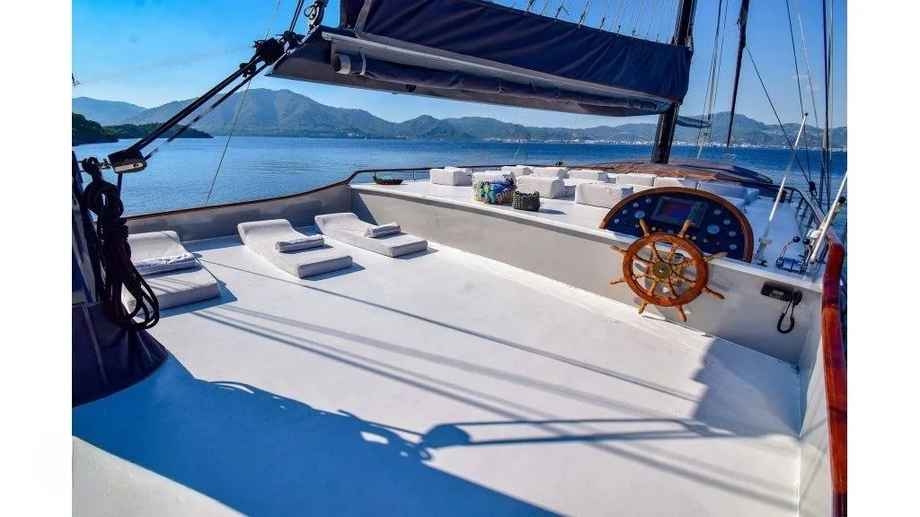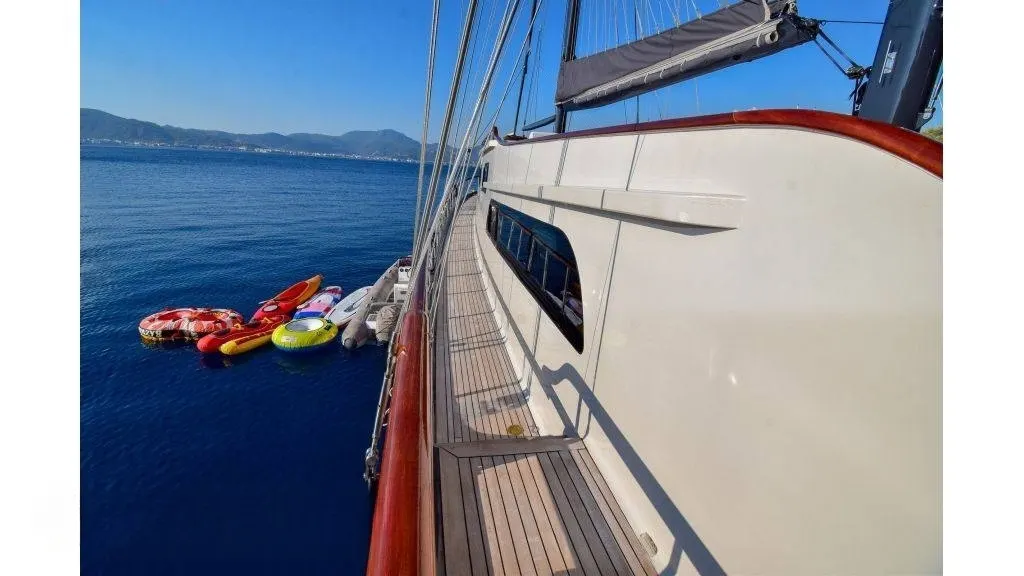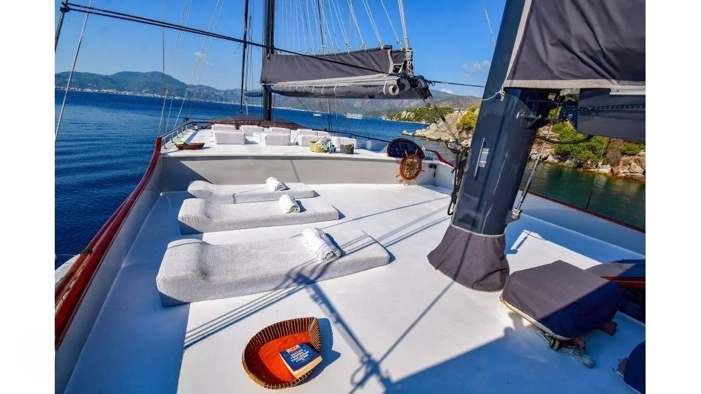 Imagine charting a course through the azure waters of the Mediterranean aboard Ugur, a beautifully crafted 31-meter gulet from the renowned Marmaris shipyard. Whether you’re seeking tranquility or adventure, Ugur promises a voyage that seamlessly blends both. Feel the gentle breeze as you sail at a comfortable pace, with the wooden hull gliding effortlessly through the waves. With room to accommodate up to 14 guests, this vessel is a perfect retreat for those looking to explore the charm of secluded bays and vibrant coastal towns. The dedicated crew of five stands ready to enhance your journey, ensuring your time aboard is nothing short of extraordinary.